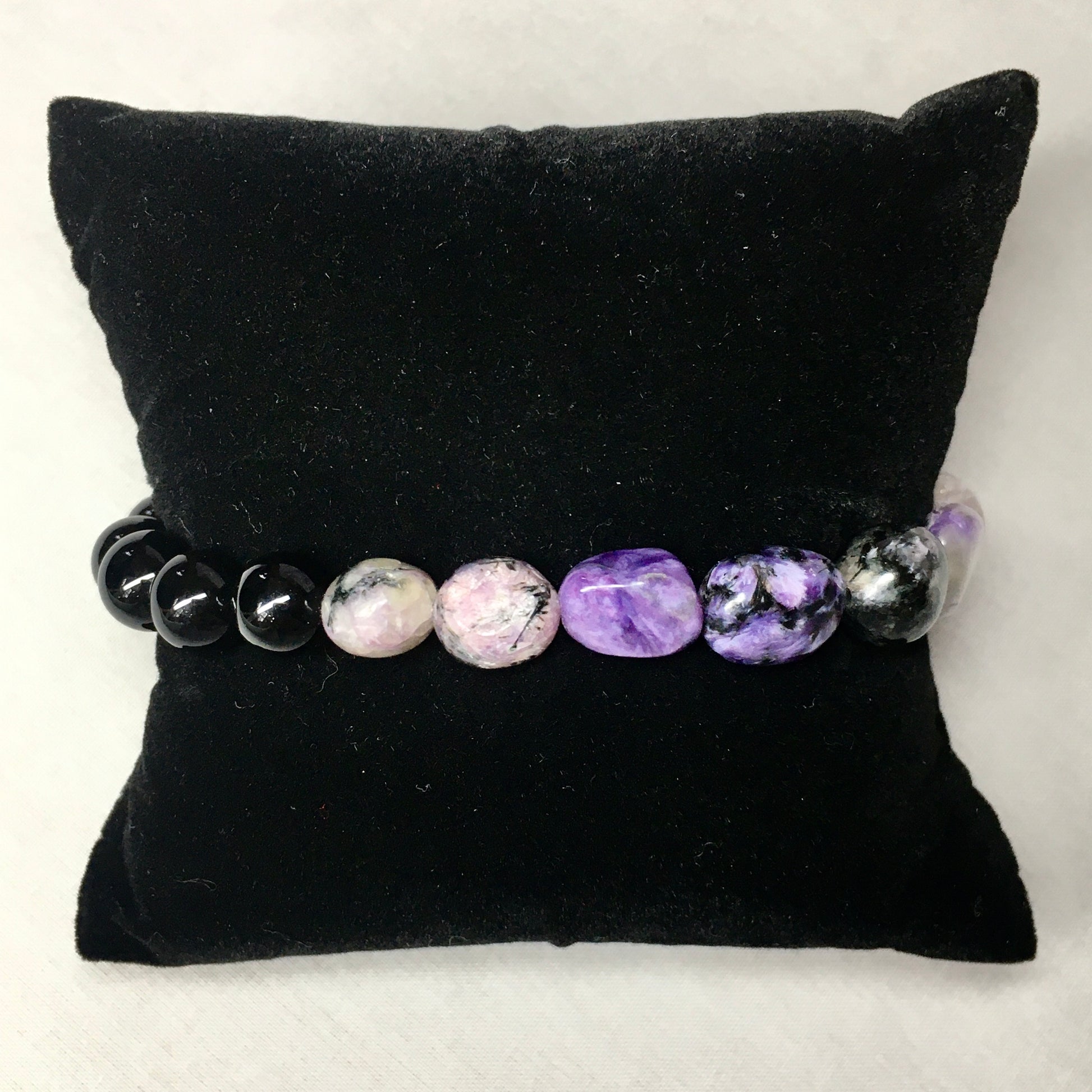 Choose between a variety of bracelets of different stones, colors and sizes or choose one for every outfit! Bracelet is on elastic band that stretches.