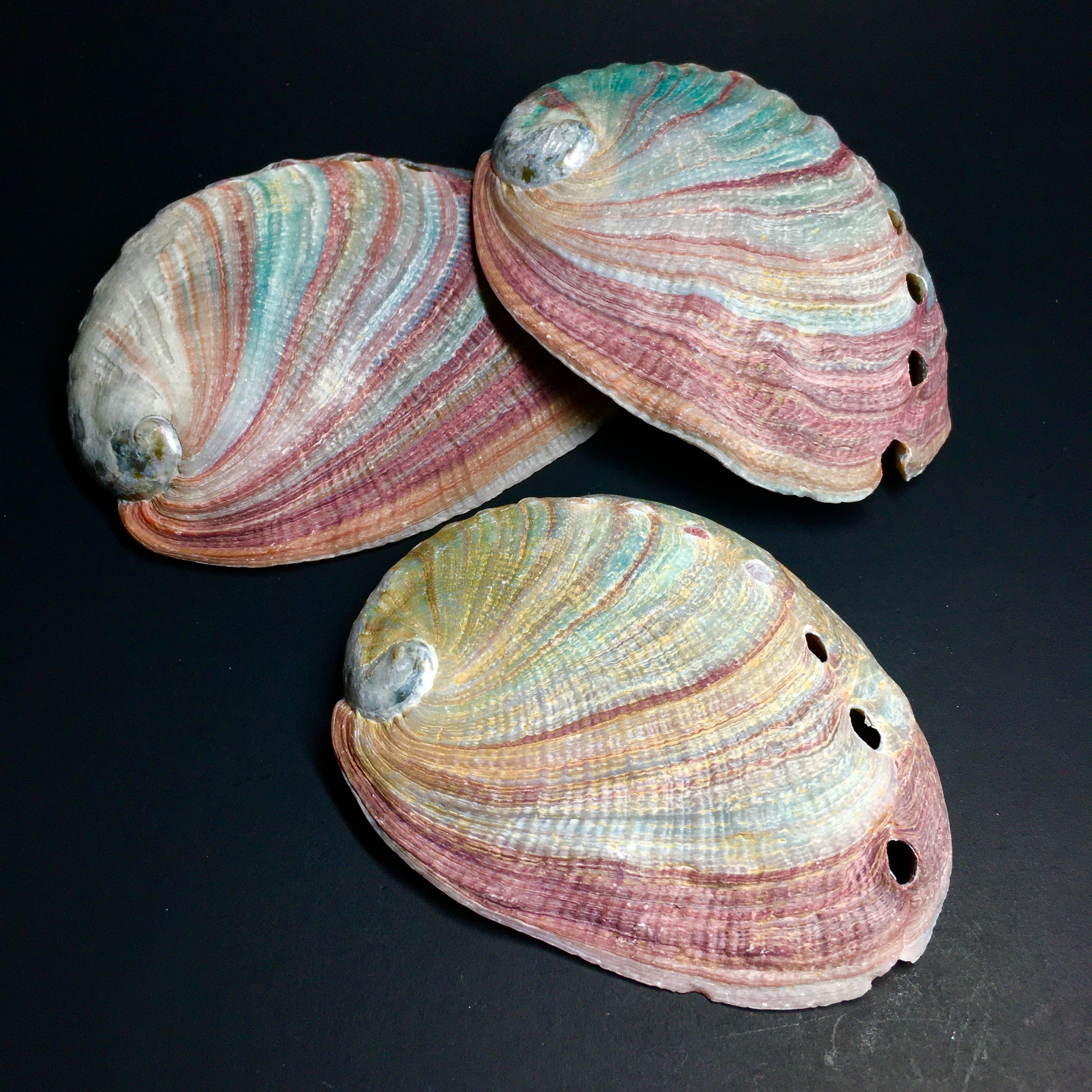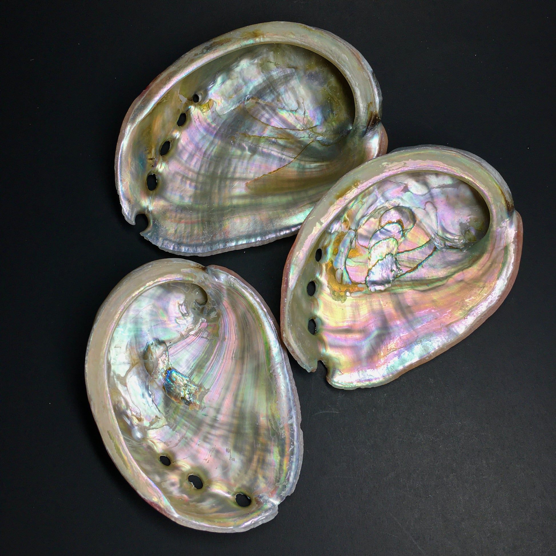 Abalone shells come from sea snails. The exteriors are a work of art in themselves with swirling colors of the rainbow. Flip them over and you unveil the iridescent and colorful interiors made of shimmering mother-of-pearl.