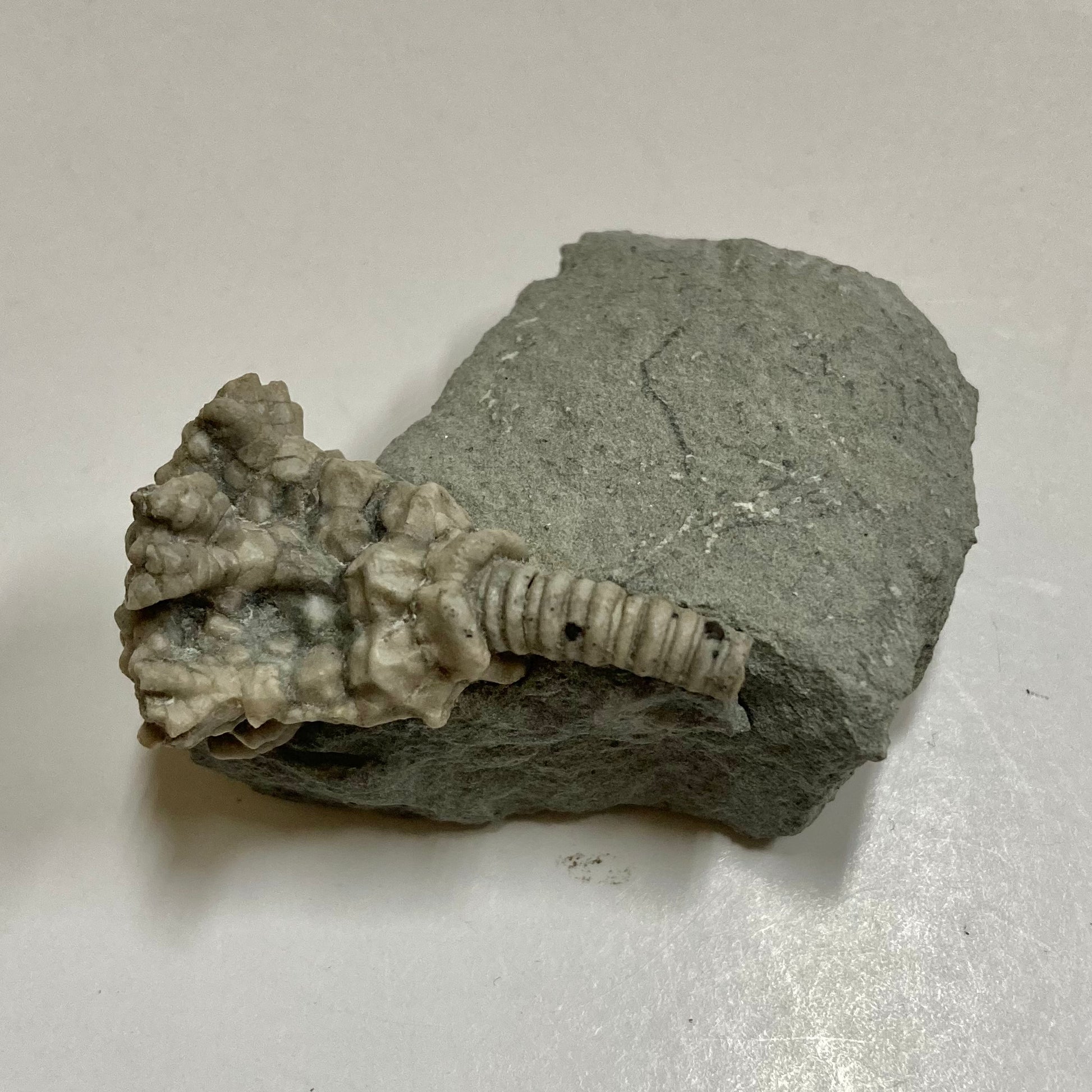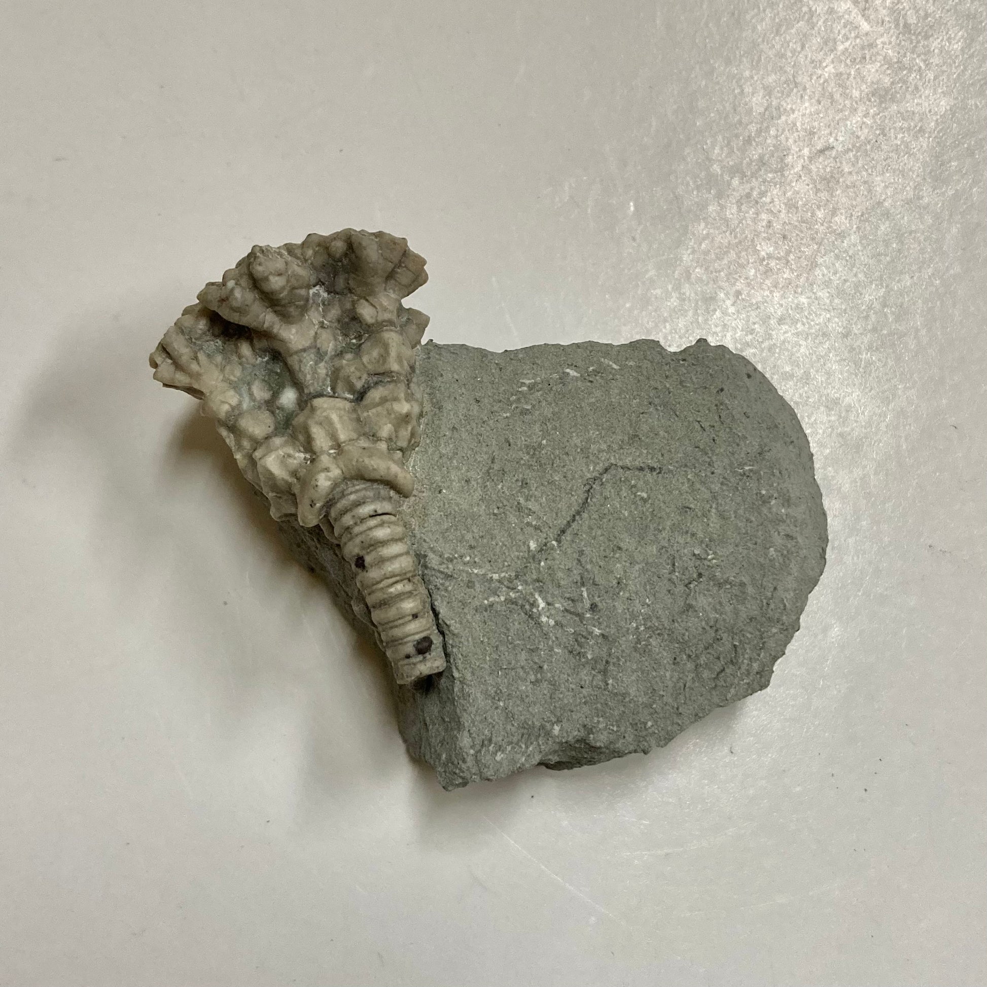 Actinocrinites gibsoni crinoids of the world famous Edwardsville Formation date back to the Mississippian Period (320 million years ago). This species can also be found in Australia, China, Europe and the United States.