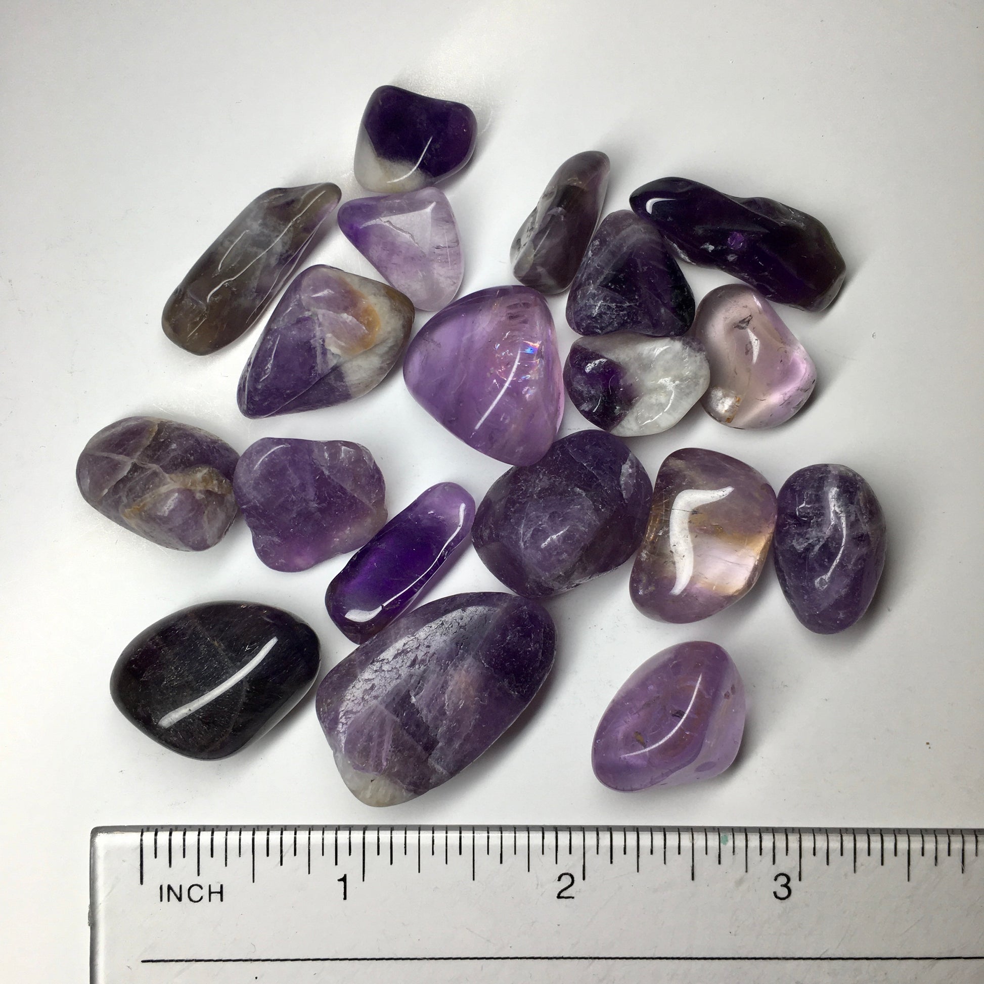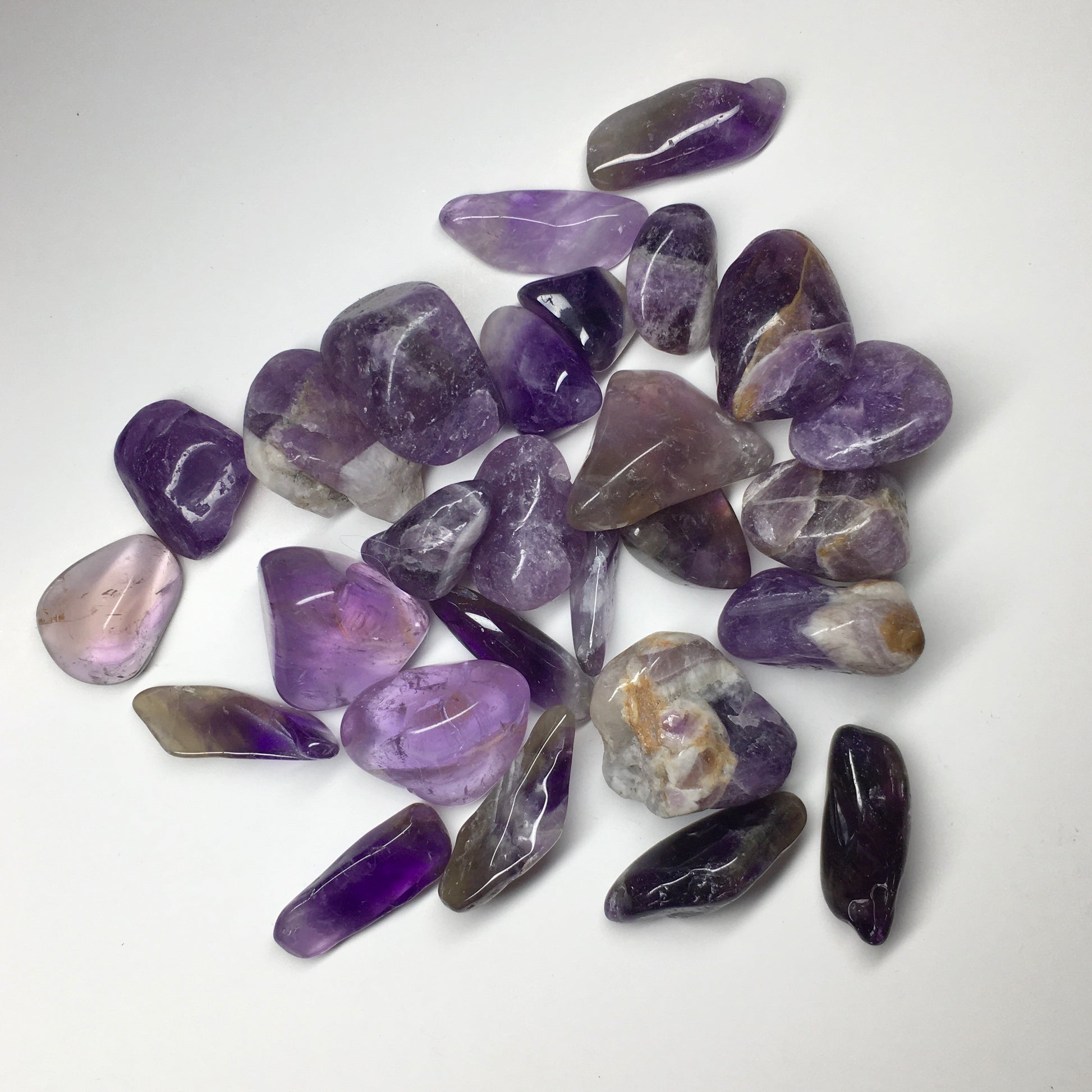 Check out the amethyst crystal chip tumbled stone bracelet and the amethyst tumbled stone bracelet!