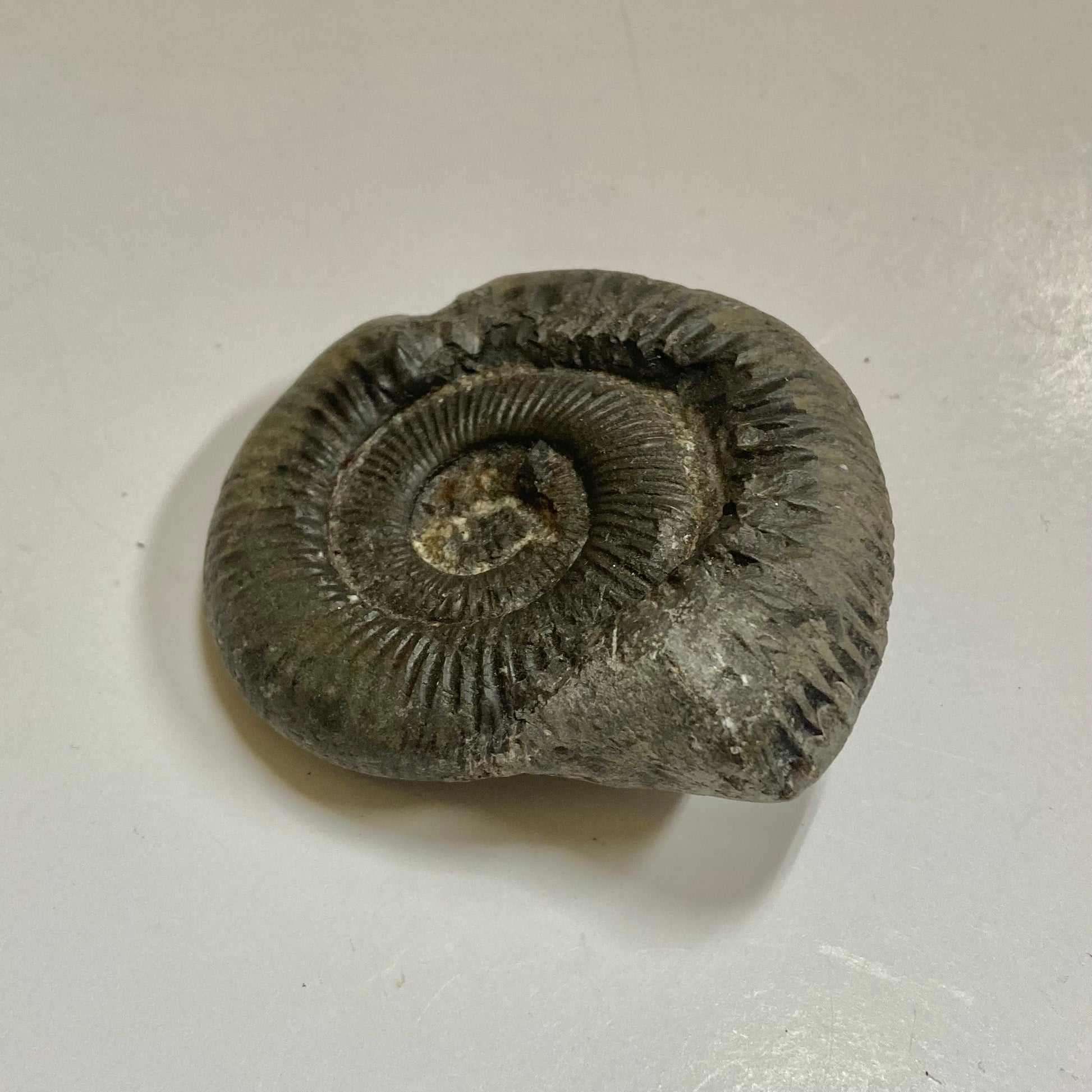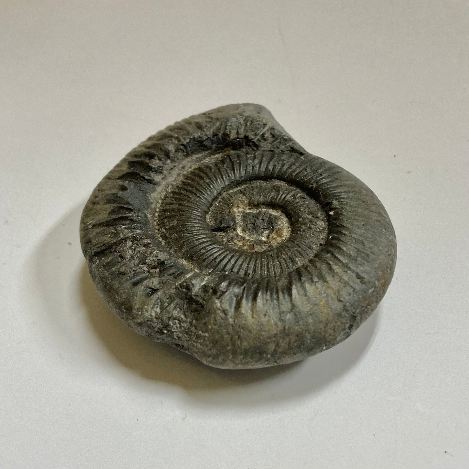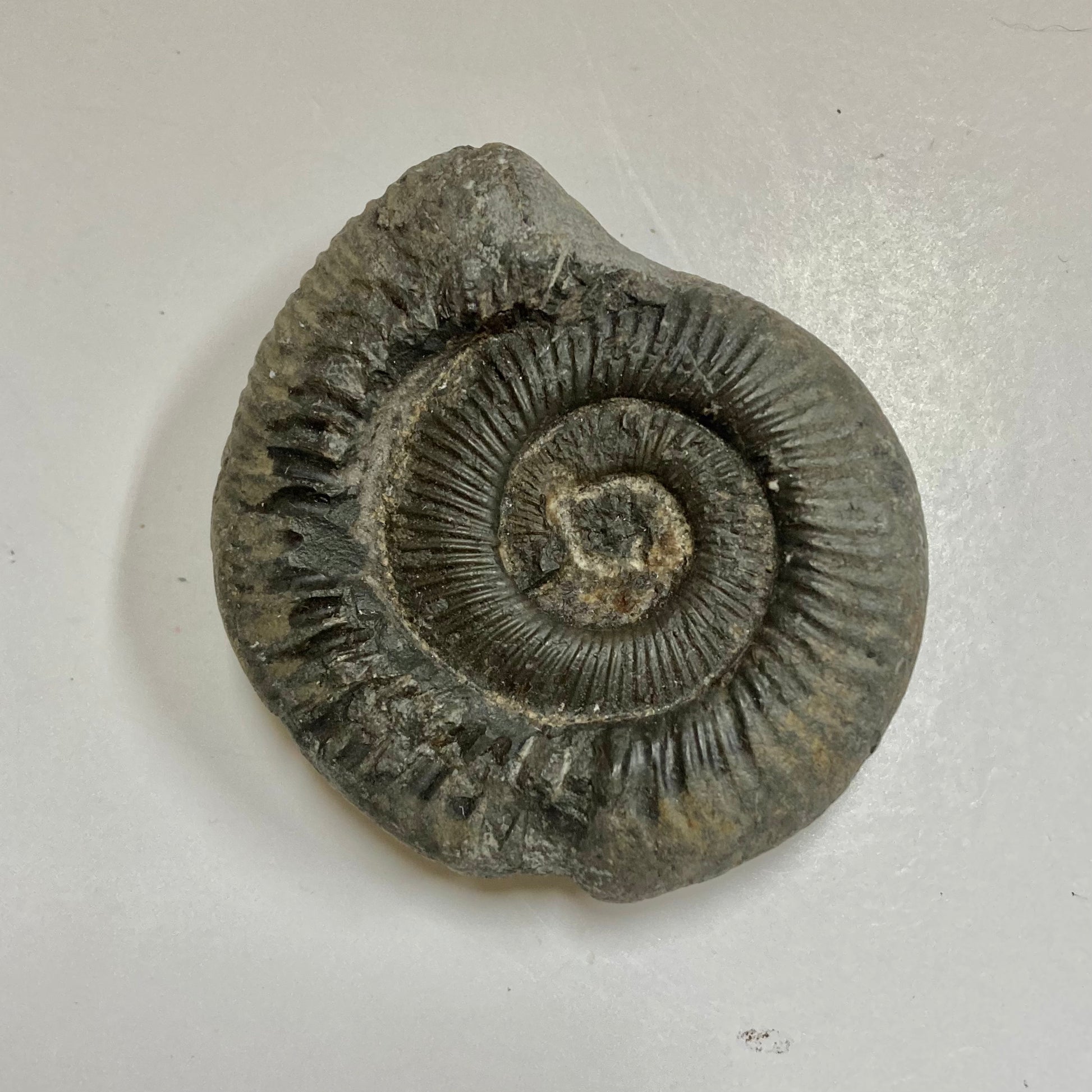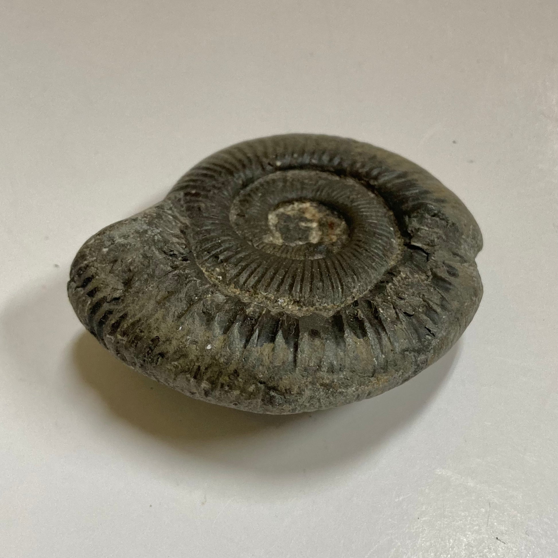 This ammonite is named after the Greek word dactyl meaning "fingers" because of the many straight ribs on its relatively small but strong shell. Mass mortality specimens are found all over the world, especially in Europe, indicating Dactylioceras may have died shortly after traveling to a specific area for spawning, allowing their shells to wash up in large quantities on the banks of the Jurassic seas.