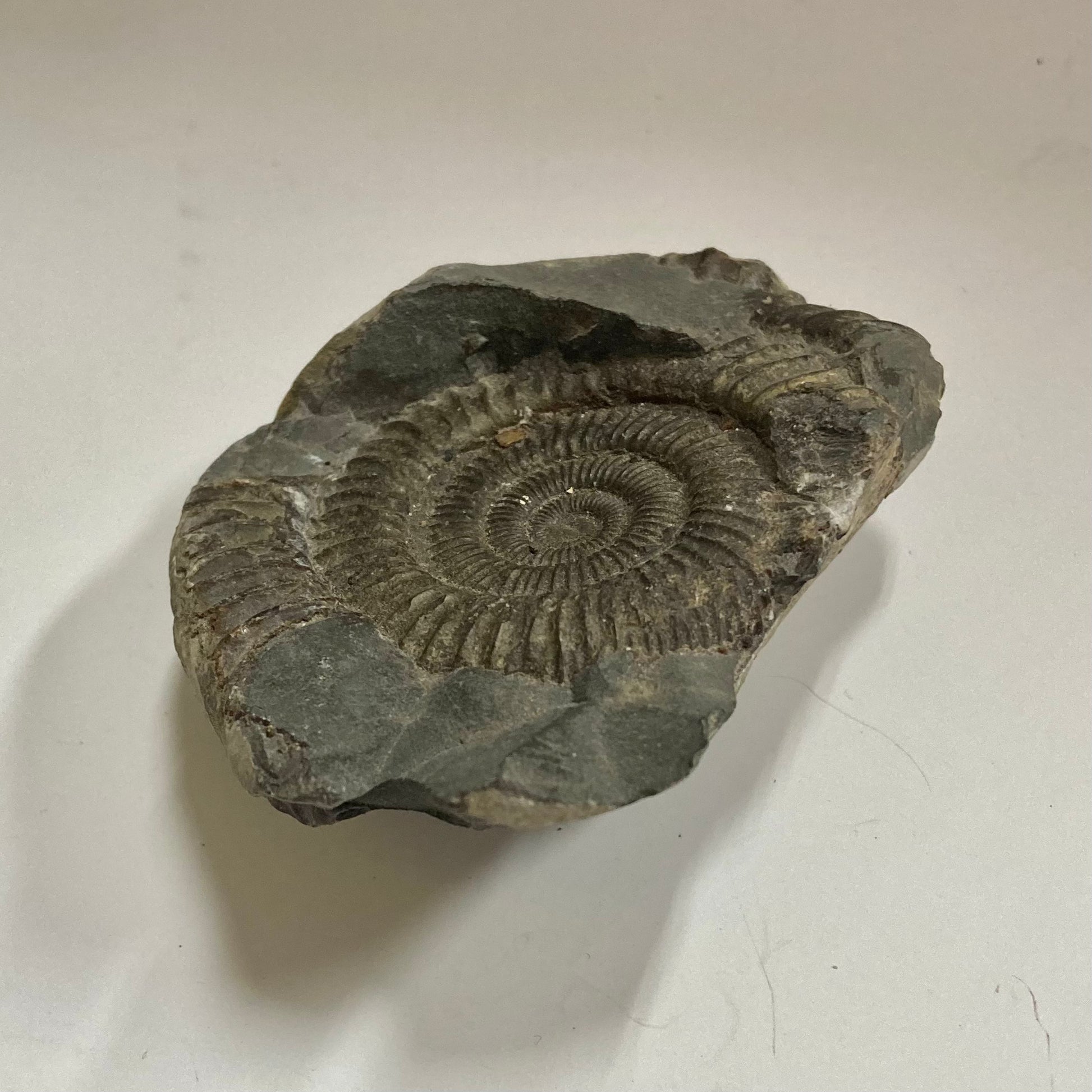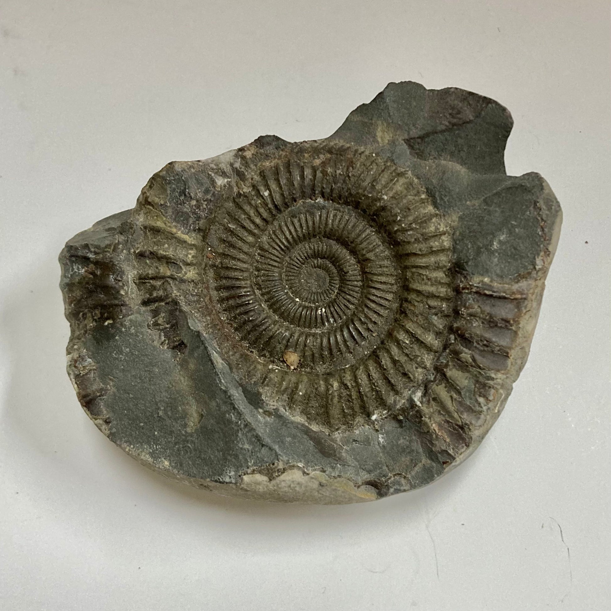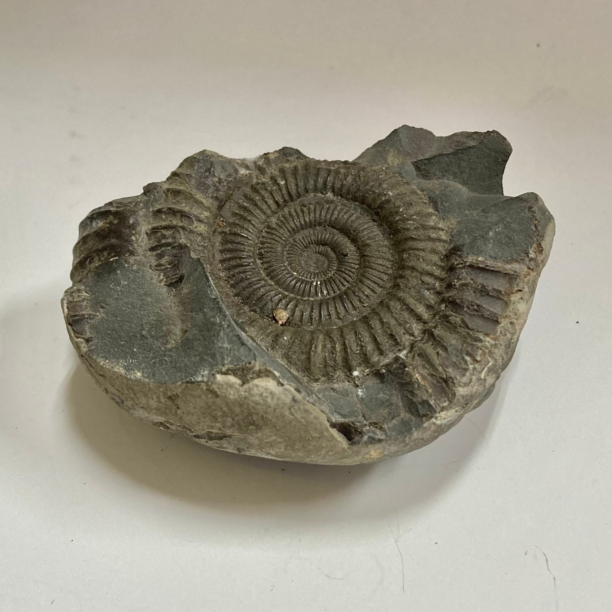 This ammonite is named after the Greek word dactyl meaning "fingers" because of the many straight ribs on its relatively small but strong shell. Mass mortality specimens are found all over the world, especially in Europe, indicating Dactylioceras may have died shortly after traveling to a specific area for spawning, allowing their shells to wash up in large quantities on the banks of the Jurassic seas.