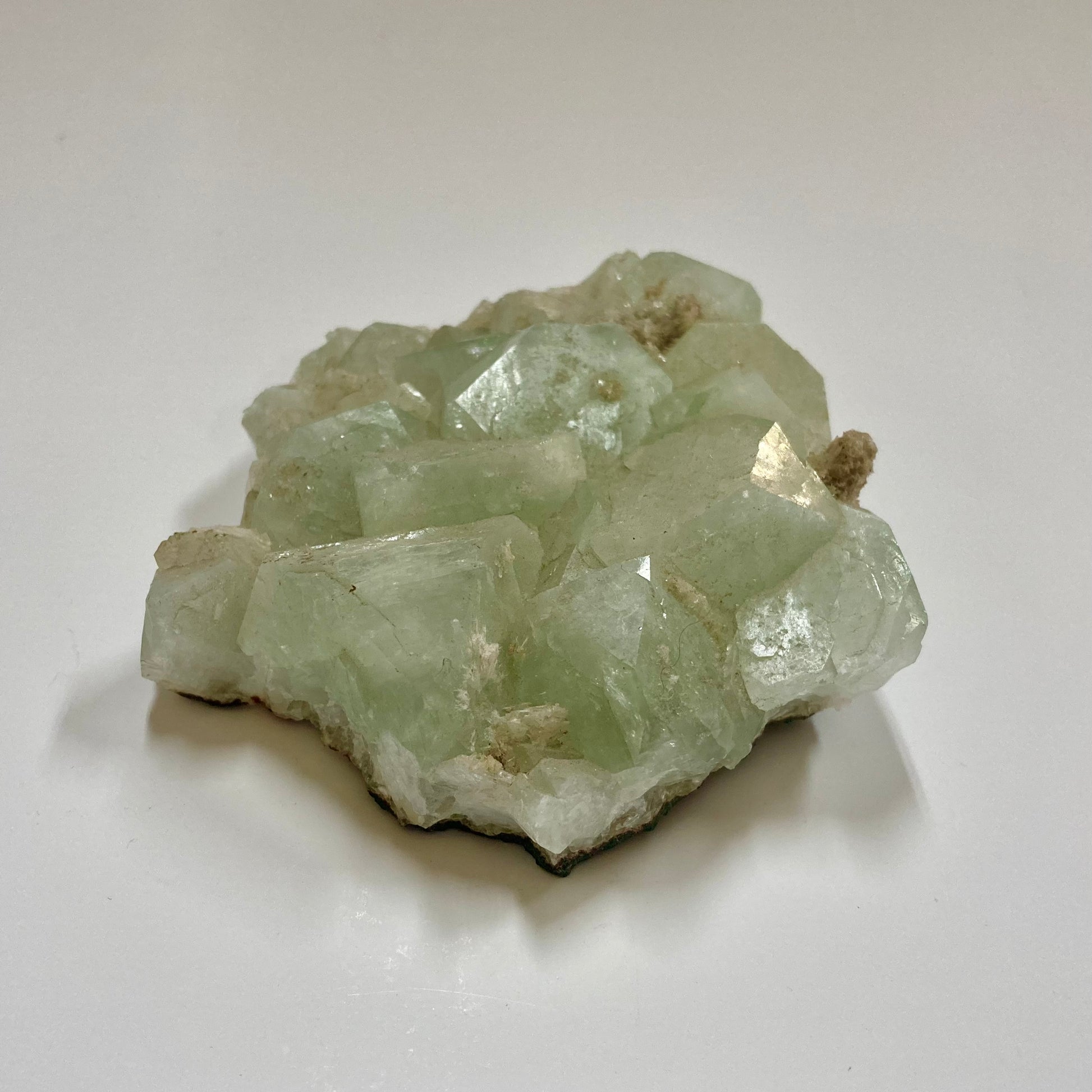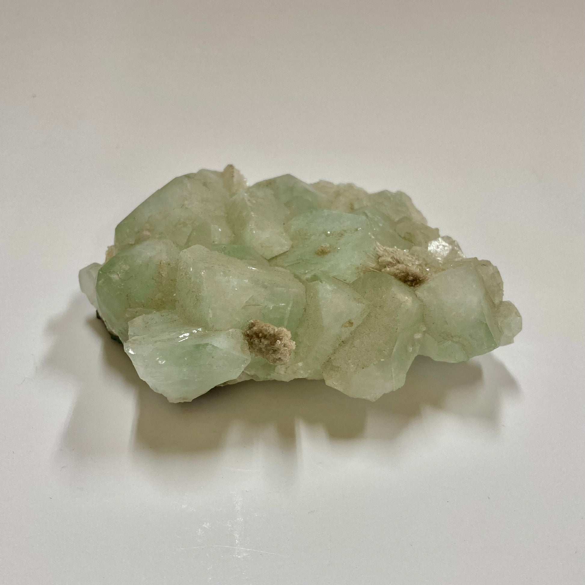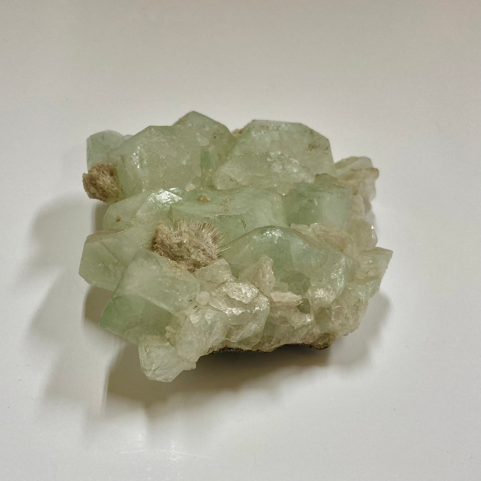Apophyllite is found all over the world in volcanic zeolite environments, most notably in India. It most often forms with other zeolites (minerals that create pale crystals that are soft and easily crushed and steam when heated) like heulandite and can occur in colors like green, brown, gray or colorless.
