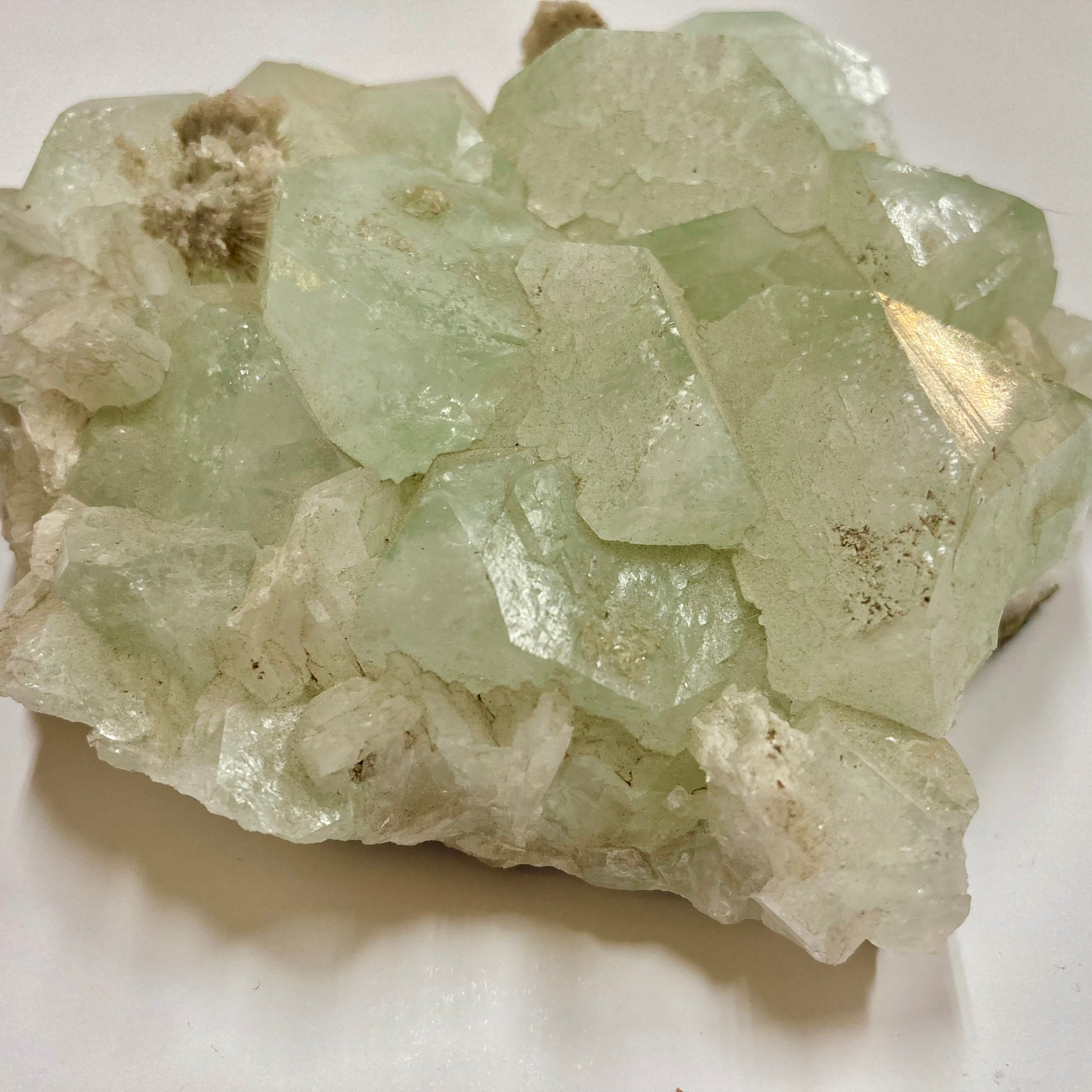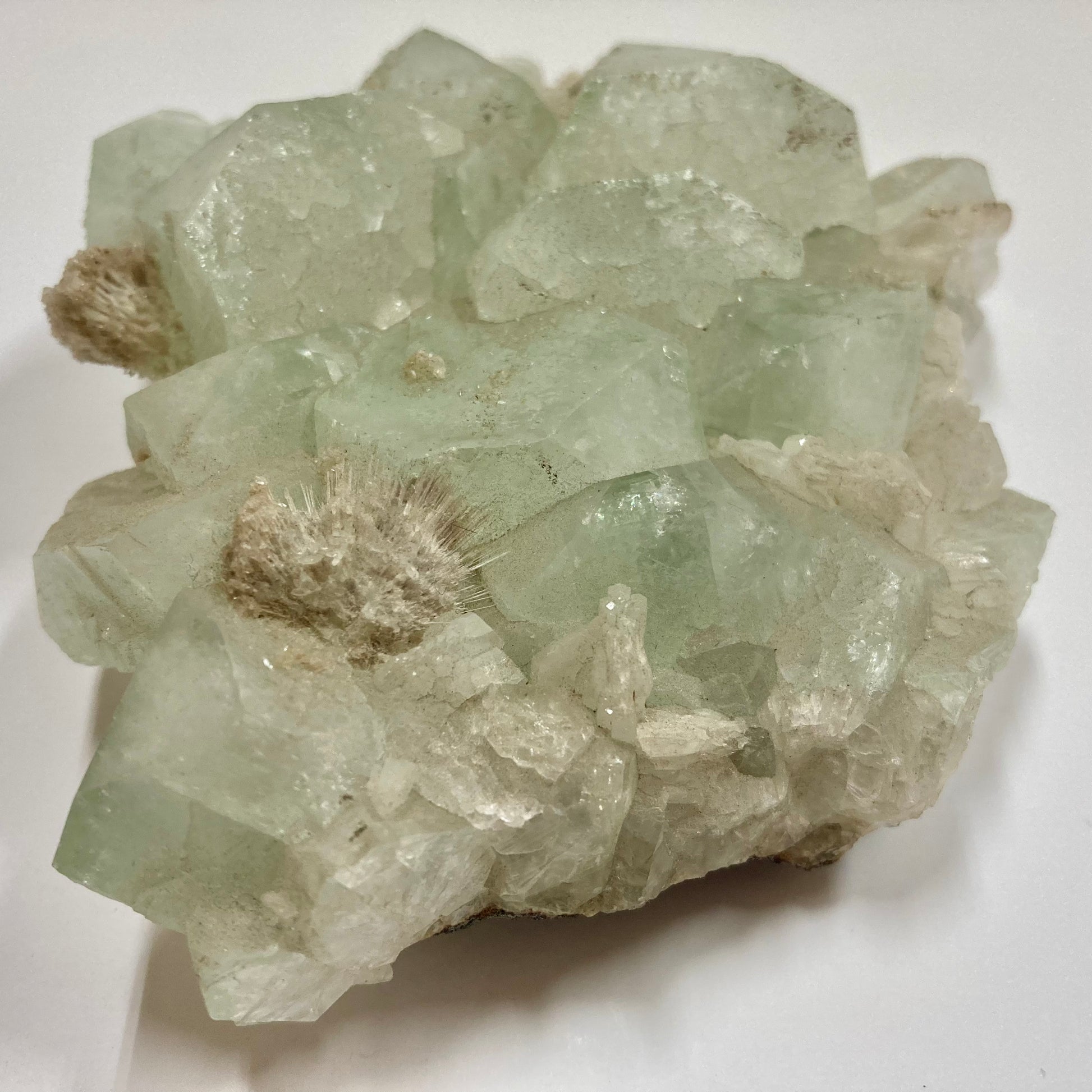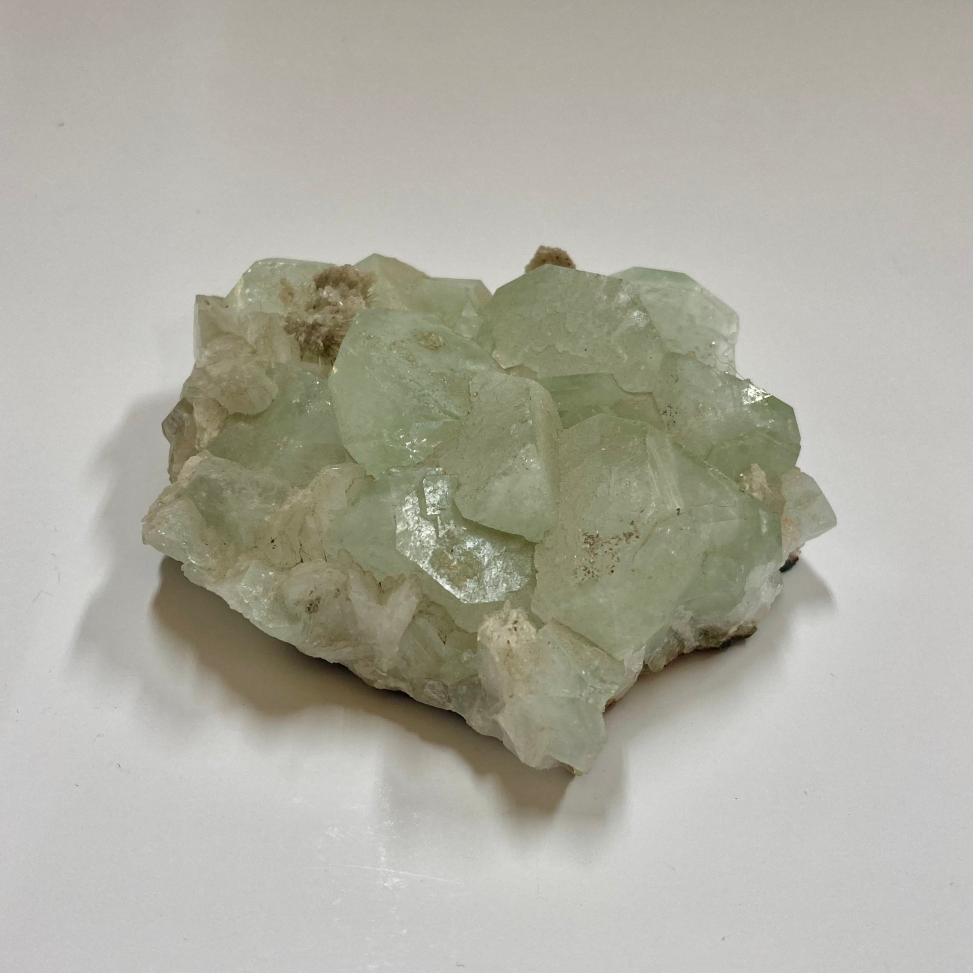 Apophyllite is found all over the world in volcanic zeolite environments, most notably in India. It most often forms with other zeolites (minerals that create pale crystals that are soft and easily crushed and steam when heated) like heulandite and can occur in colors like green, brown, gray or colorless.