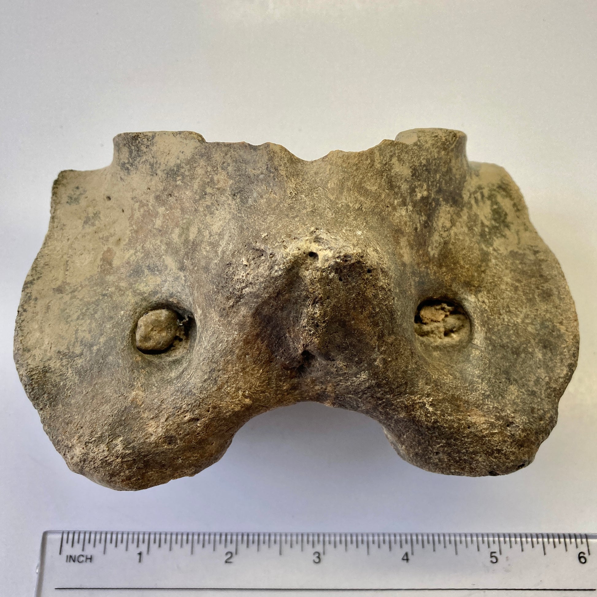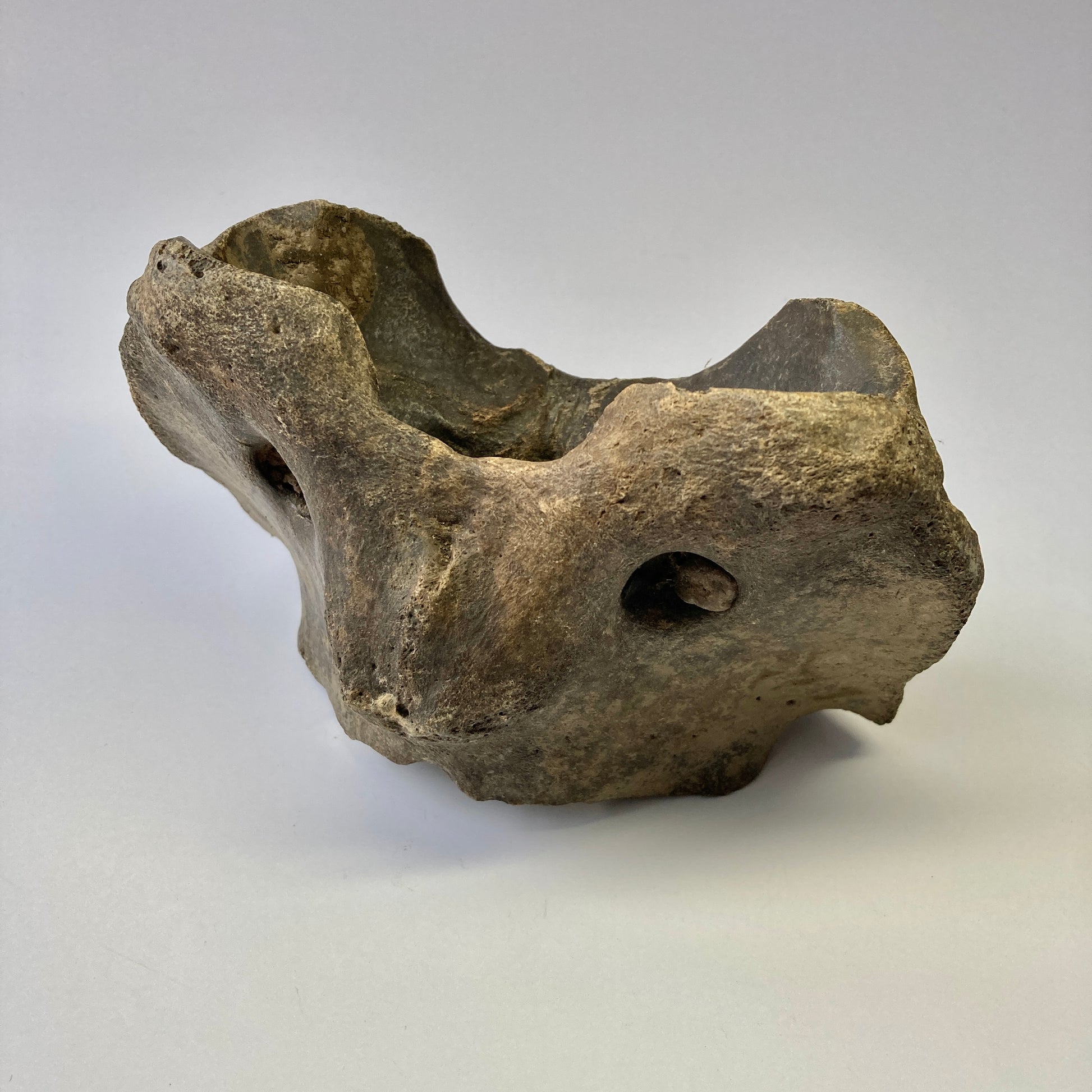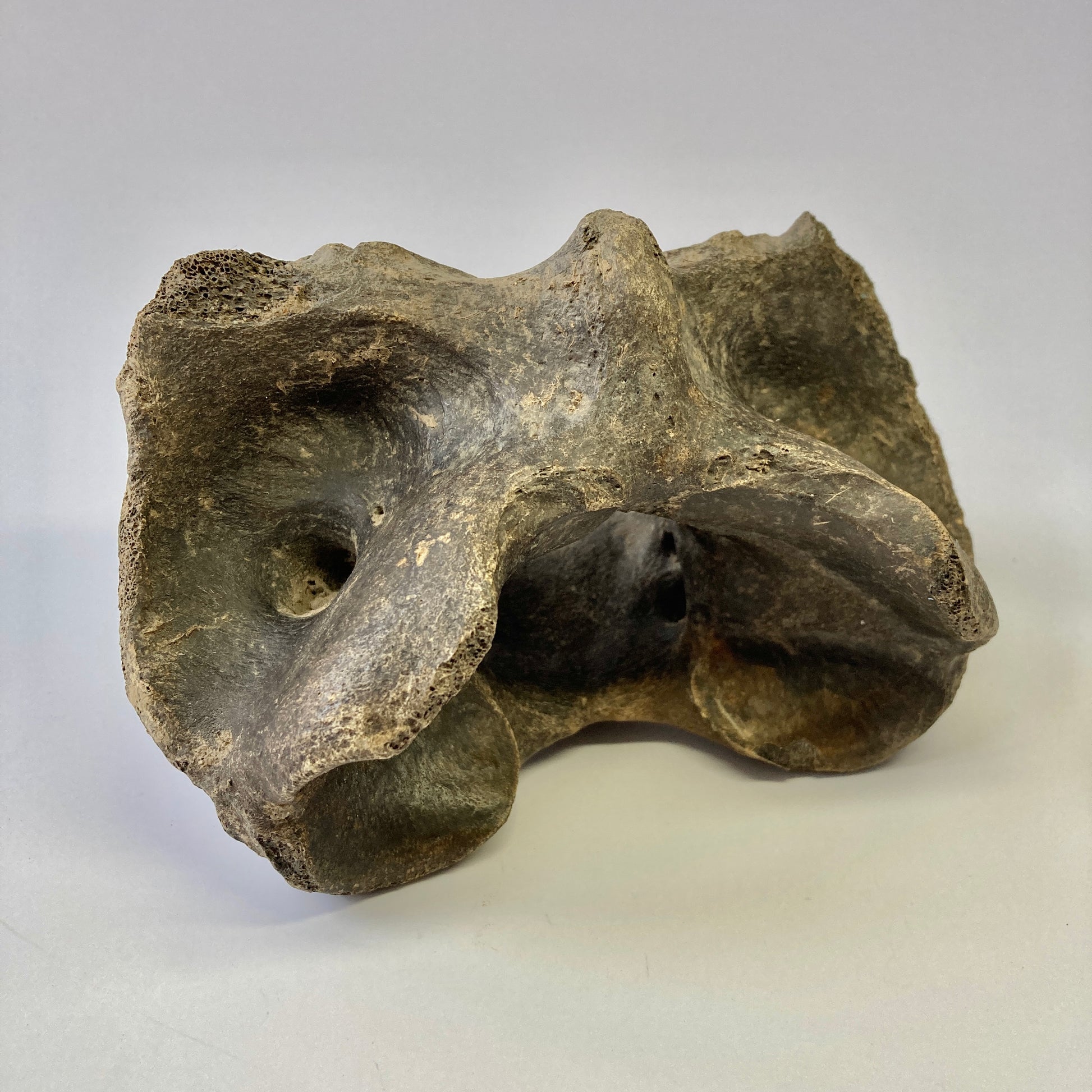 This atlas vertebra from an early bison species dates back to the Pleistocene. It has not been restored or repaired in any way.
