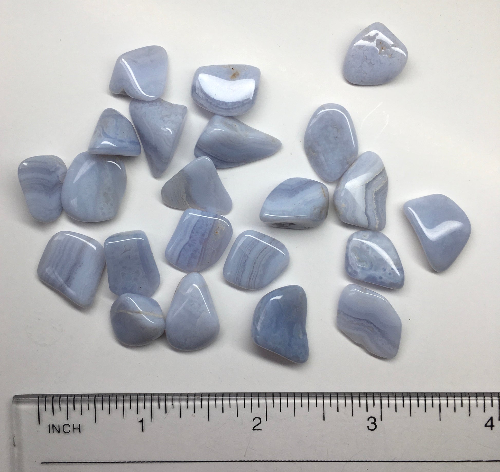 Metaphysical Meaning & Healing Properties: Blue lace agate is a calming stone that relieves stress and anxiety, and assists with public speaking and confrontations. It strengthens sight, diminishes thirst, and promotes marital fidelity. It is a throat healer, soothes skin conditions that cause redness and irritation, and assists in the treatment of arthritis. Blue lace agate is associated with the throat and heart chakras.