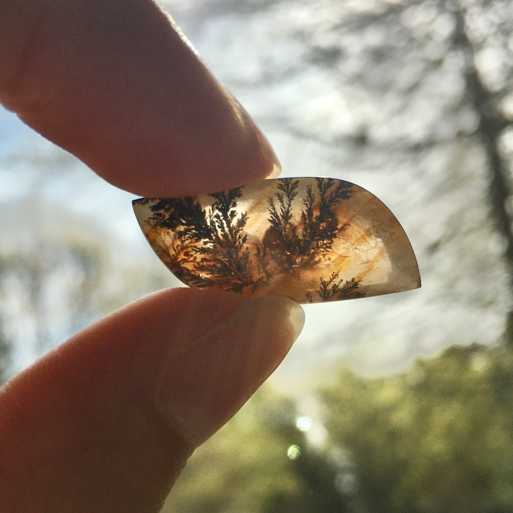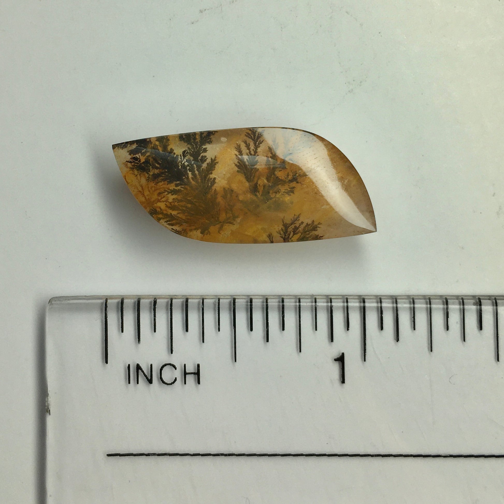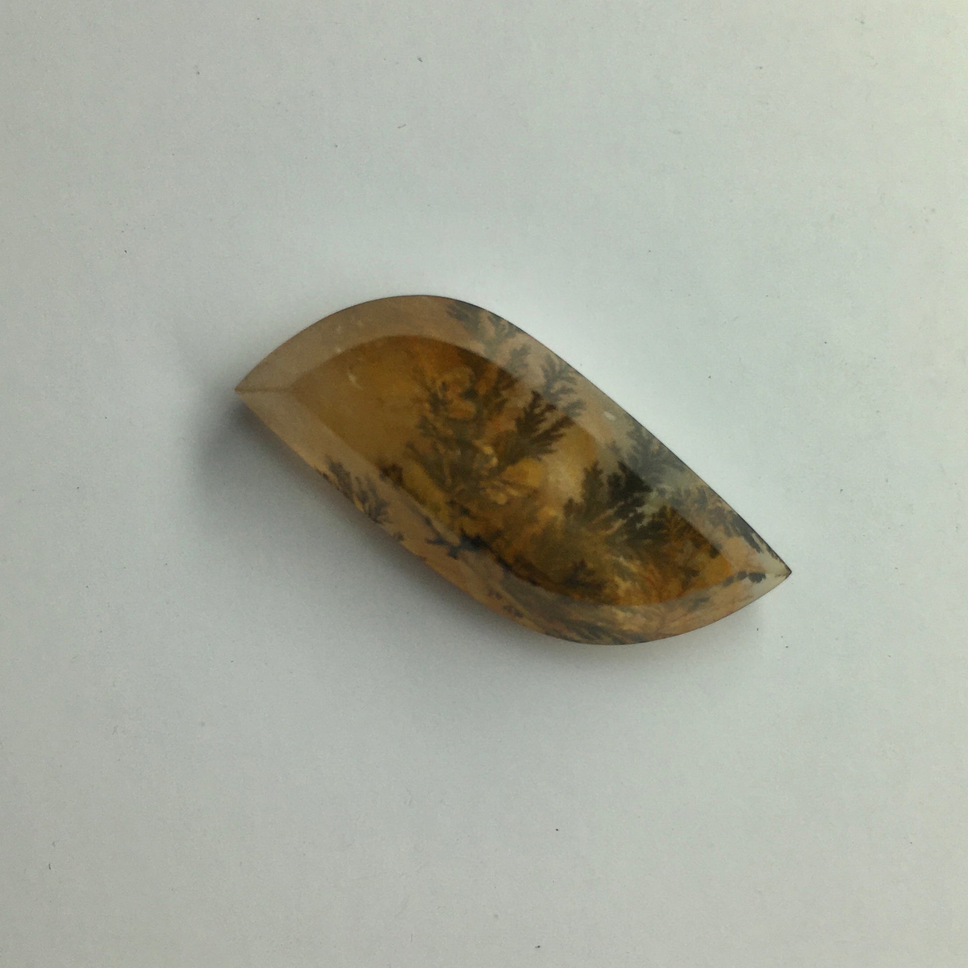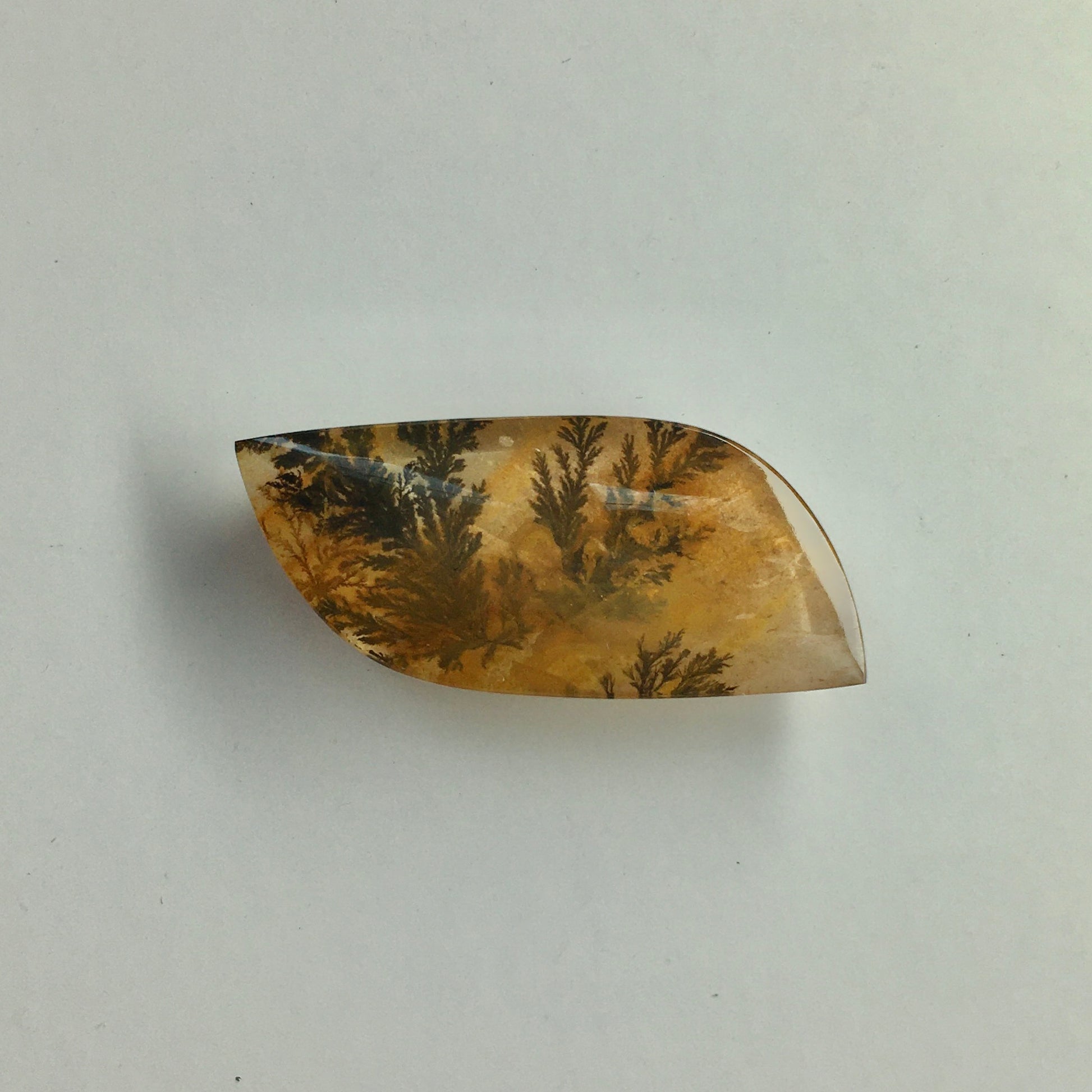 Don't be fooled by that "plant" stuck in this quartz--it is actually a mineral vein! The organic shape, clean cut and smooth polish of this small dendritic quartz cabochon is perfect to display either in a case or on your person as an eye-catching piece of jewelry!