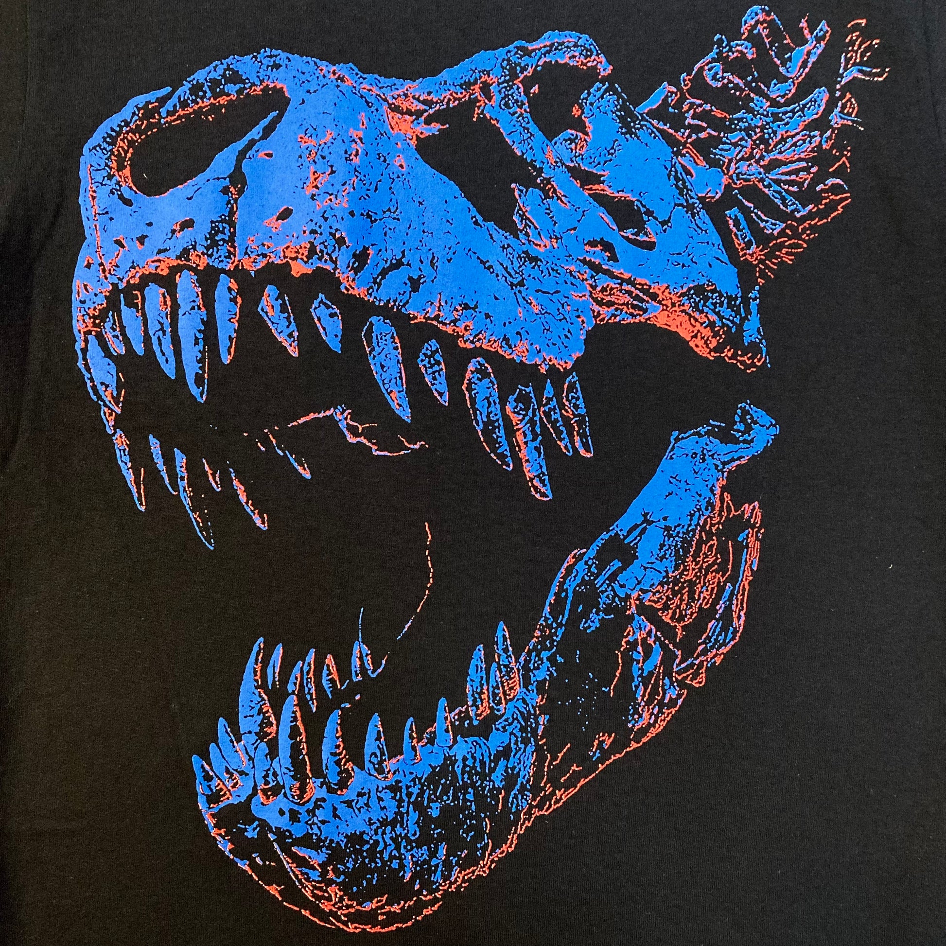 This almost 3-D effect shirt of a massive Tyrannosaurus rex skull emerging from the depths of the dark background puts the X in eXtreme.