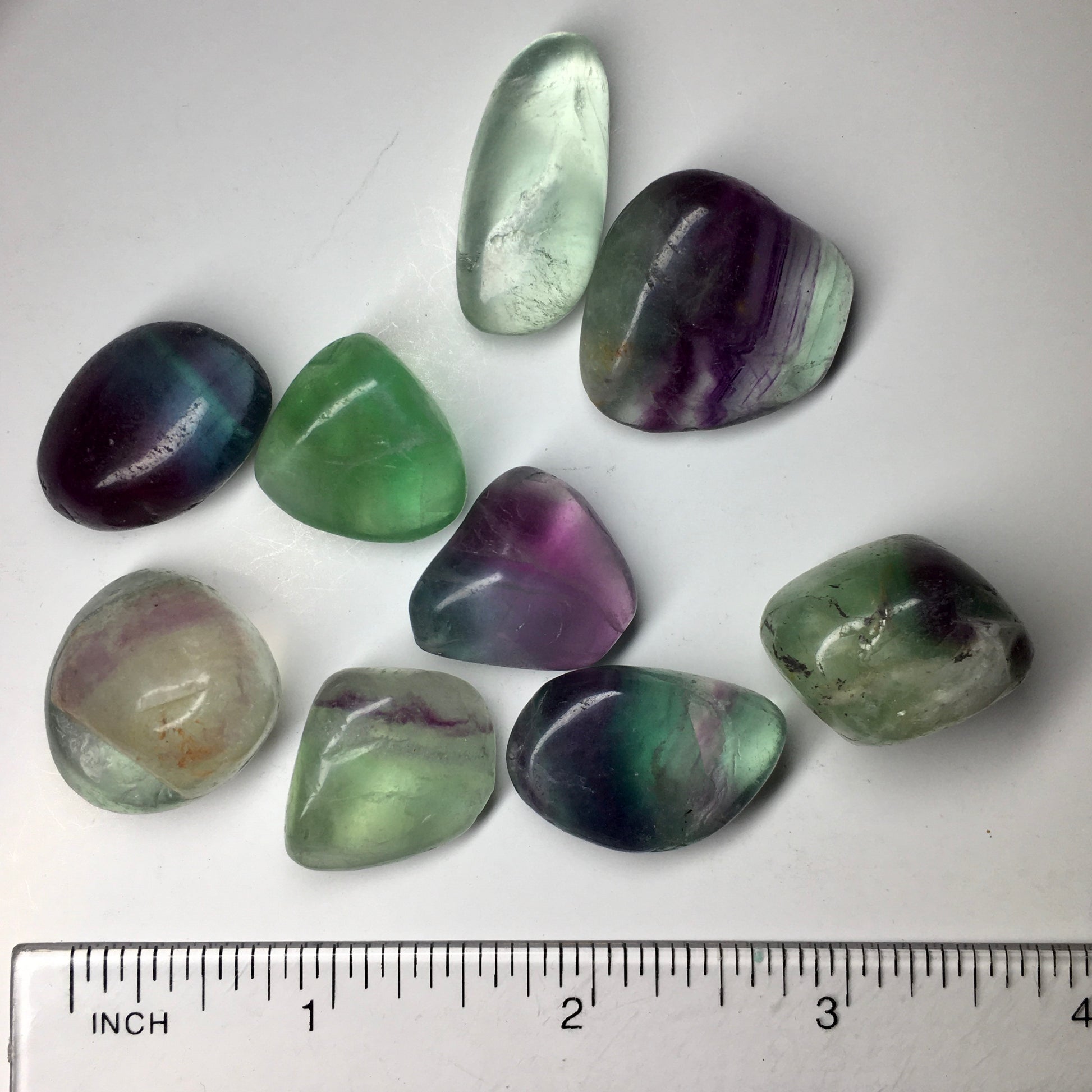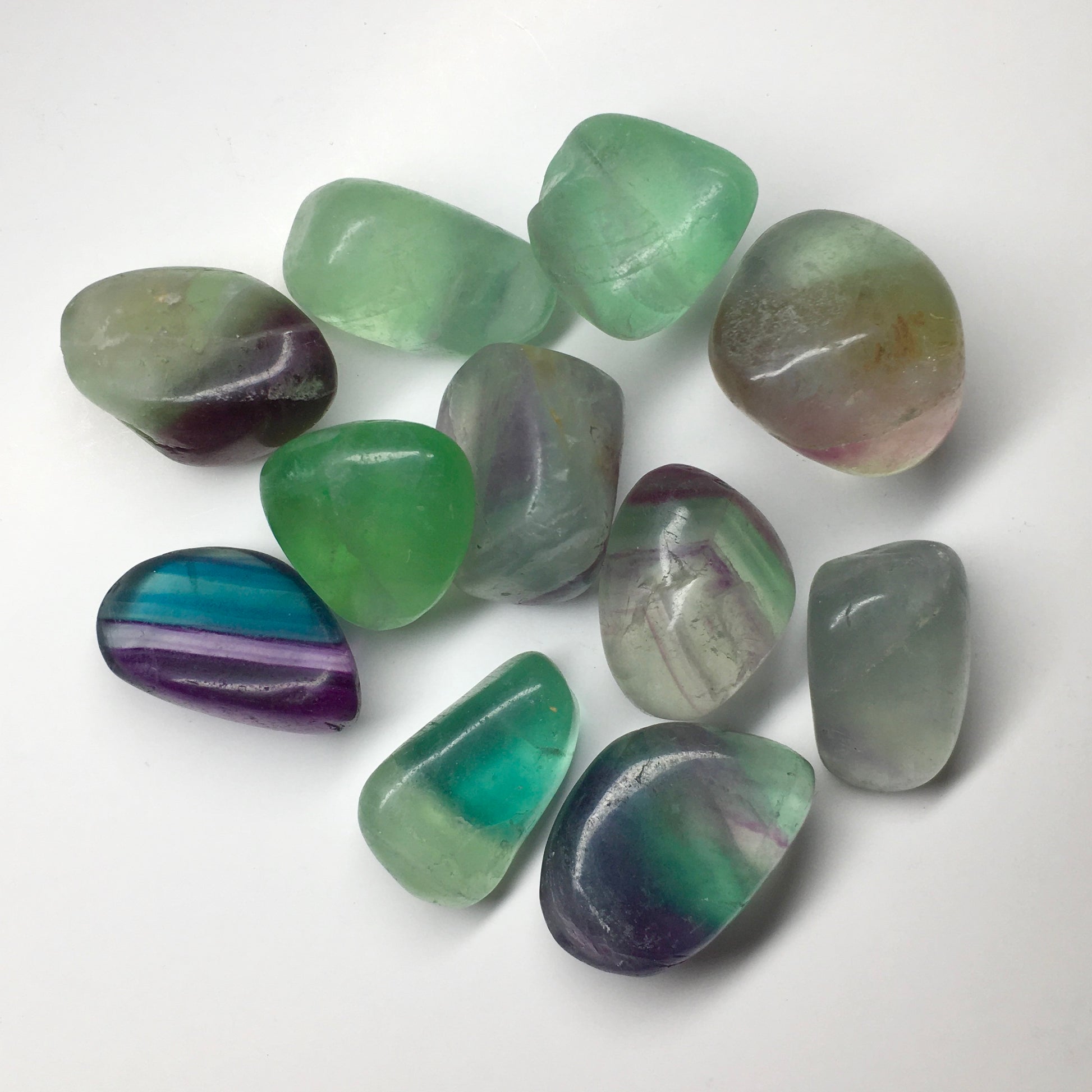 Fluorite (or fluorspar) can come in all different colors--the most common being purples, greens, blues and colorless. The color of fluorite comes from the purity of the stone and its exposure to radiation. Pure fluorite is colorless and transparent, but the more impure the mineral, the more colorful it will be.