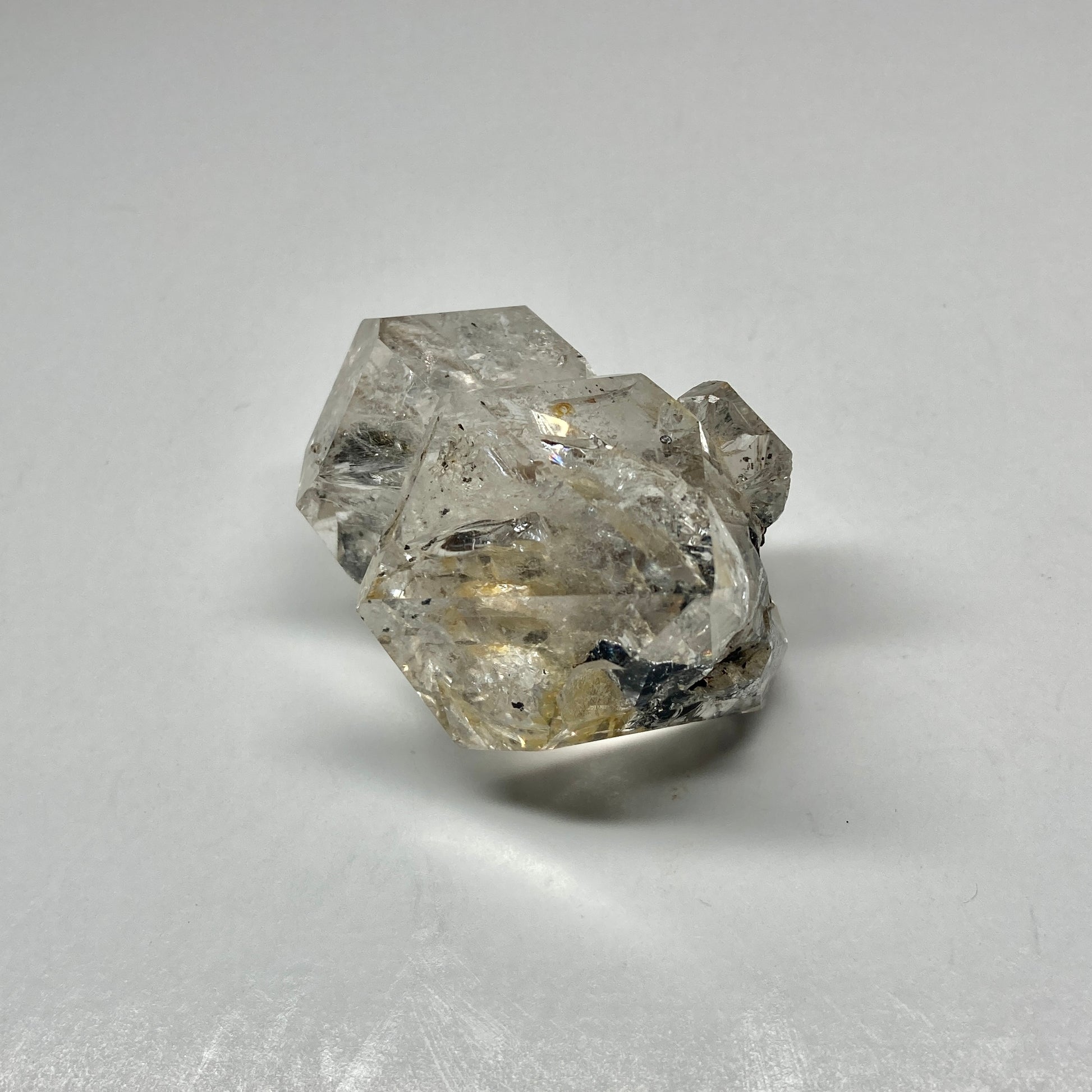 Herkimer Diamonds are not true diamonds but are double-terminated quartz crystals found in Herkimer, New York. Incredibly, these gemstones are close to five hundred million years old. The crystals are naturally found with a diamond-like geometrical shape. Thus, the name recognition of “Herkimer Diamonds”.