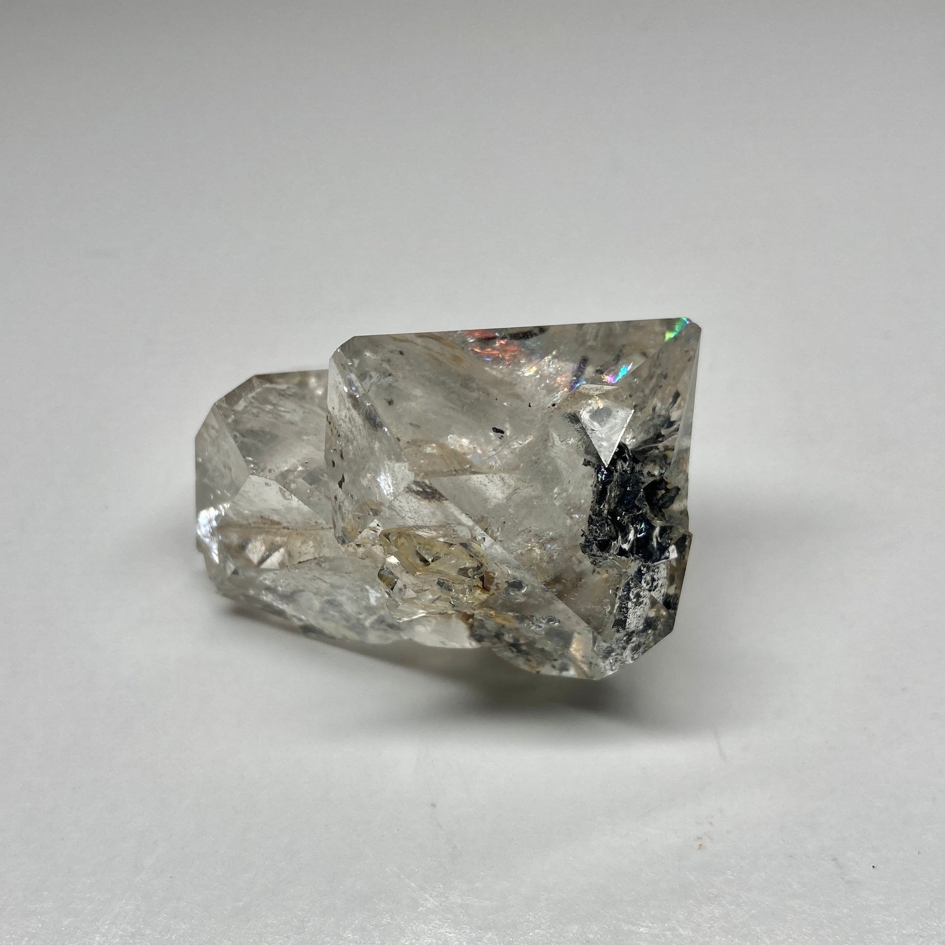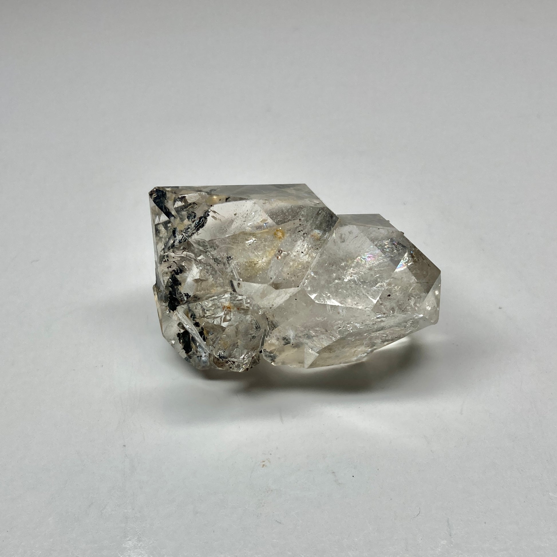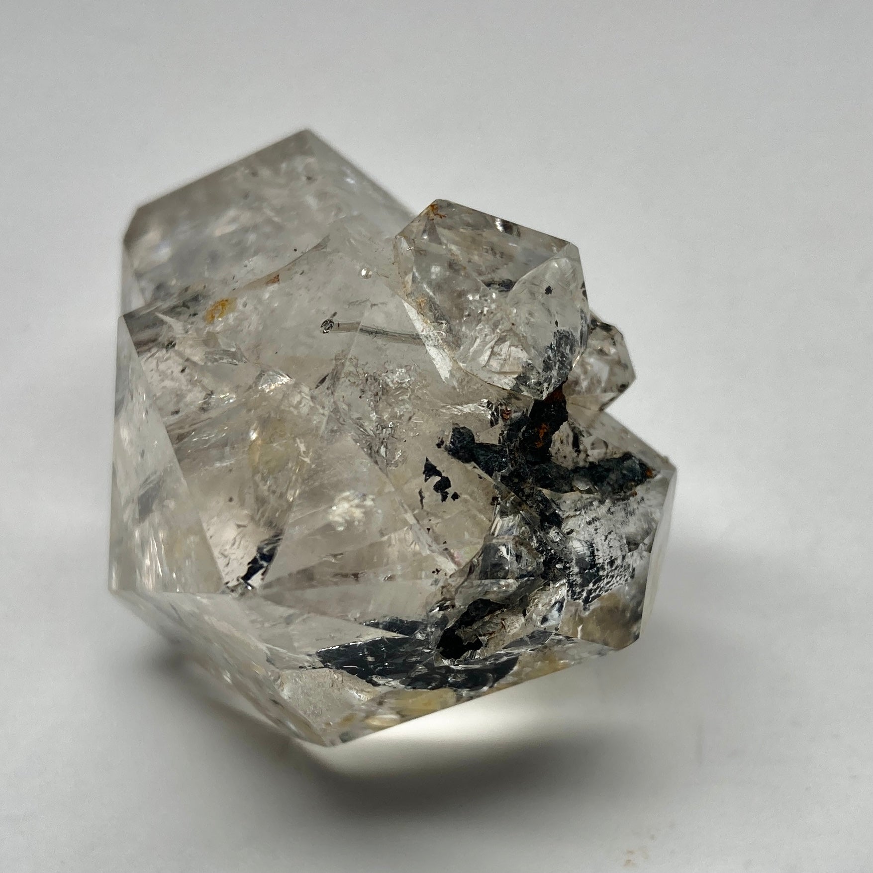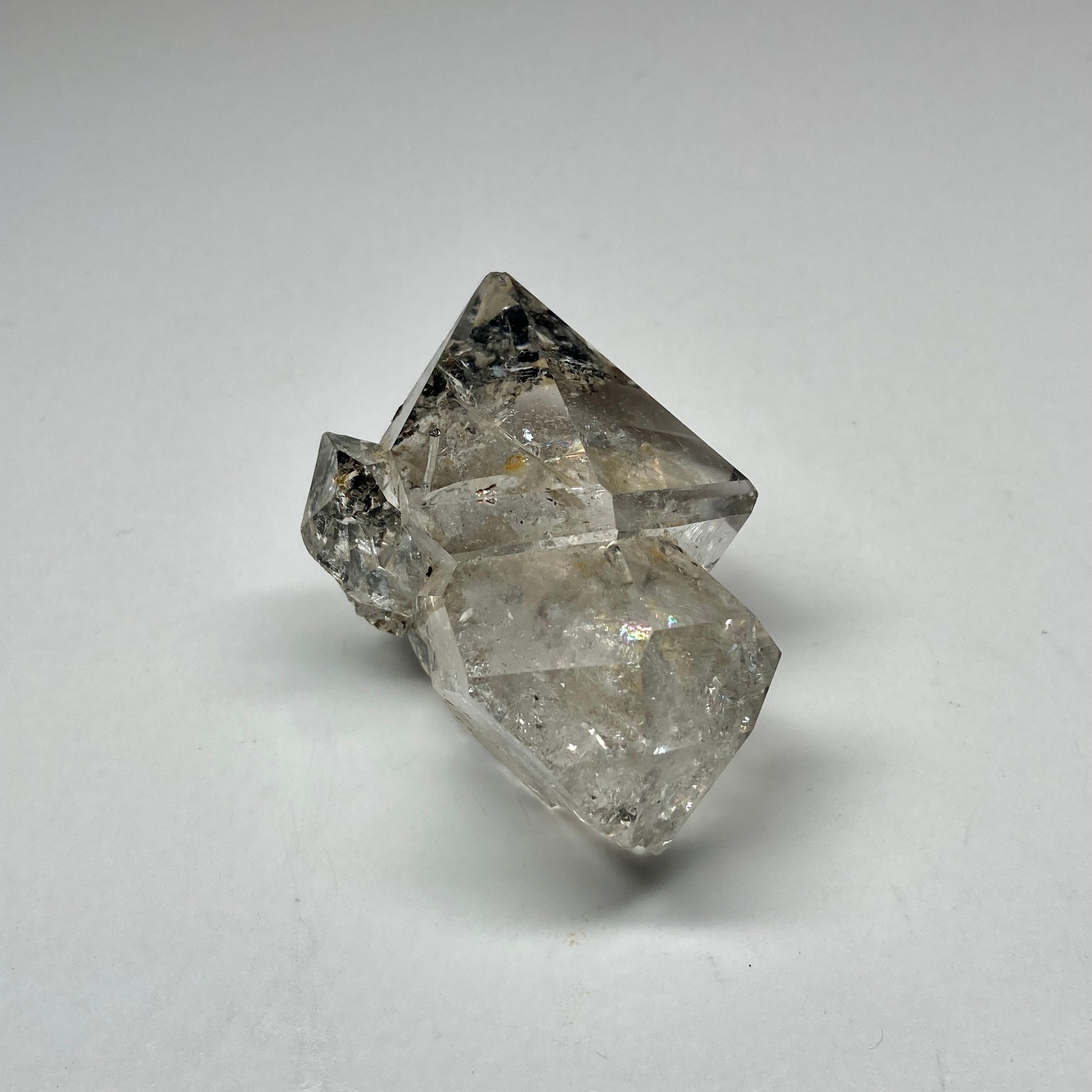 During the Precambrian period (1100 million years ago), New York State was covered by a shallow sea that was continuously being covered by calcium and magnesium carbonate sediments from the formation of the Adirondack Mountains. These sediments created dolomite bedrock, in which Herkimer Diamonds formed. Some Herkimer Diamonds have liquid inclusions--often as bubbles--of water, salt, and sometimes carbon dioxide. Other Herkimer Diamonds have solid inclusions of a black, coal-like substance called "anthraxolite."
