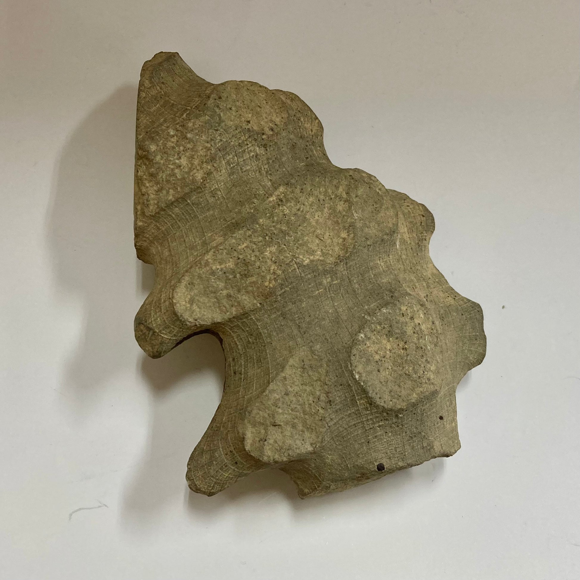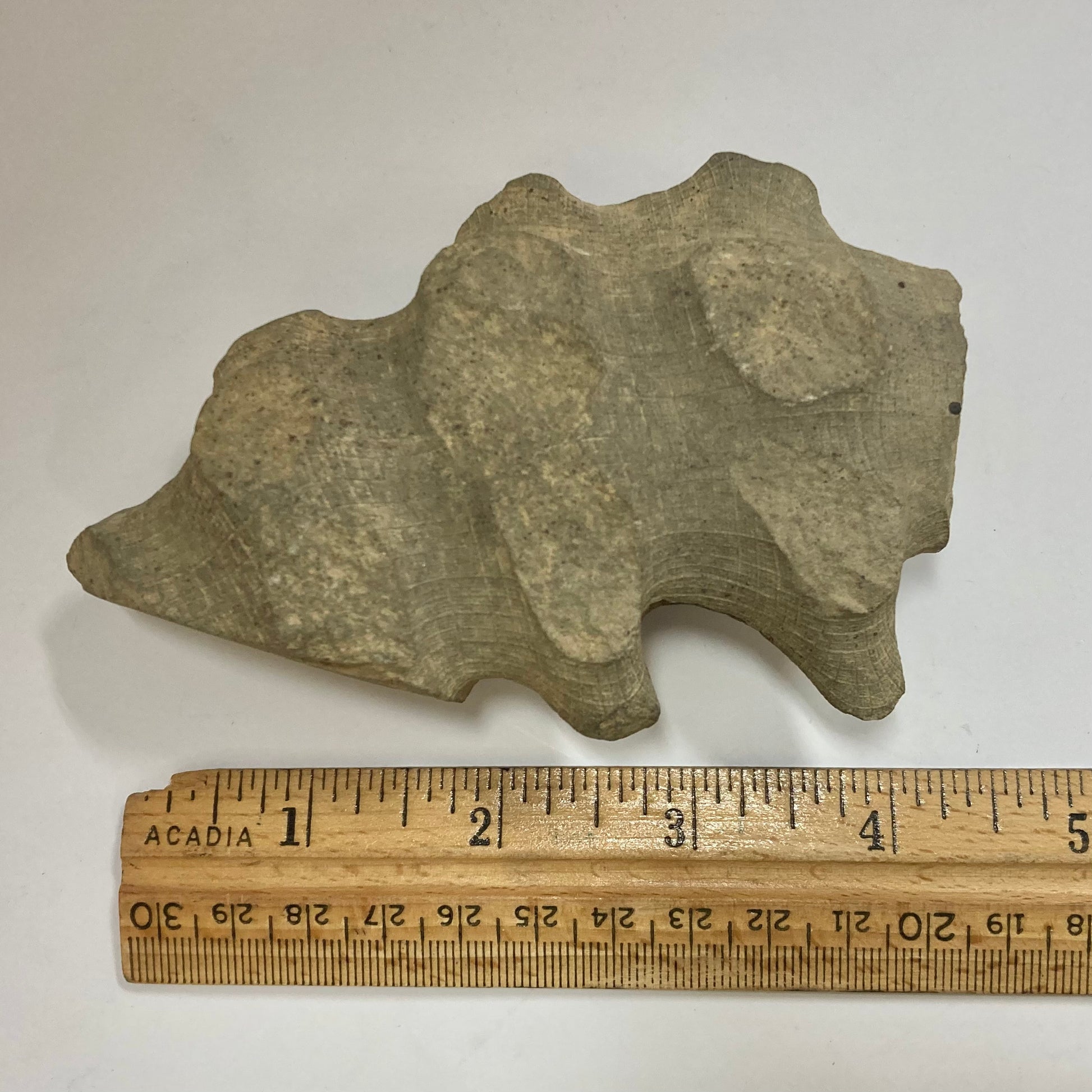 The distinct and thread-thin ridges running vertically down the length of this rare New York sponge are met by horizontal ridges, creating several swelled areas called spicules.