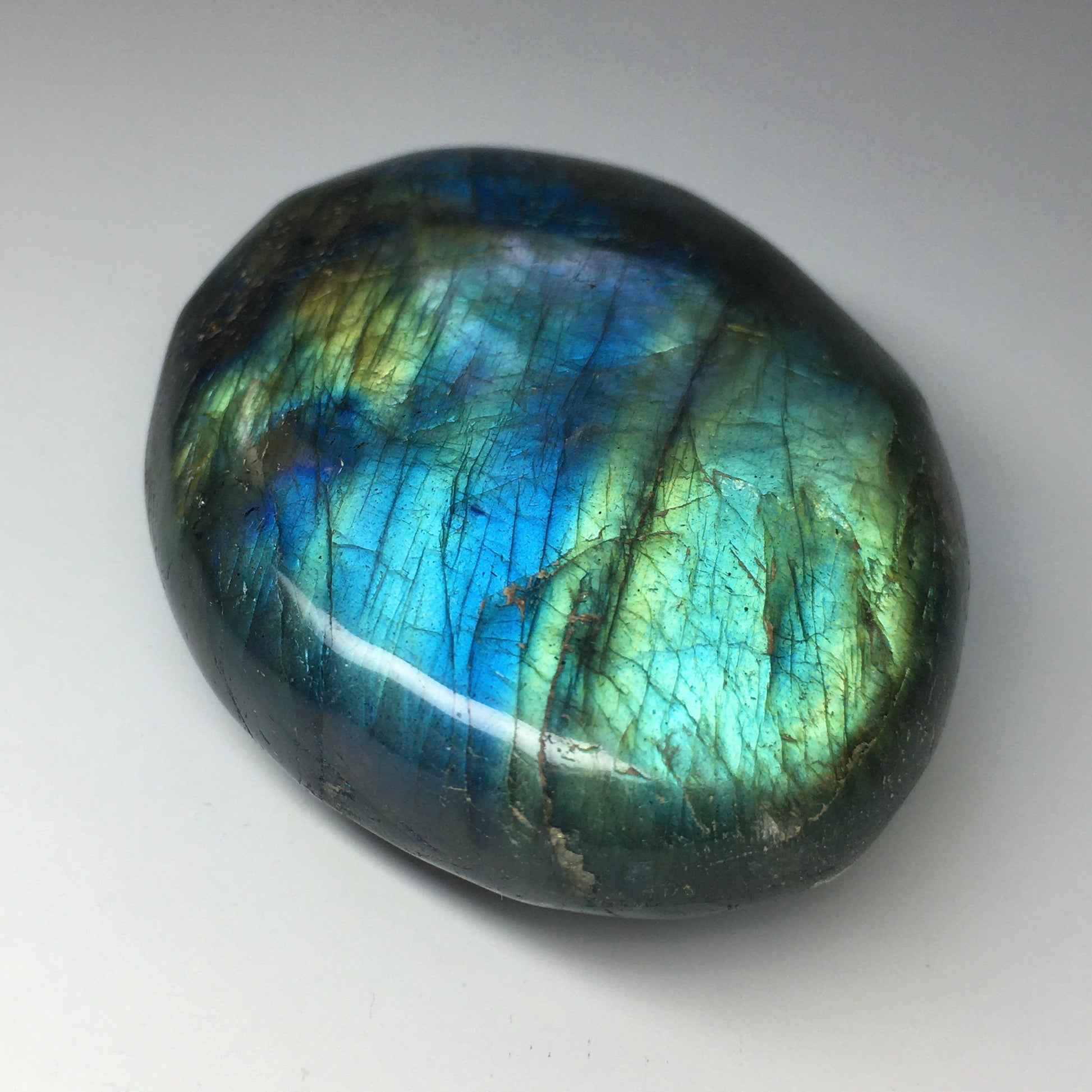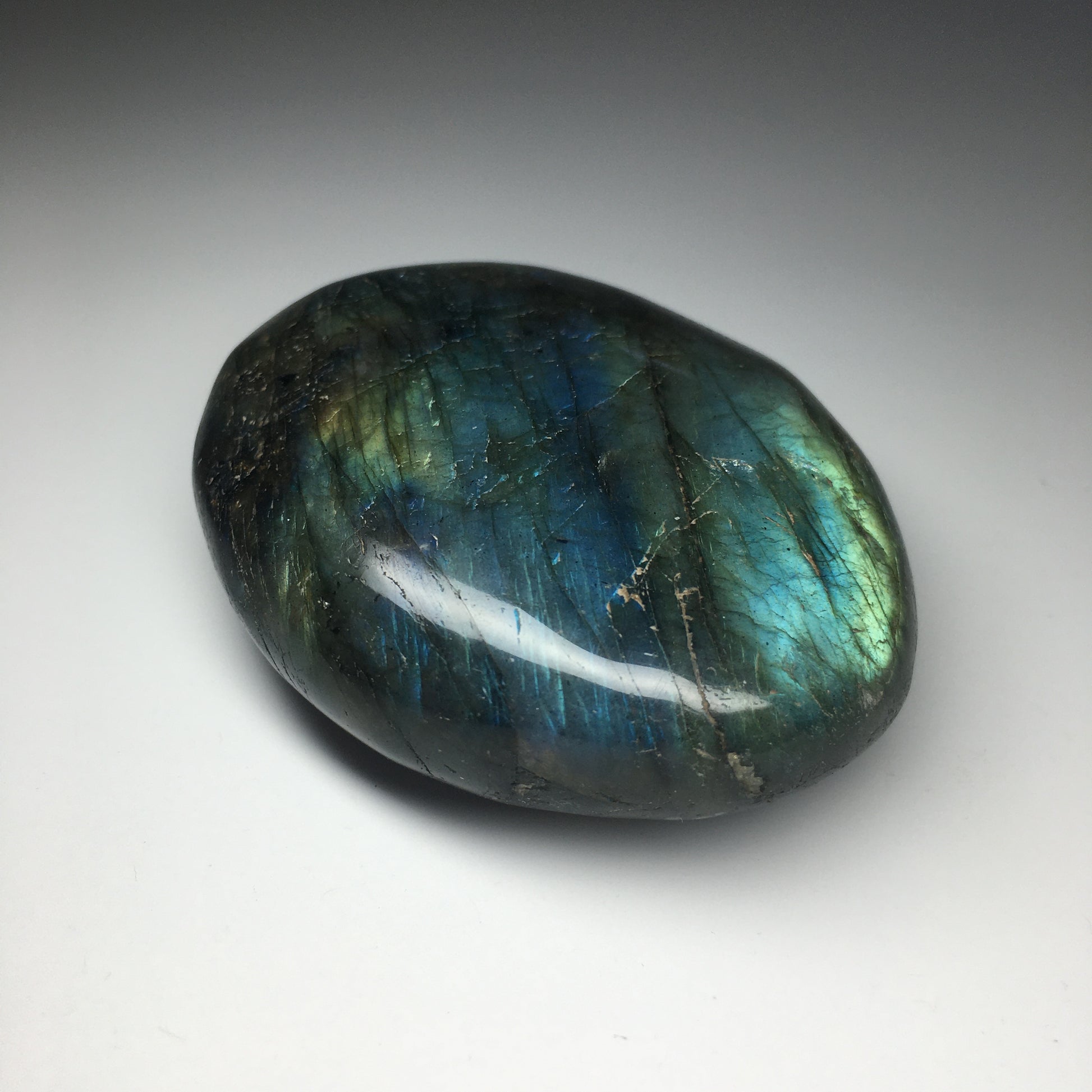 This polished piece of labradorite will be the highlight of any collection with its smooth rounded edges, vibrant colors, and intricate veining.