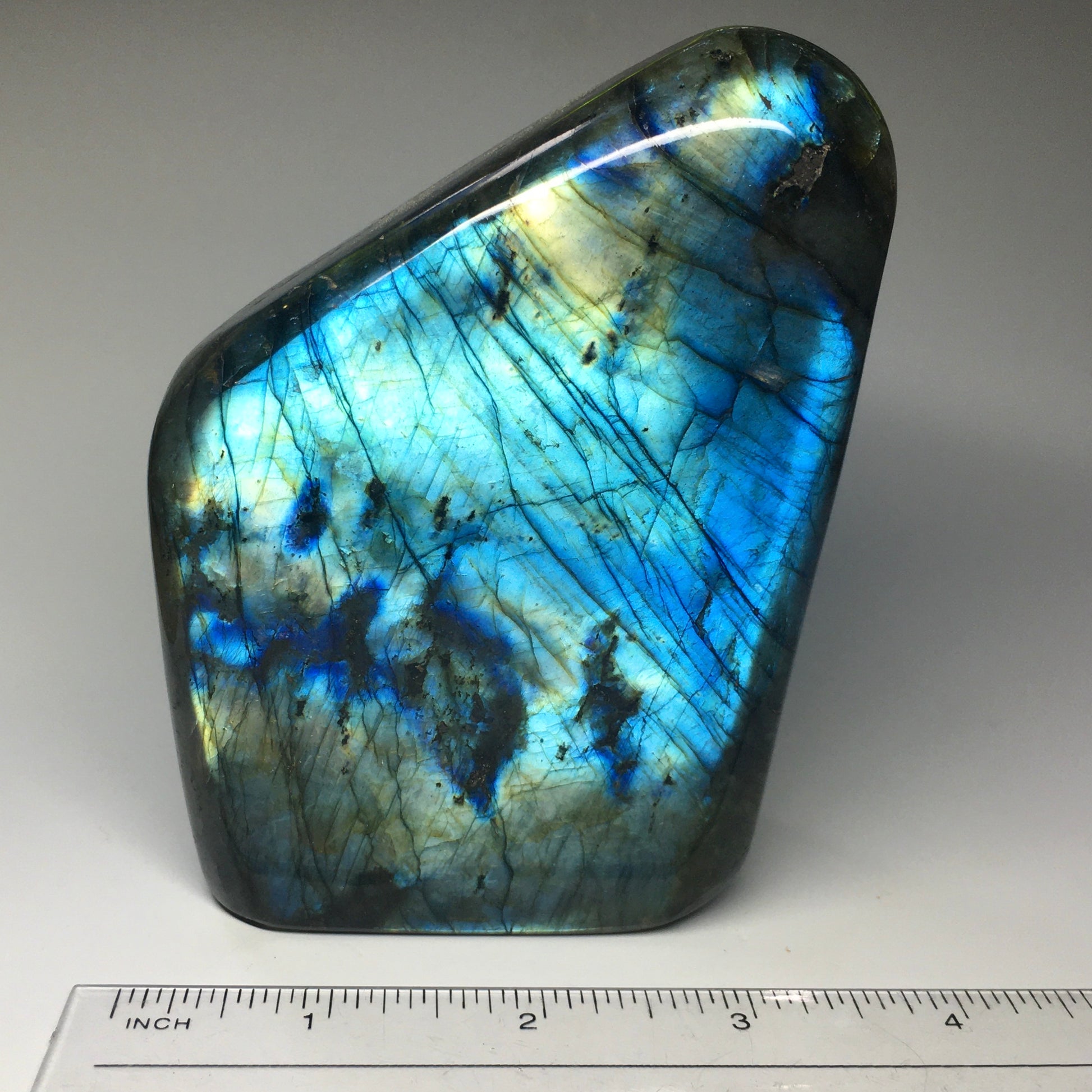 This captivating labradorite stone is polished and shined to bring out the stunning blues, greens, and yellows that were hiding within!