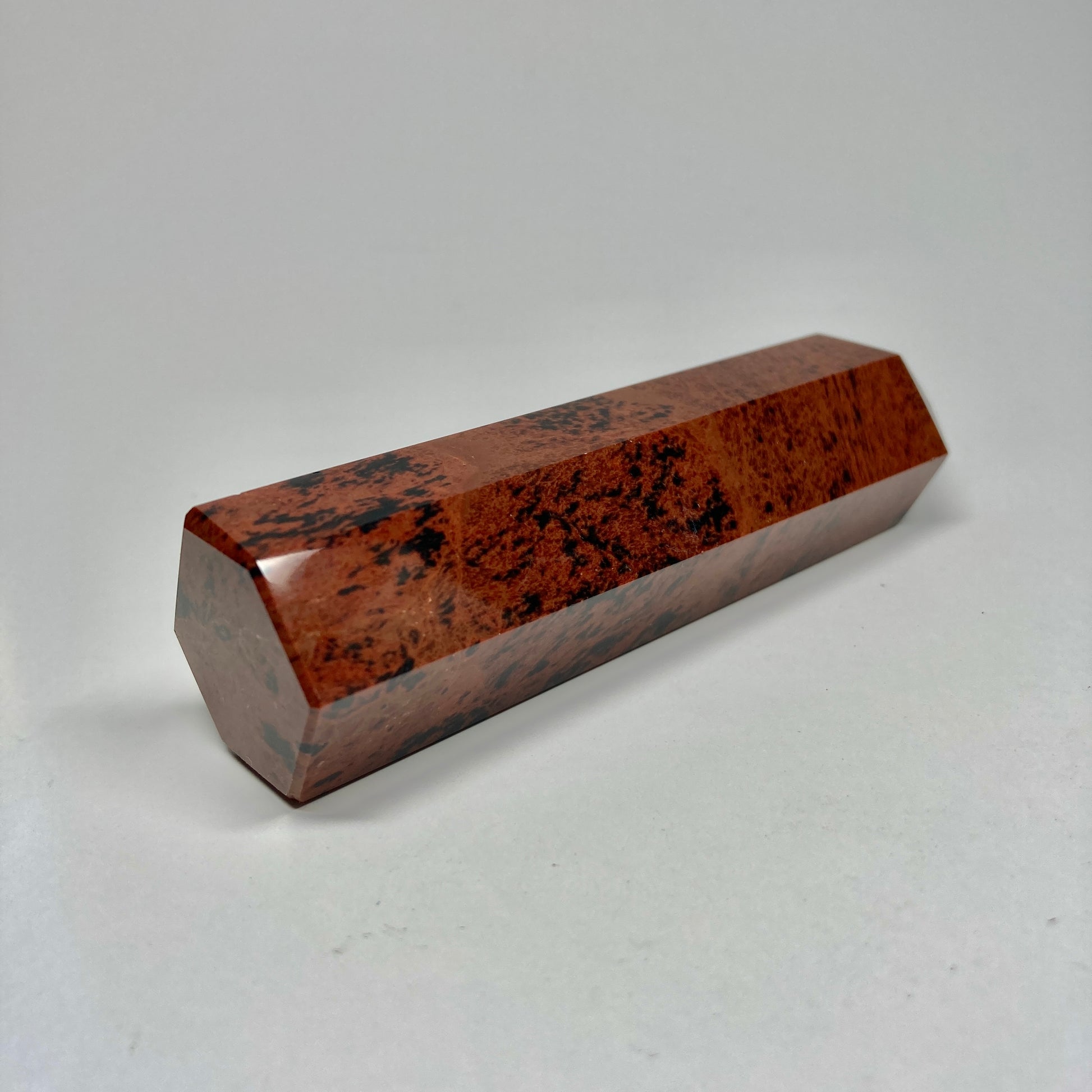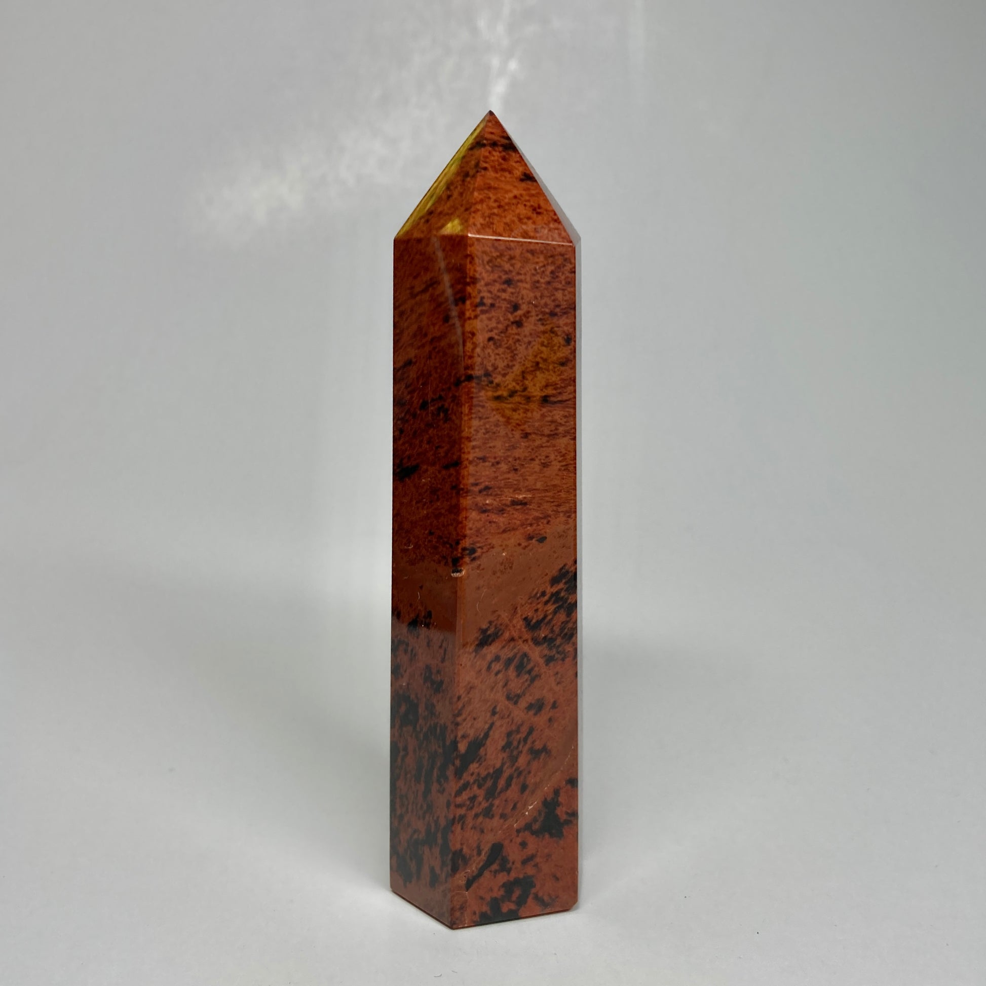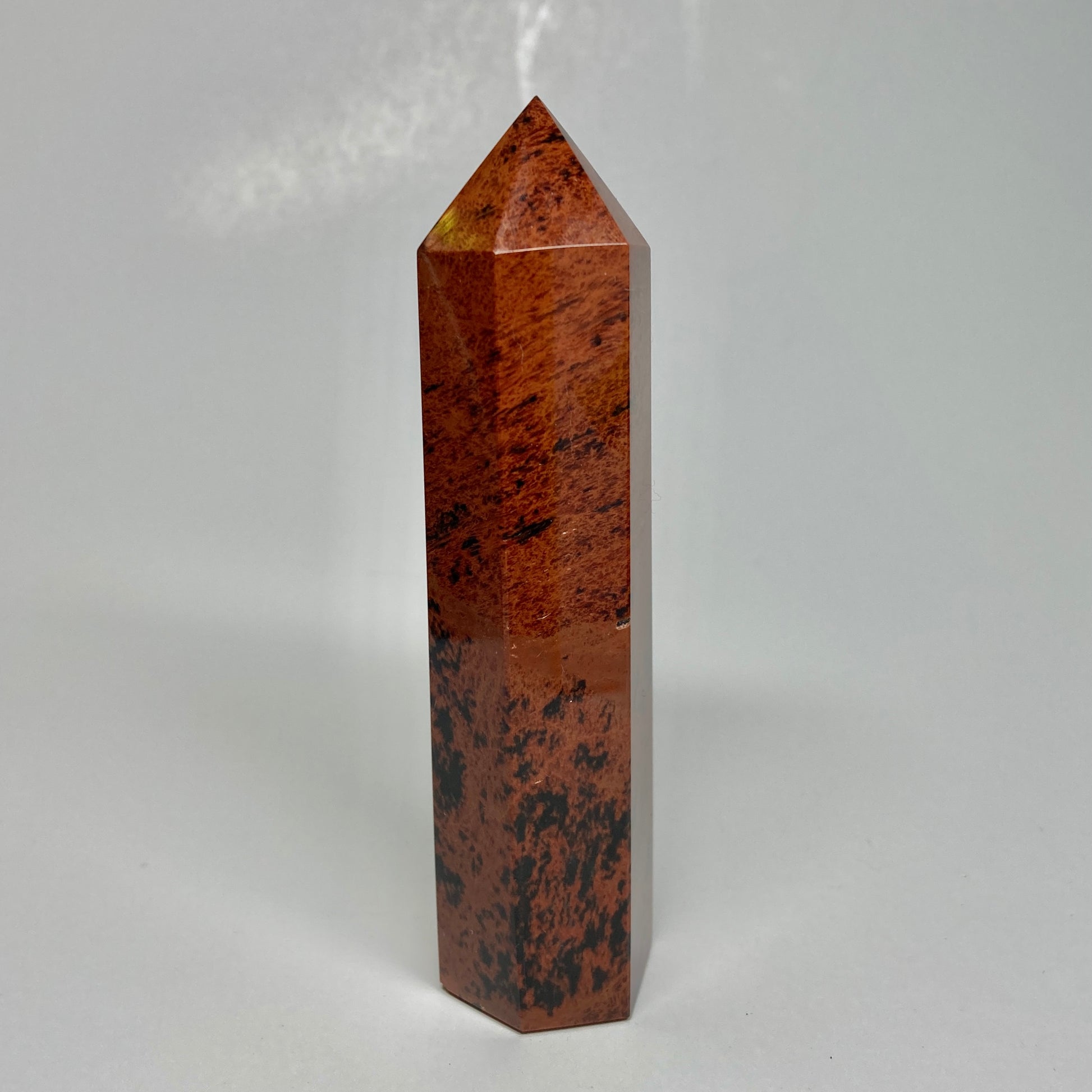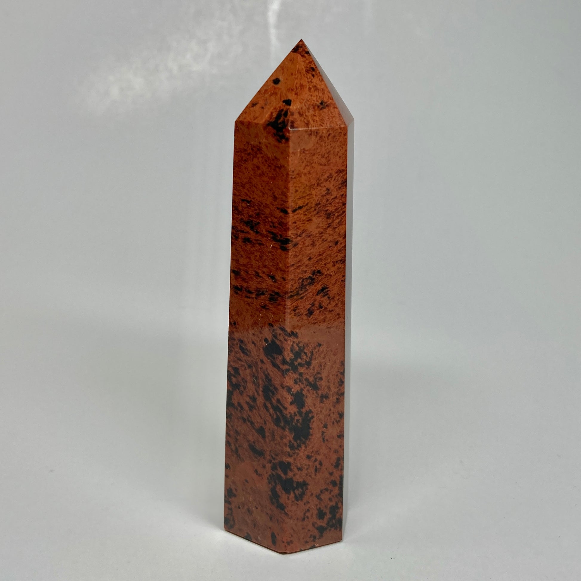 Mahogany Obsidian is natural, volcanic glass that was created when lava cooled extremely quickly either from rain or from entering a water supply like an ocean, thusly preventing crystals from forming. It is likely that the reddish-brown coloring is from inclusions of hematite or iron.