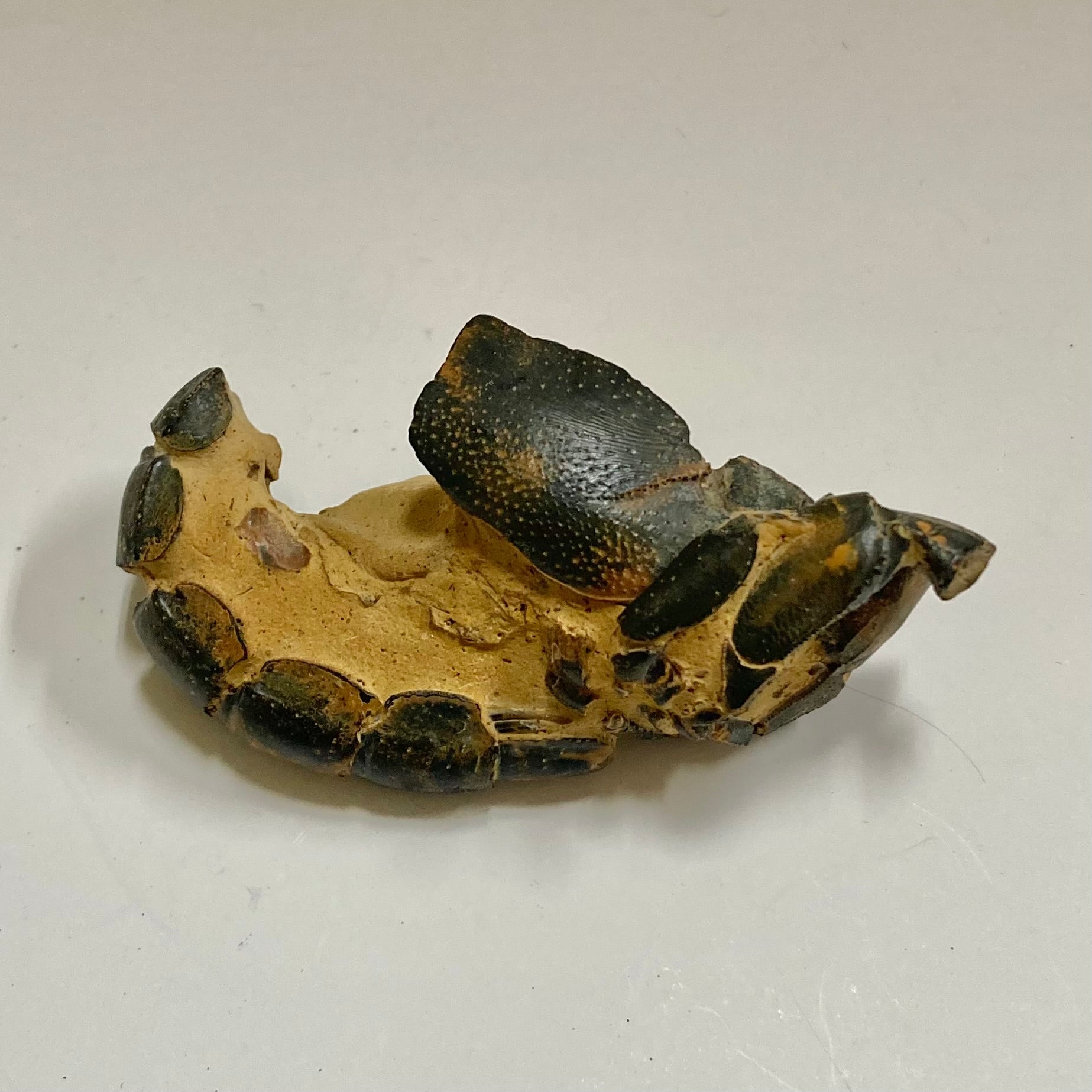 Like present-day mud lobsters, their fossil ancestors would shed their exoskeletons into the swampy environments as they grew. Most of the fossils found in the Queensland area are of these sheds. It is fairly rare to find complete exoskeletons and they are generally found fully encased in the sedimentary material that looks like mud.