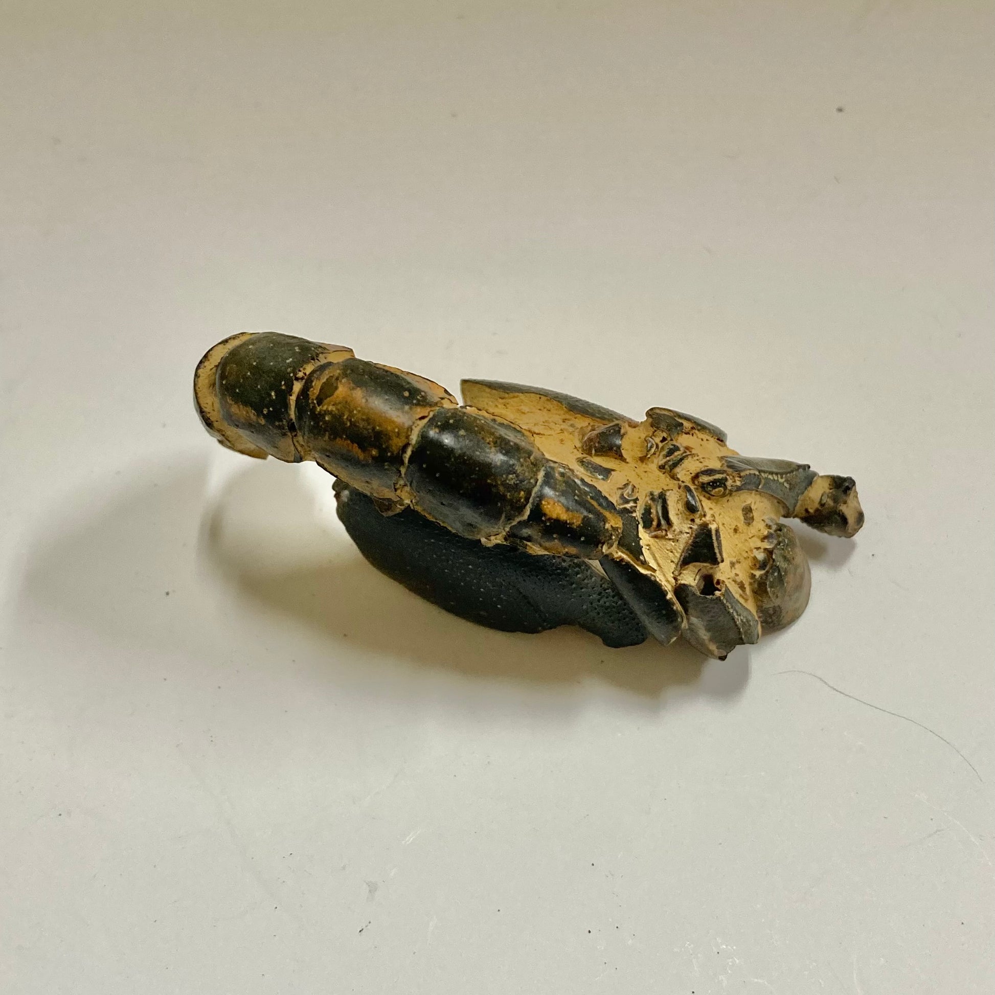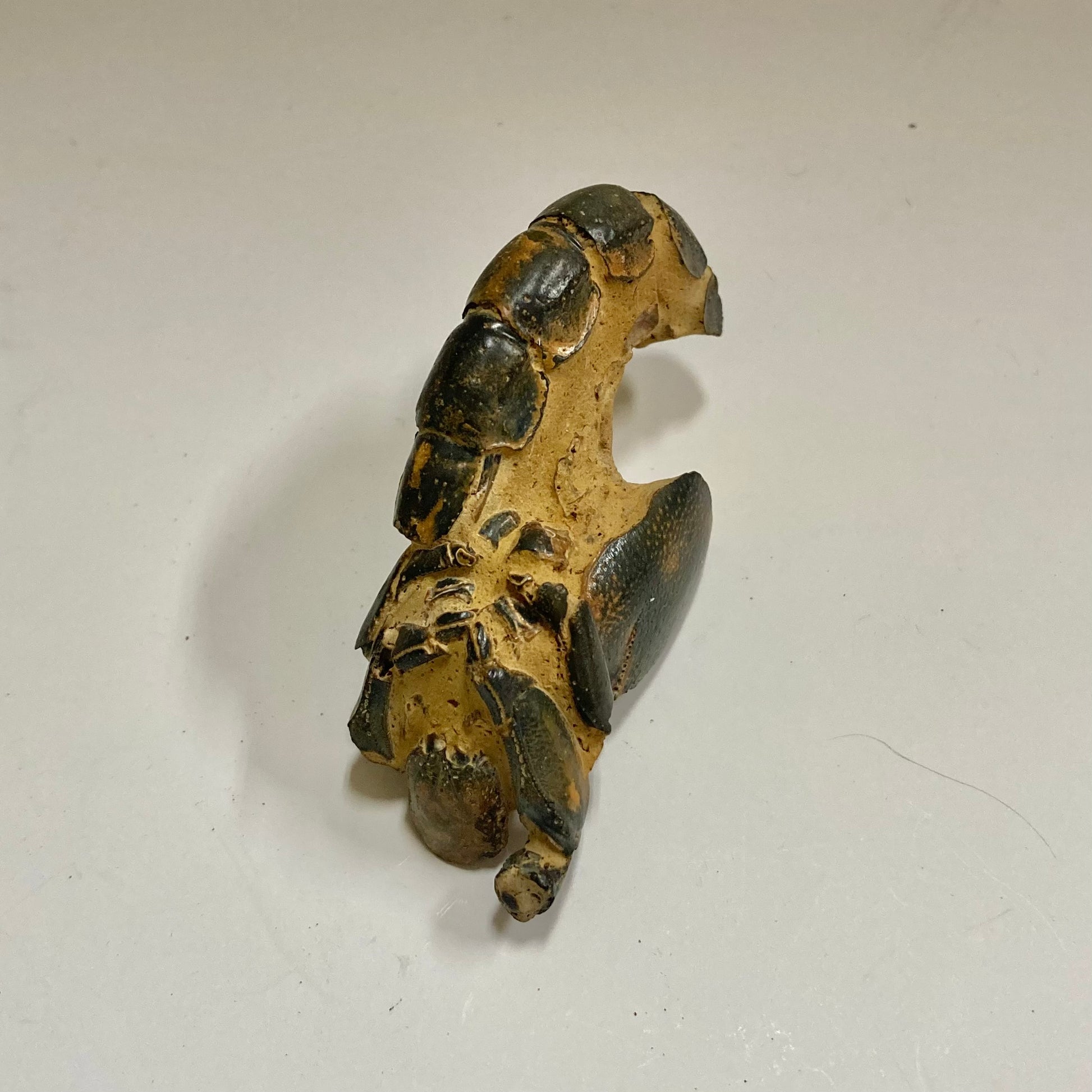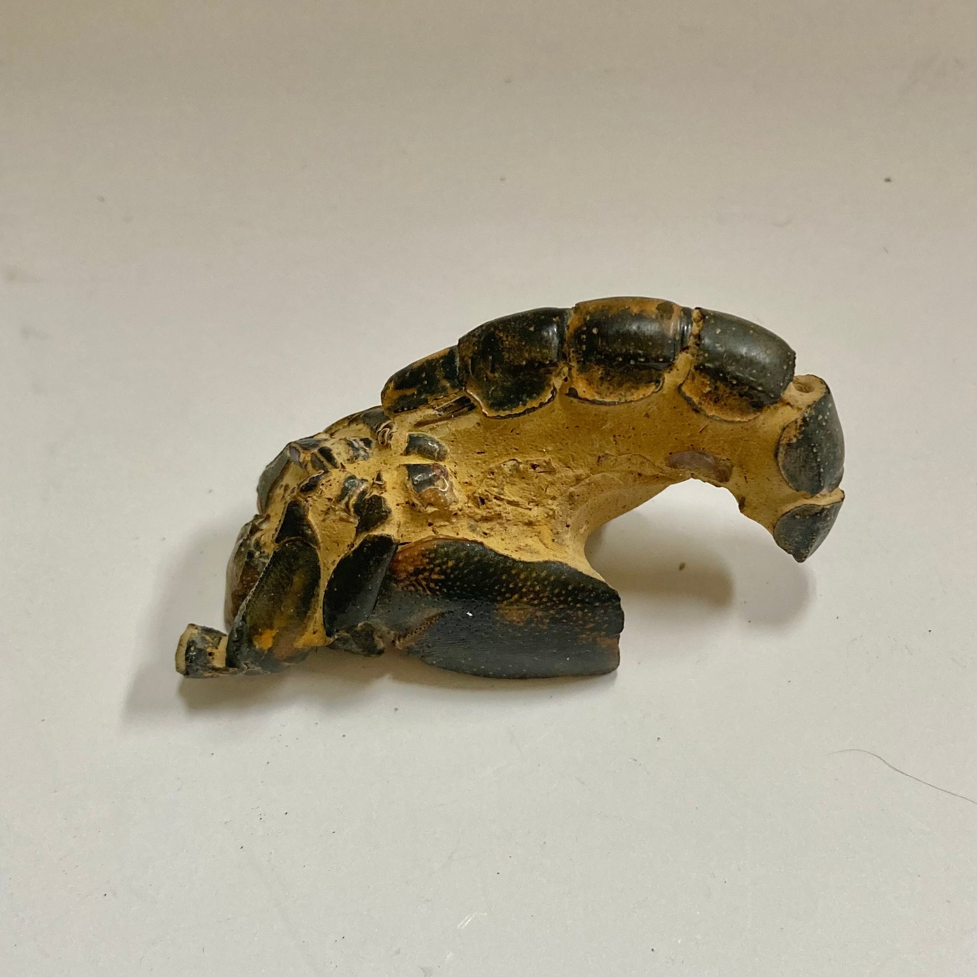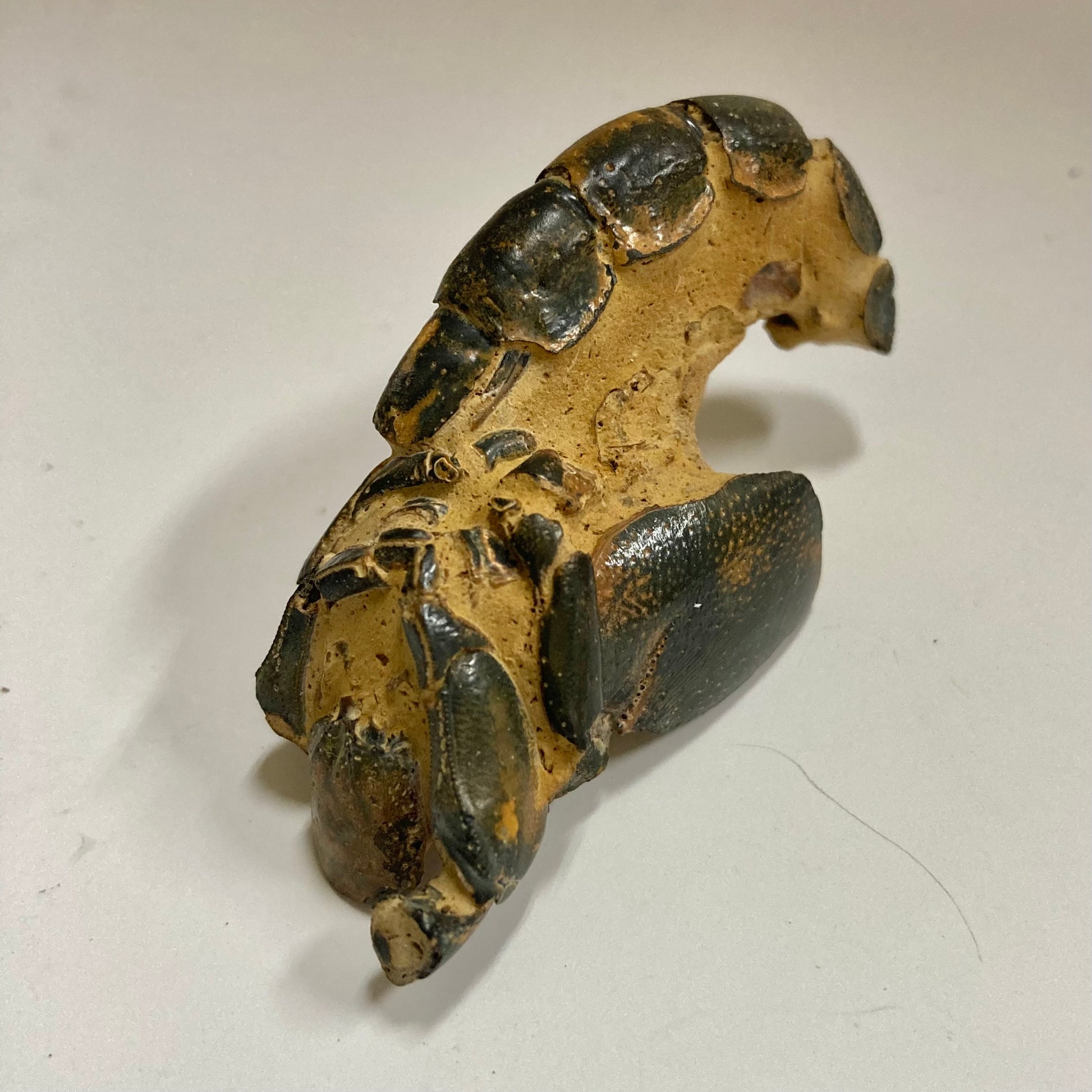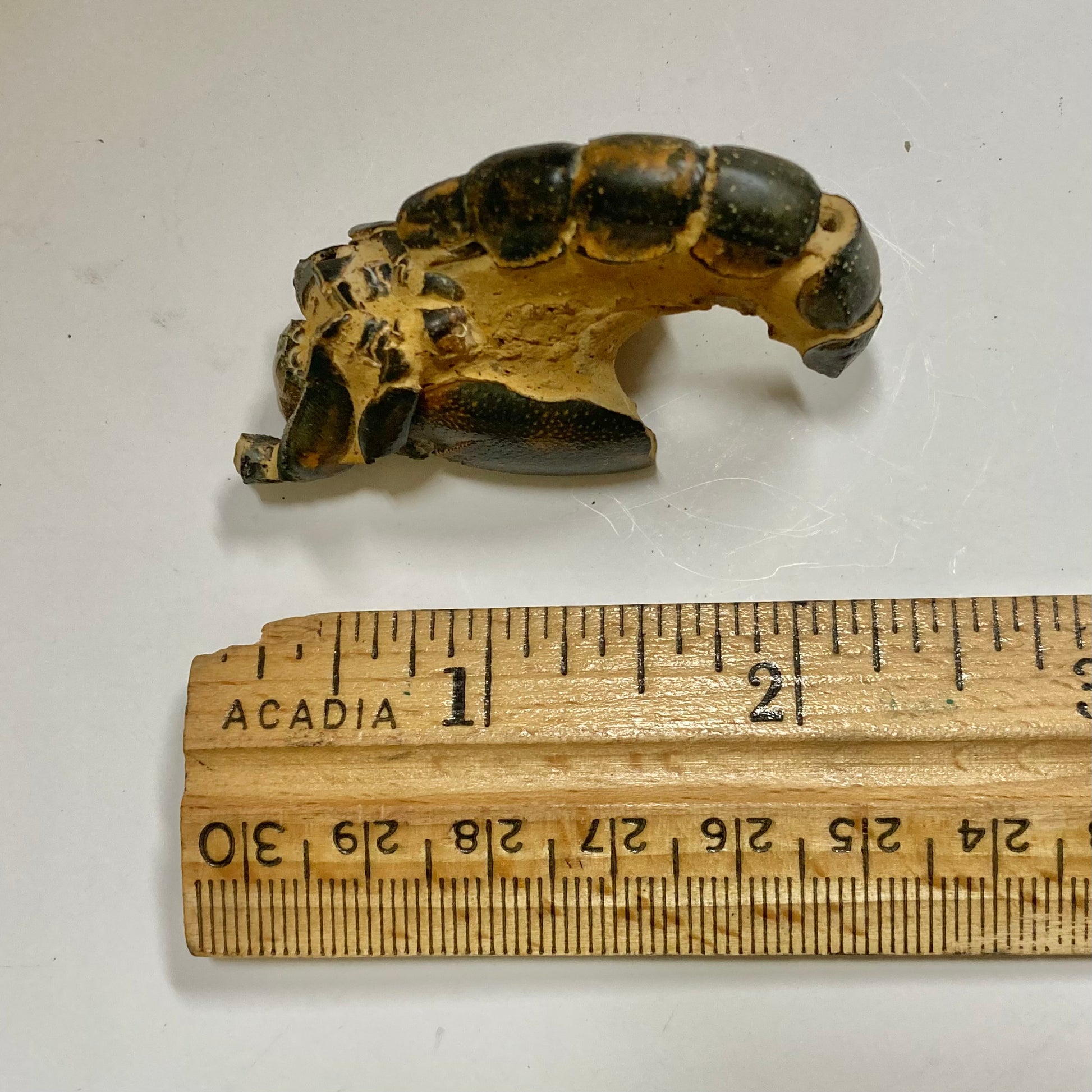 The fossil lobsters from Gunn Point, Australia were quickly buried during natural events like cyclones, causing the lobster exoskeleton to eventually be replaced with calcium carbonate, strontium and iron. These fossilized remains are found within hard mineral concretions that are washed out onto the beach by heavy seas.