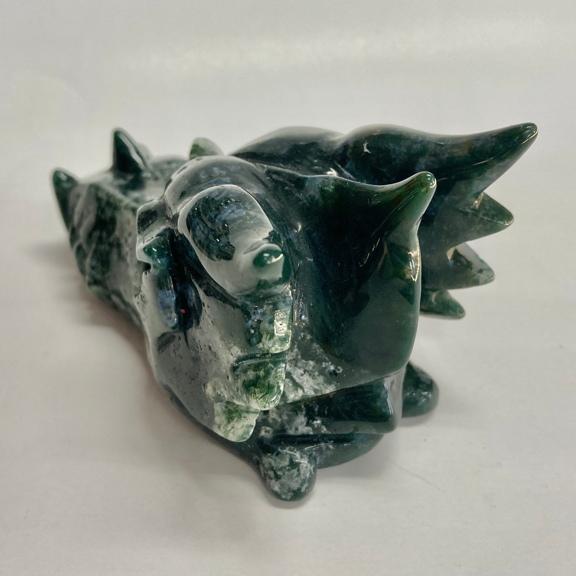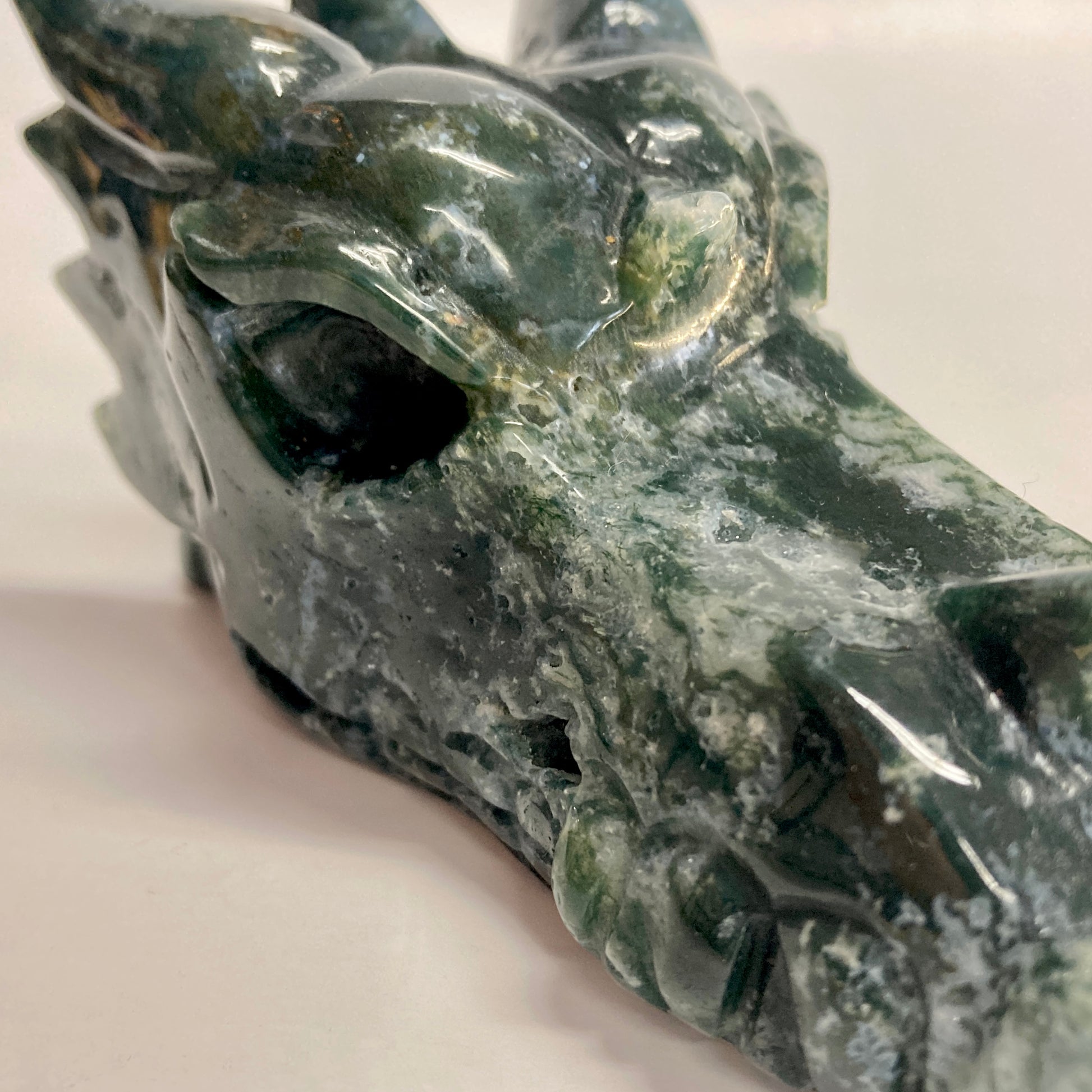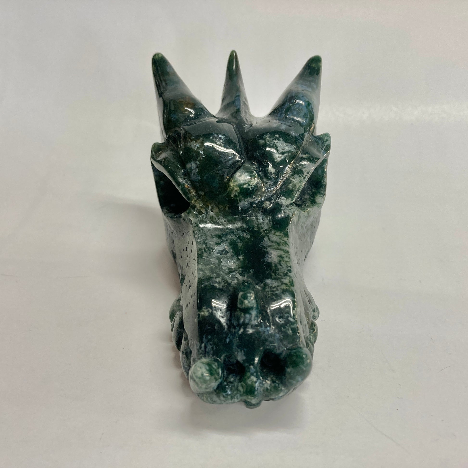 Moss Agate Dragon Skull