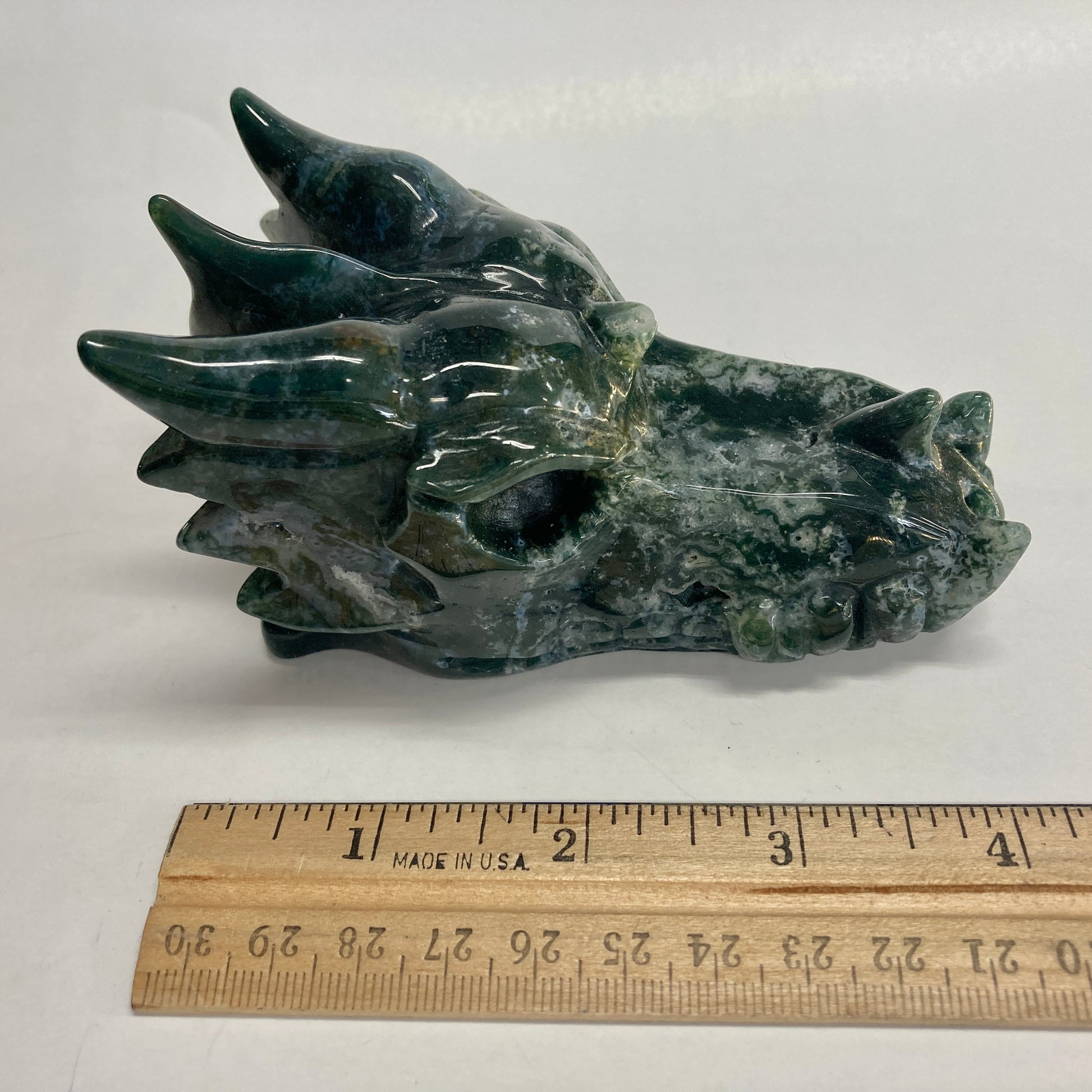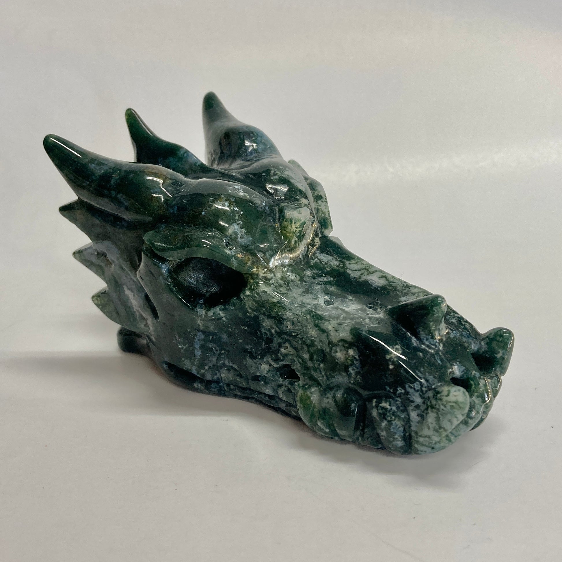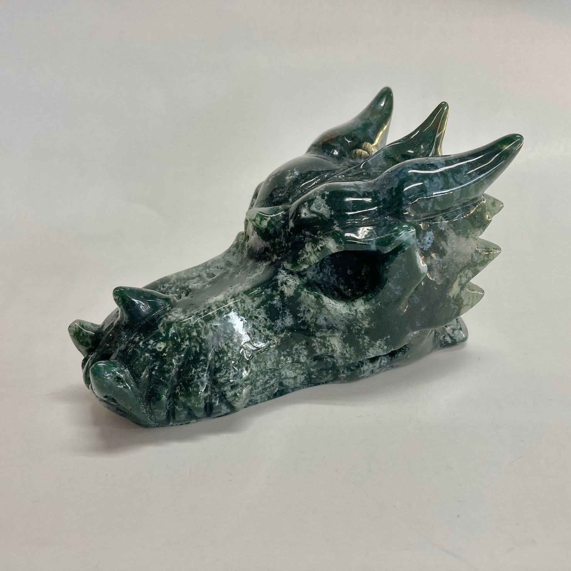 Moss Agate Dragon Skull