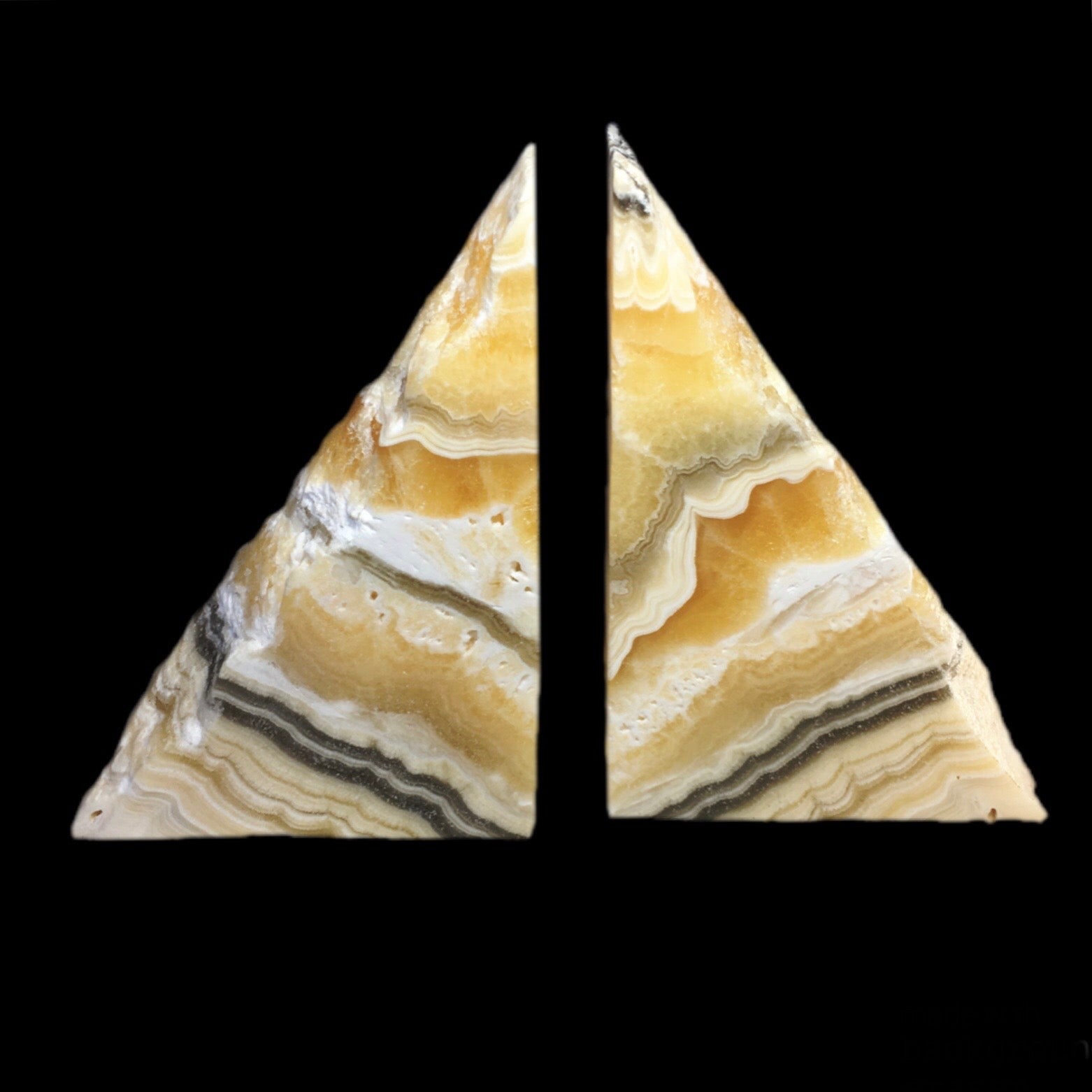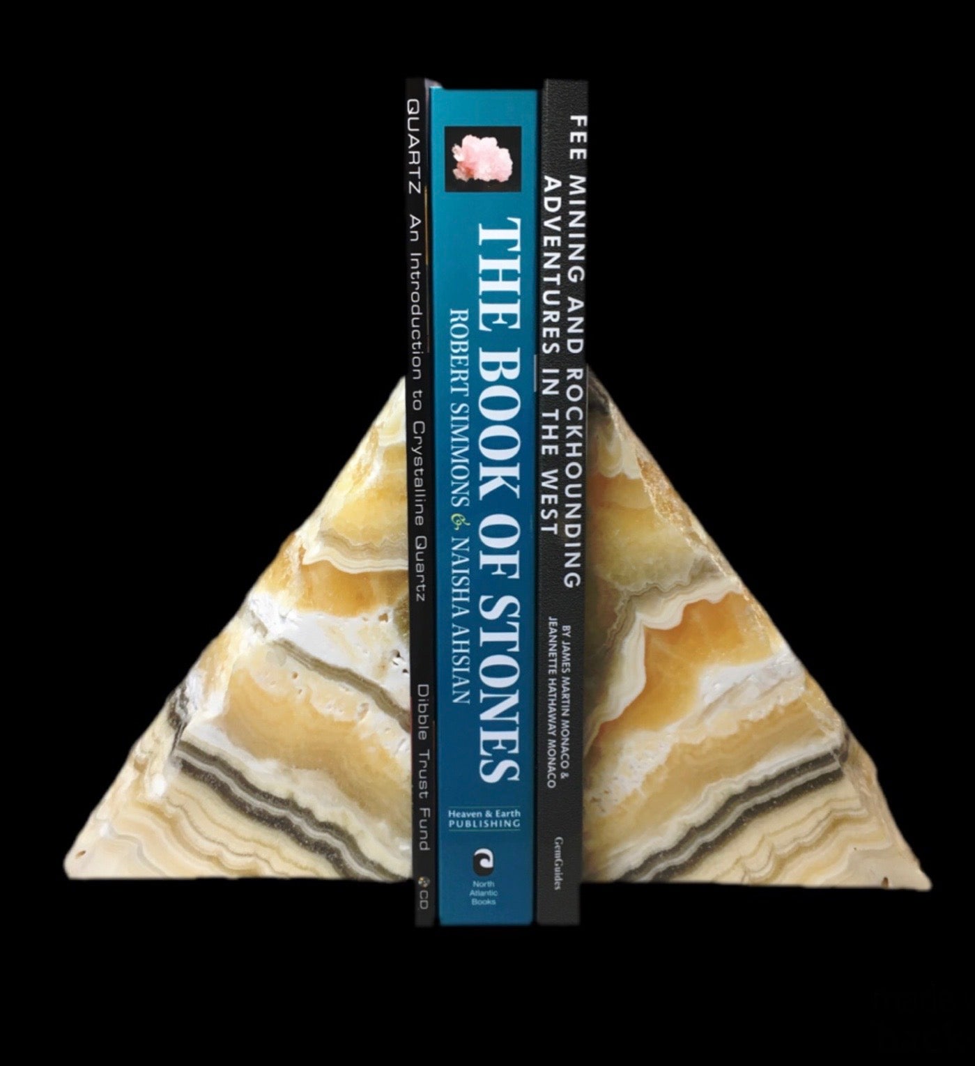 Spruce up your bookshelf, end table, nightstand, or desk while simultaneously organizing your books with a set of honey-colored onyx bookends!