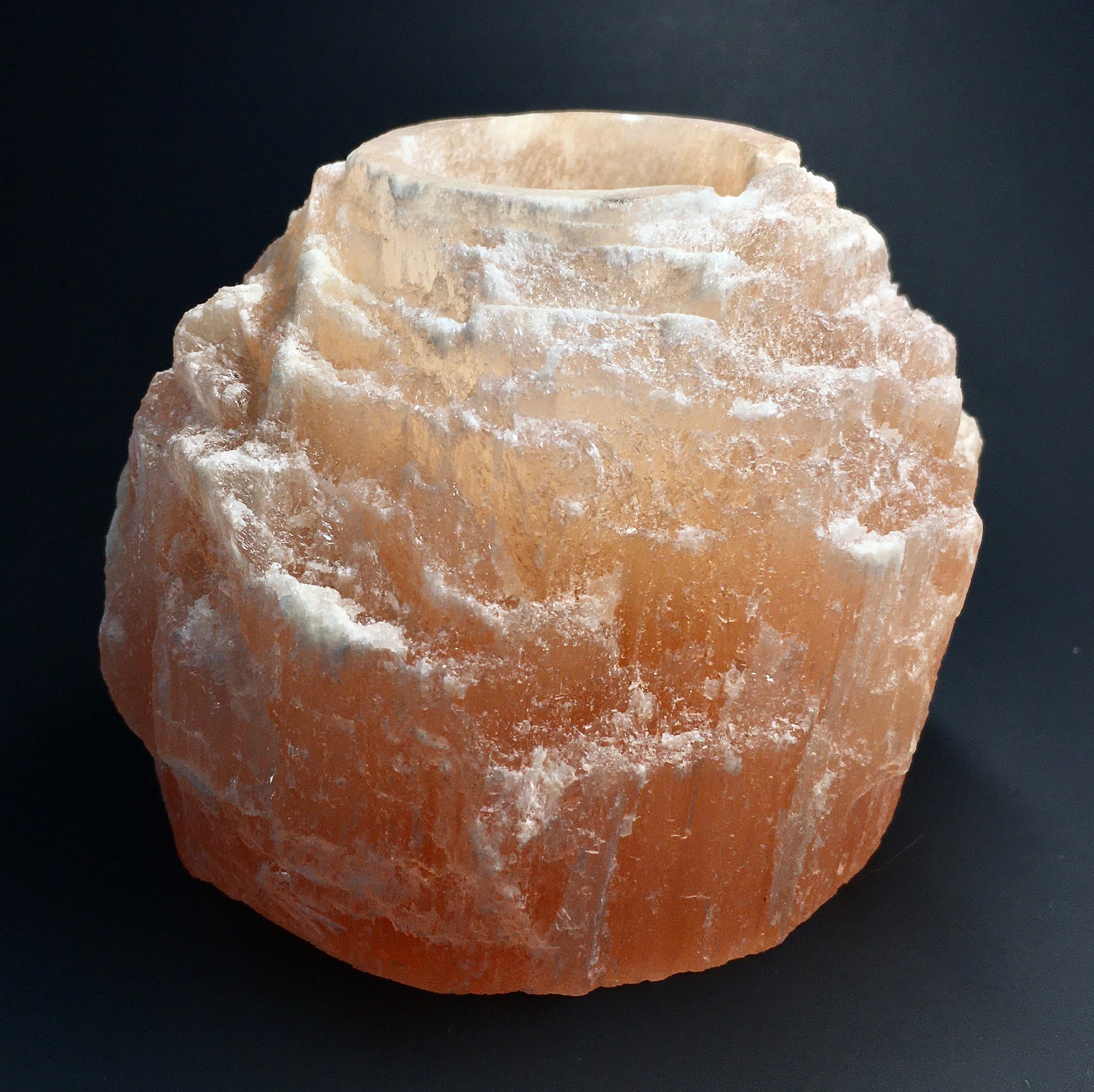 Selenite is a form of gypsum that means “stone of the moon." Gypsum can be found on every continent and can be dated as far back as 443 million years ago. Selenite satin spar is generally translucent or can exhibit some color.