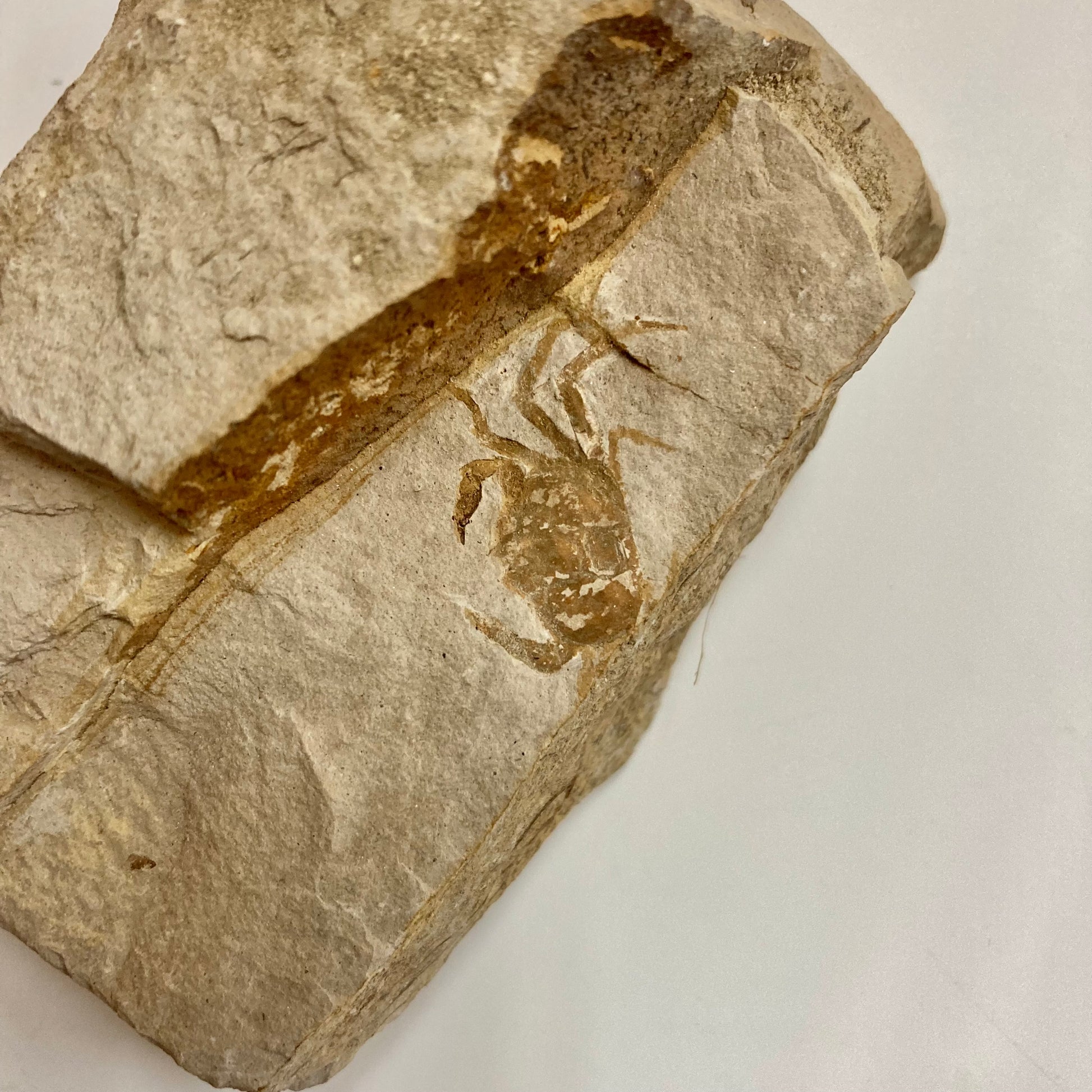 These tiny fossil crabs are found in mass numbers in places like shale of the Monterey Formation. Because they lived in a coastal environment, their fossils are often found mixed with other fossil fish, pine cones, palm fronds, and other crabs.