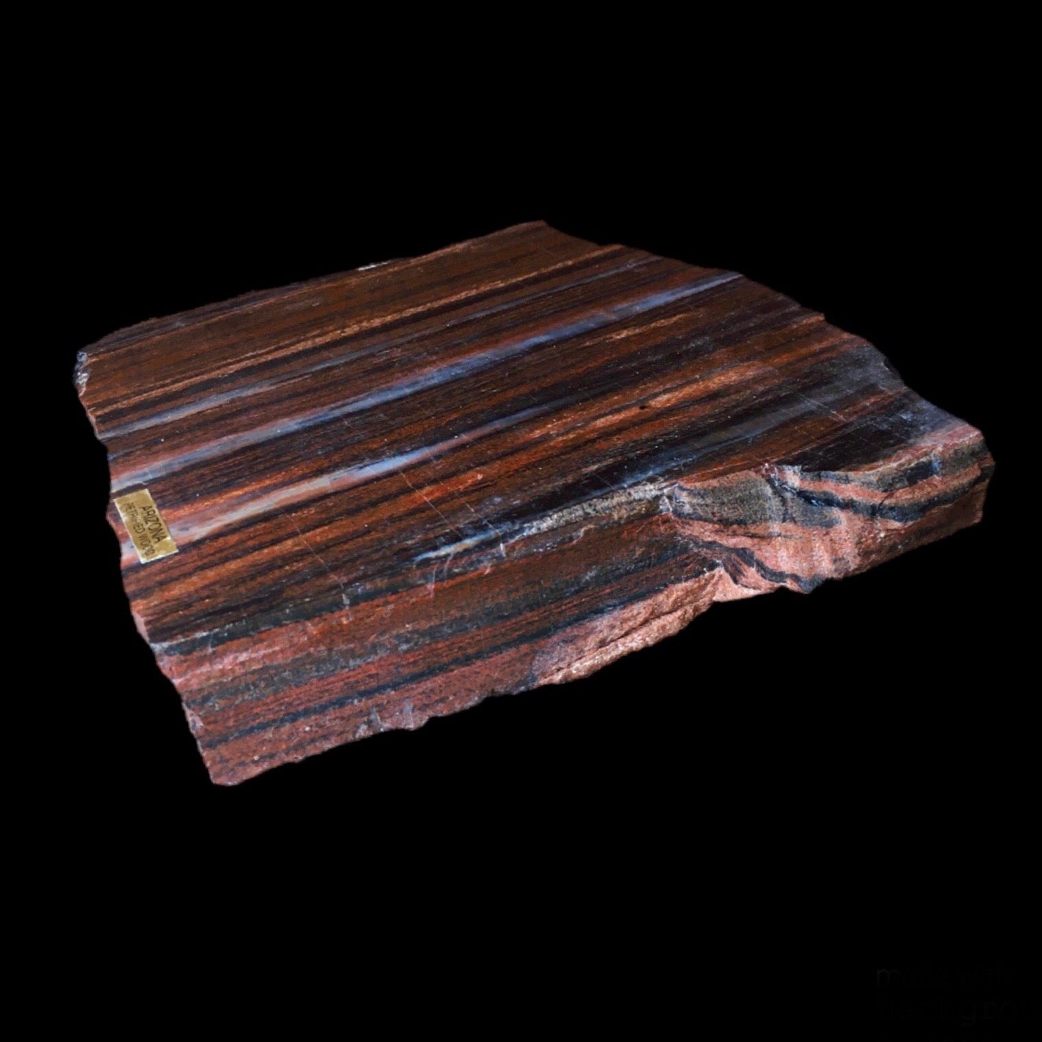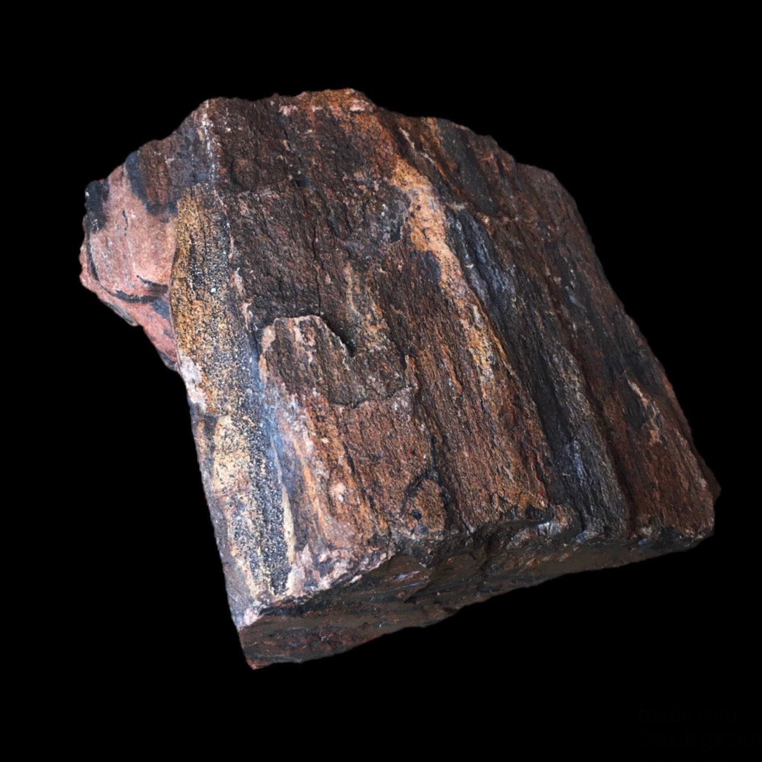 This ancient piece of wood has color and a beautiful striped pattern that is unmatchable! It is polished on one face, contrasting with the rough texture on the other sides.