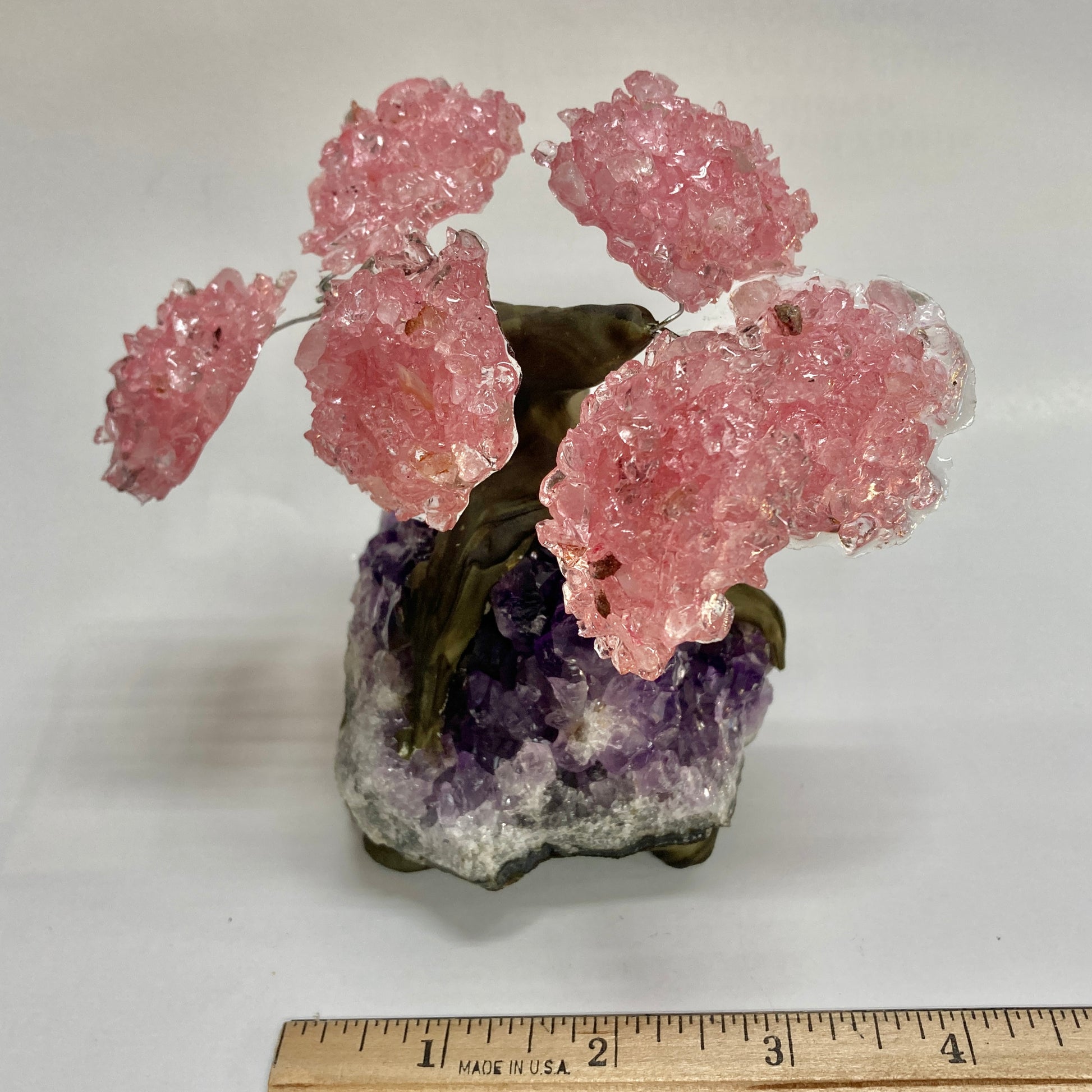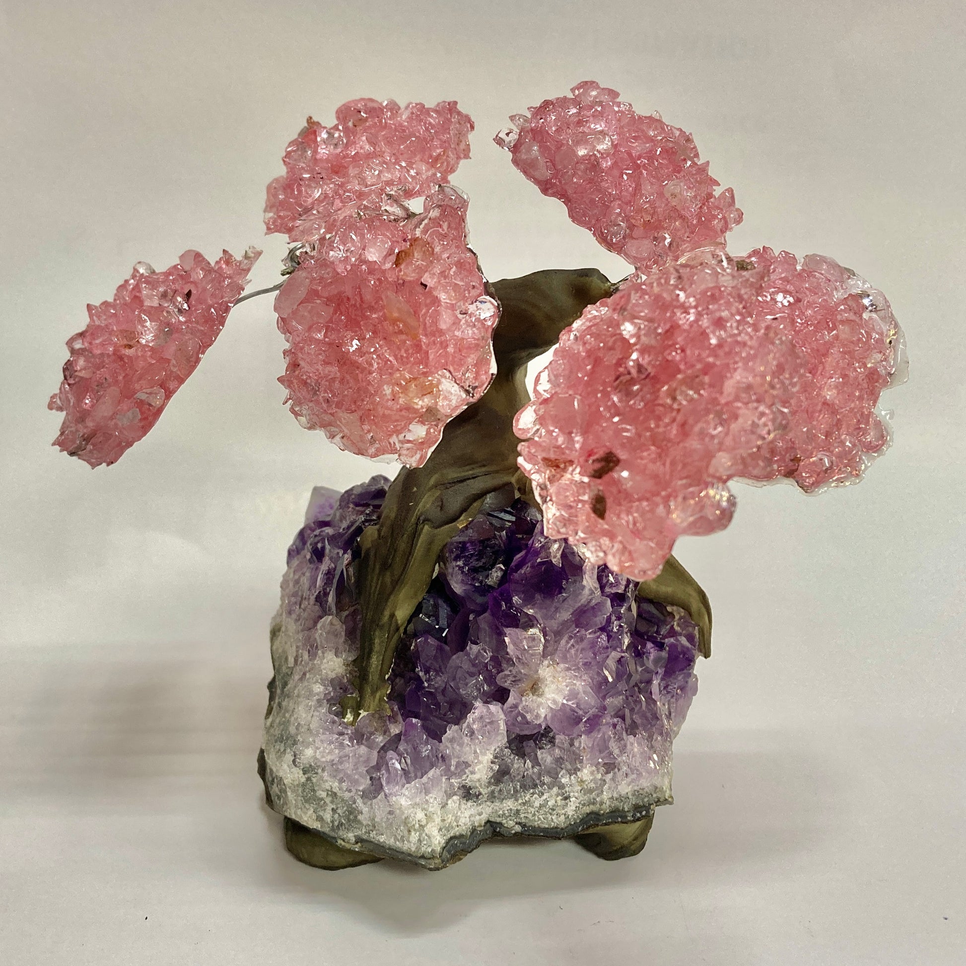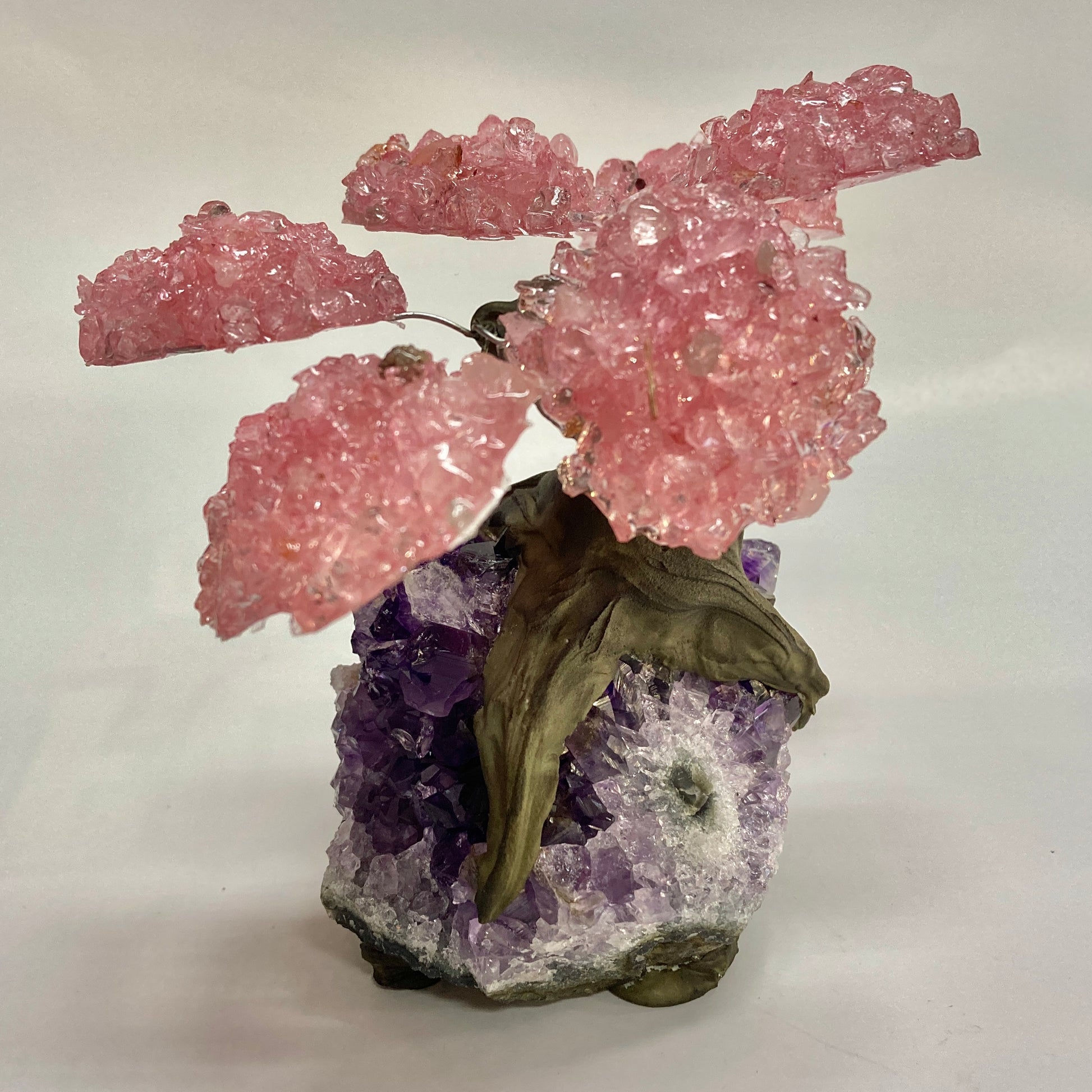 The color contrast of the bright pink rose quartz and deep purple amethyst are enough to make anyone swoon!
