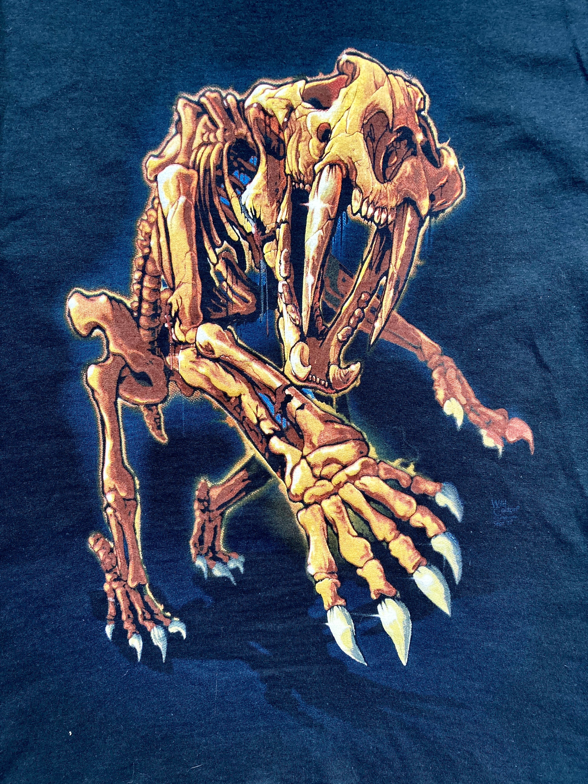 The slightly raised print of this prehistoric cat t-shirt maximizes his ferocity and awesomeness!