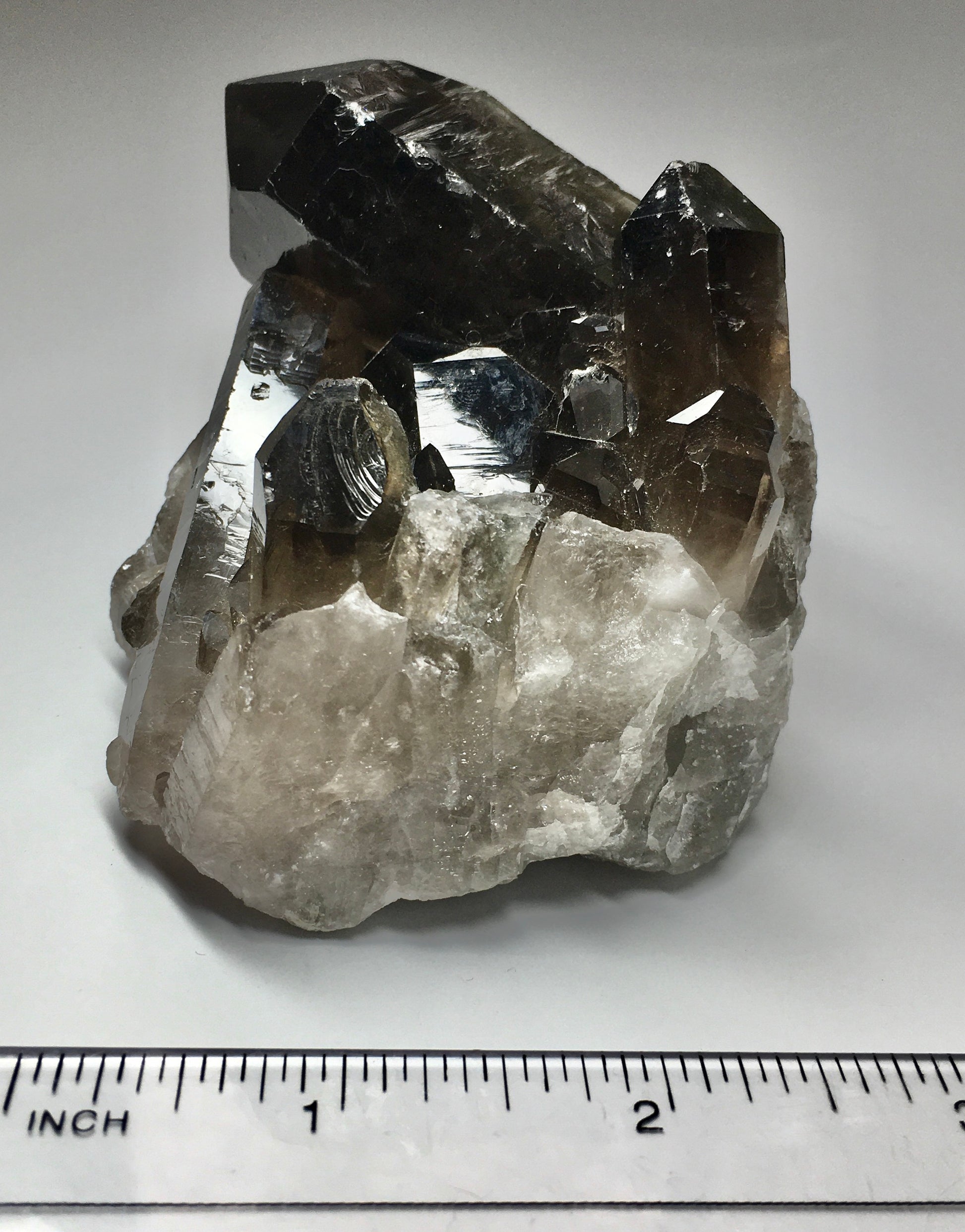 Smoky quartz is a crystalline quartz that ranges in color from a light yellow brown to a dark brownish-black. Its color comes from the natural radiation of aluminum within the quartz. Commonly used for jewelry and as a gemstone, this mineral has been utilized for centuries.