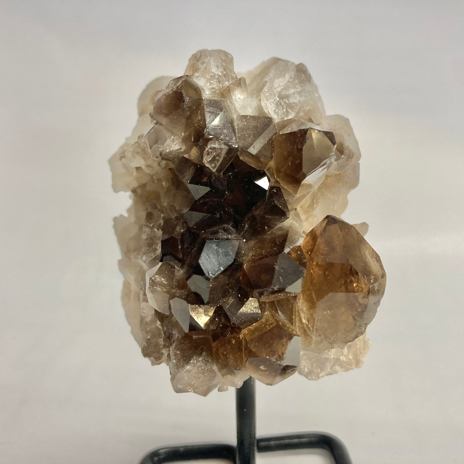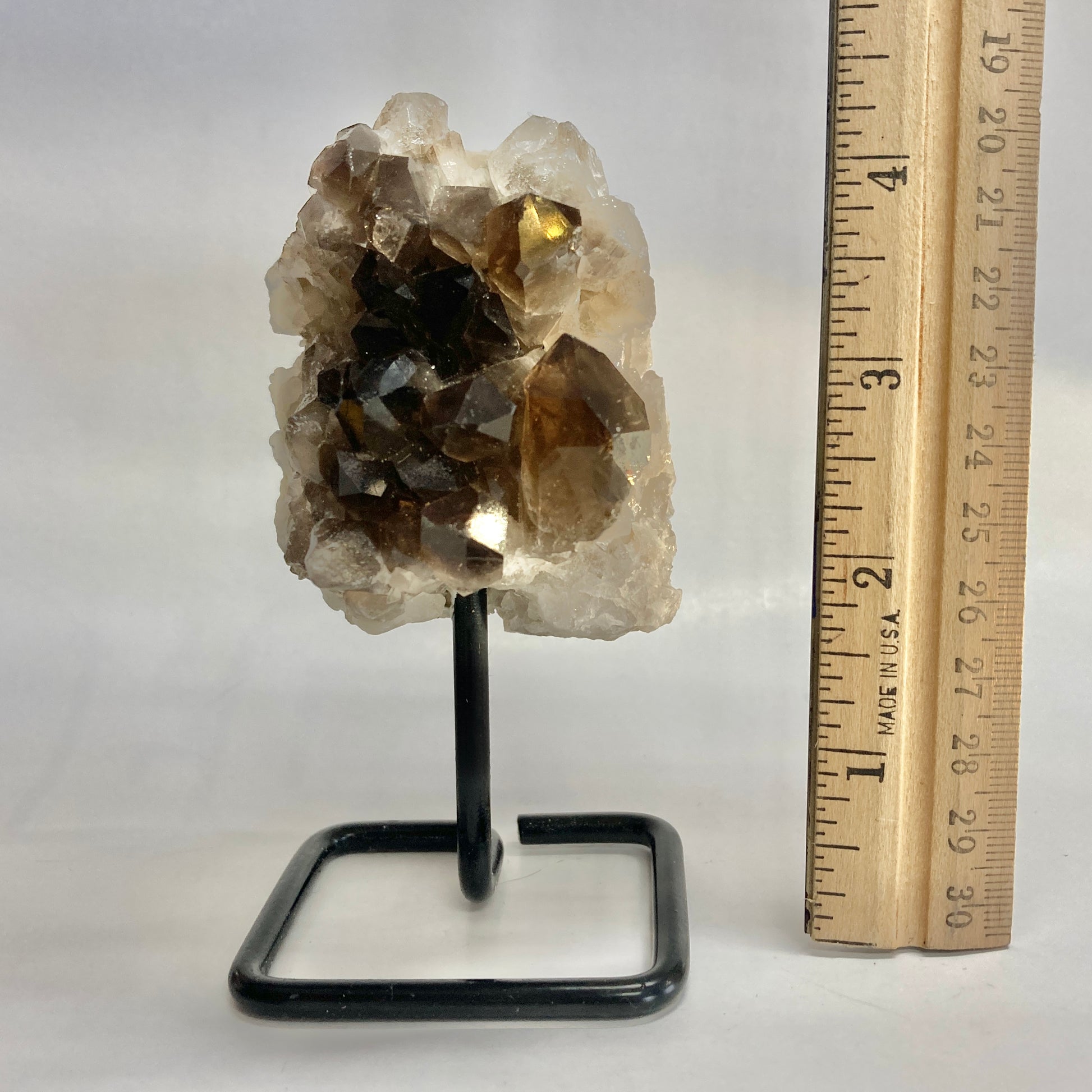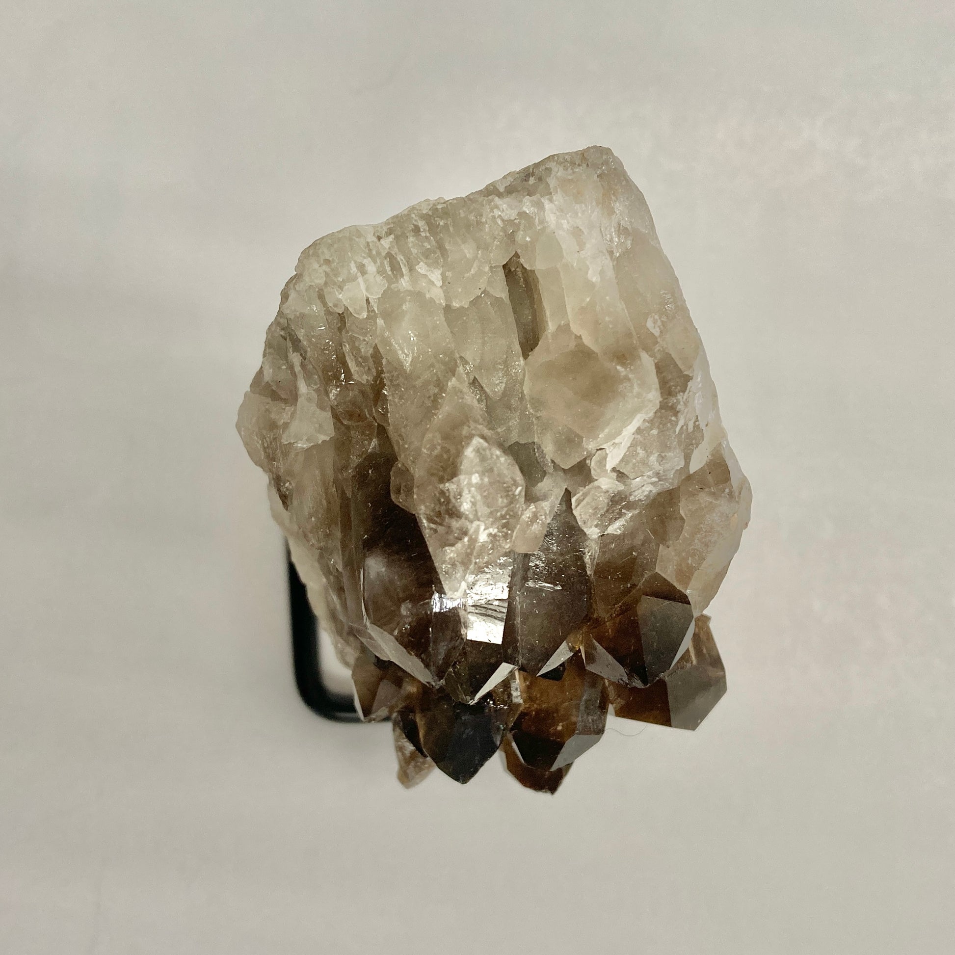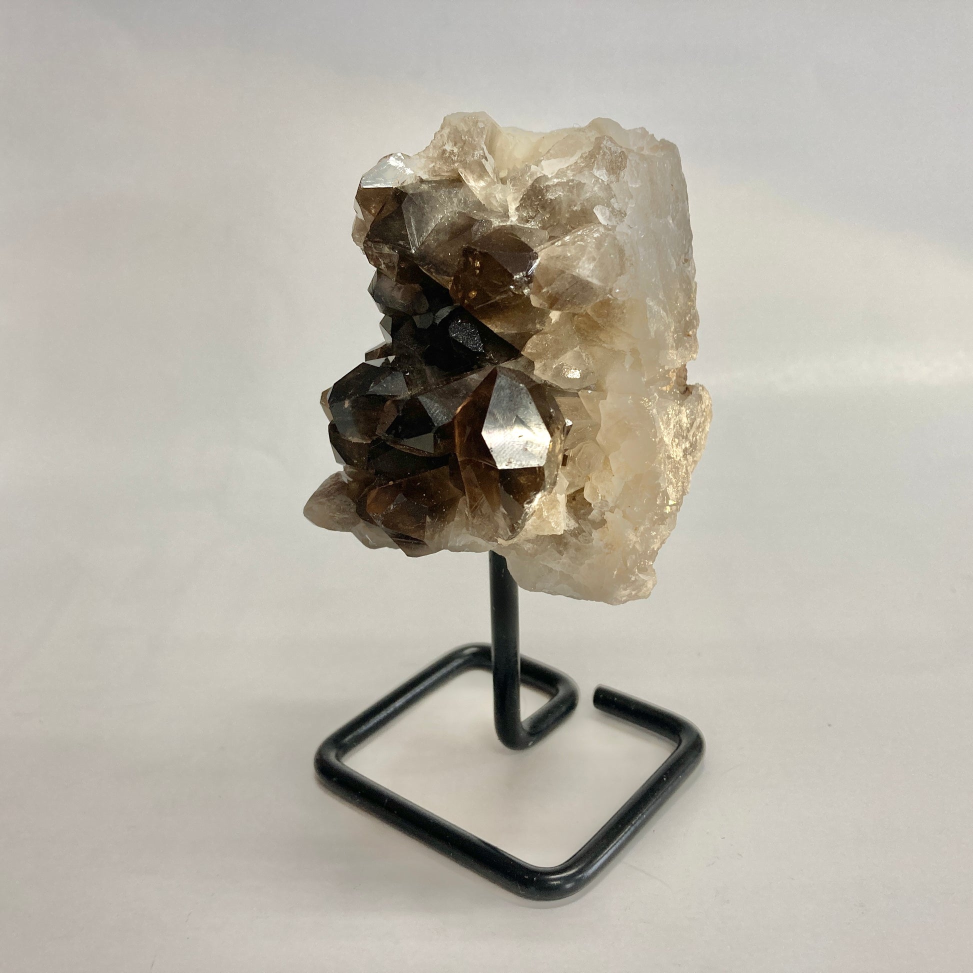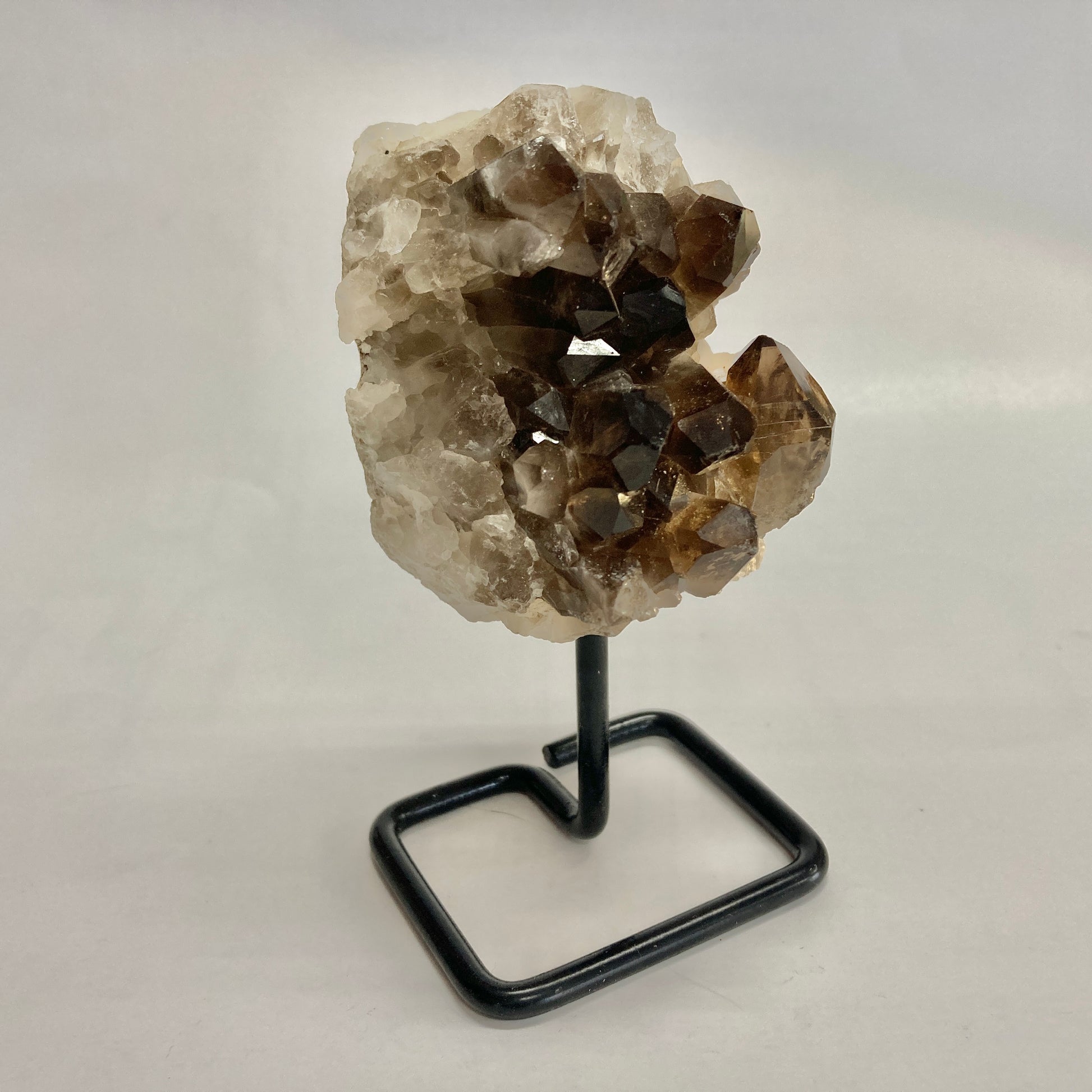 This smoky quartz sits on a stand so you can place it on your desk, nightstand or shelf.