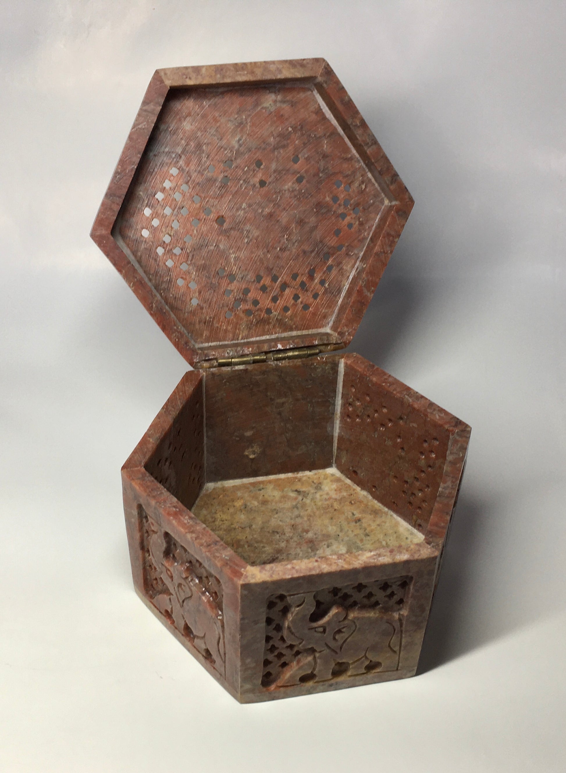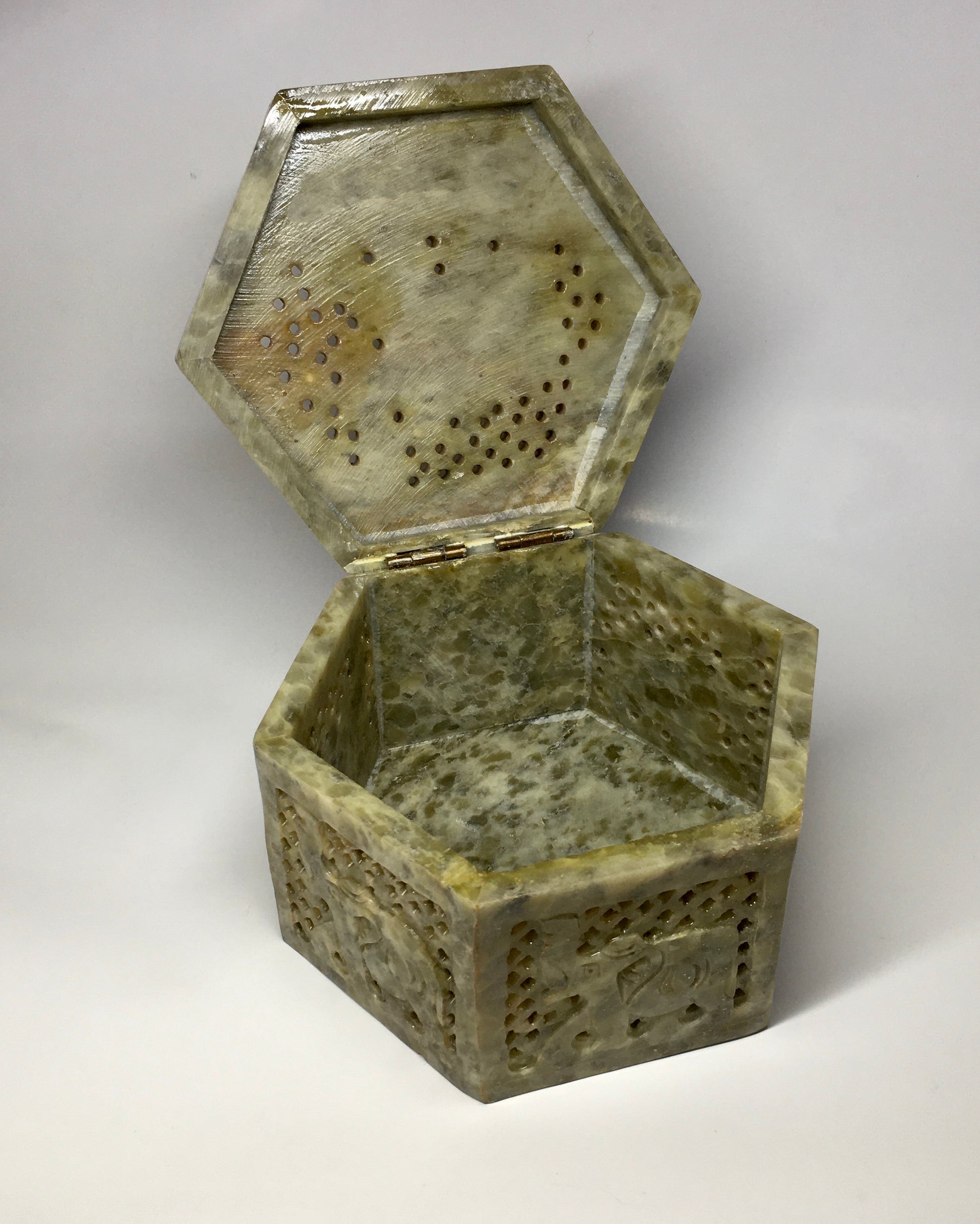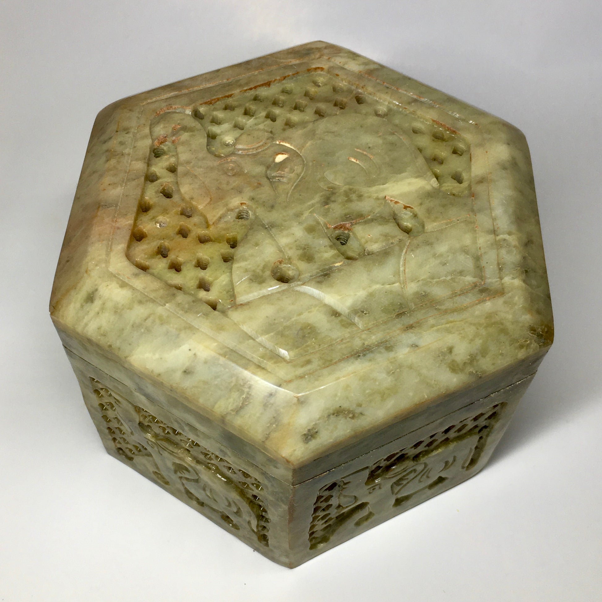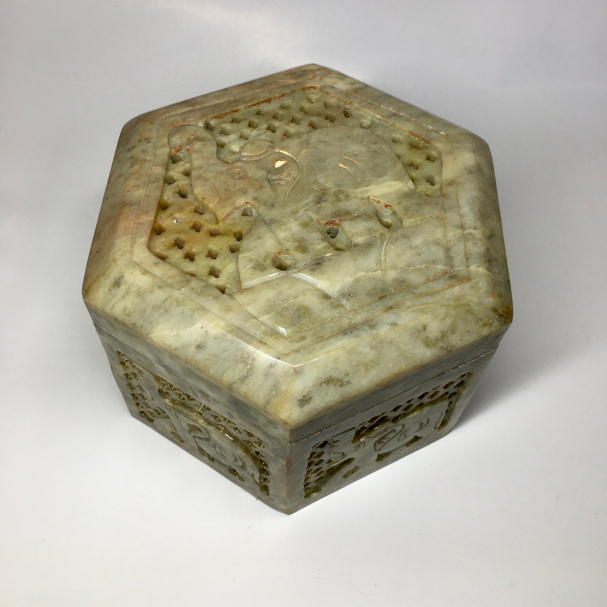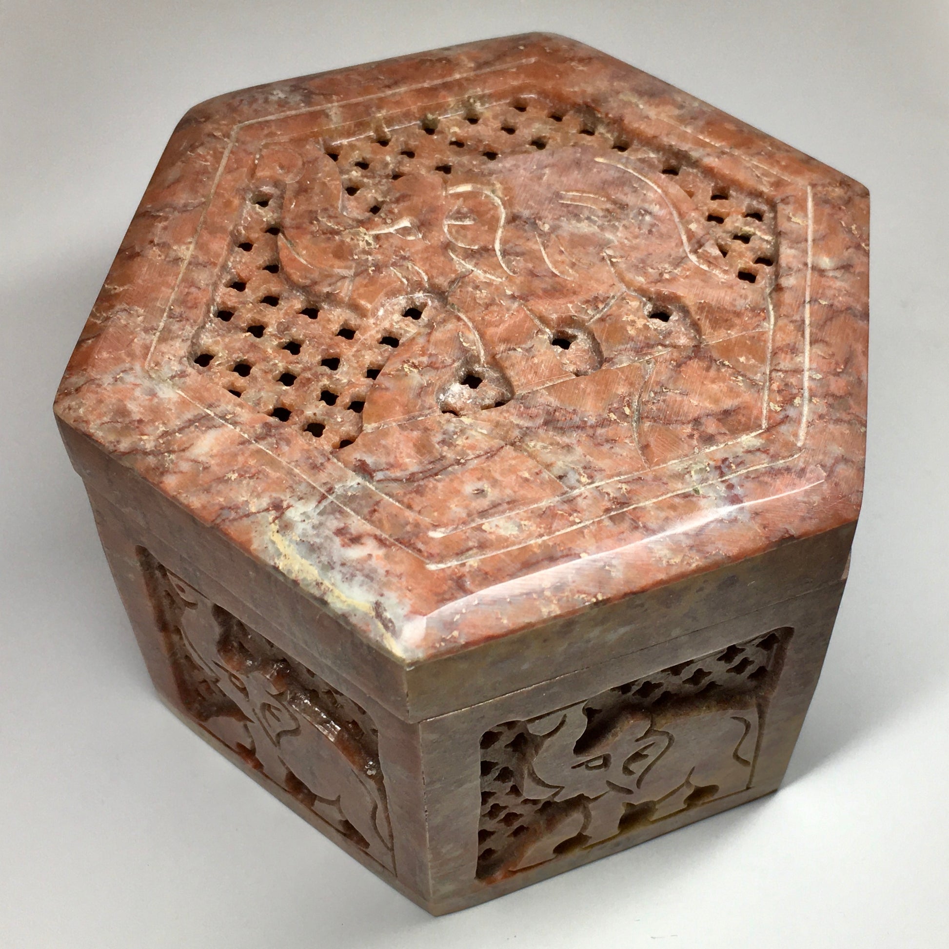 A hand-carved soapstone elephant box is what you need to hold all of your treasures! This box is carved with beautiful detail on the hinged lid and five sides. Because of the unique nature of the stone, every box is one-of-a-kind!