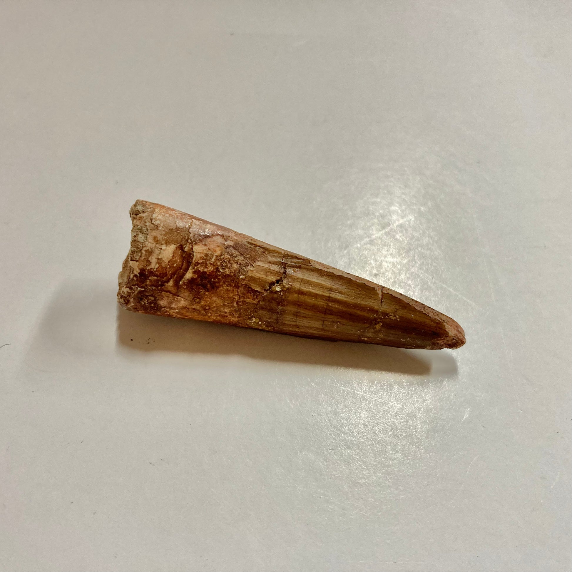 This dinosaur lived in Africa roughly 100 million years ago and studies show it was semiaquatic, living both on land and in water like a crocodile. It had a long and thin skull and paddle-like tail, short forearms with three fingers, and neural spines with skin between them making it look like a sail.
