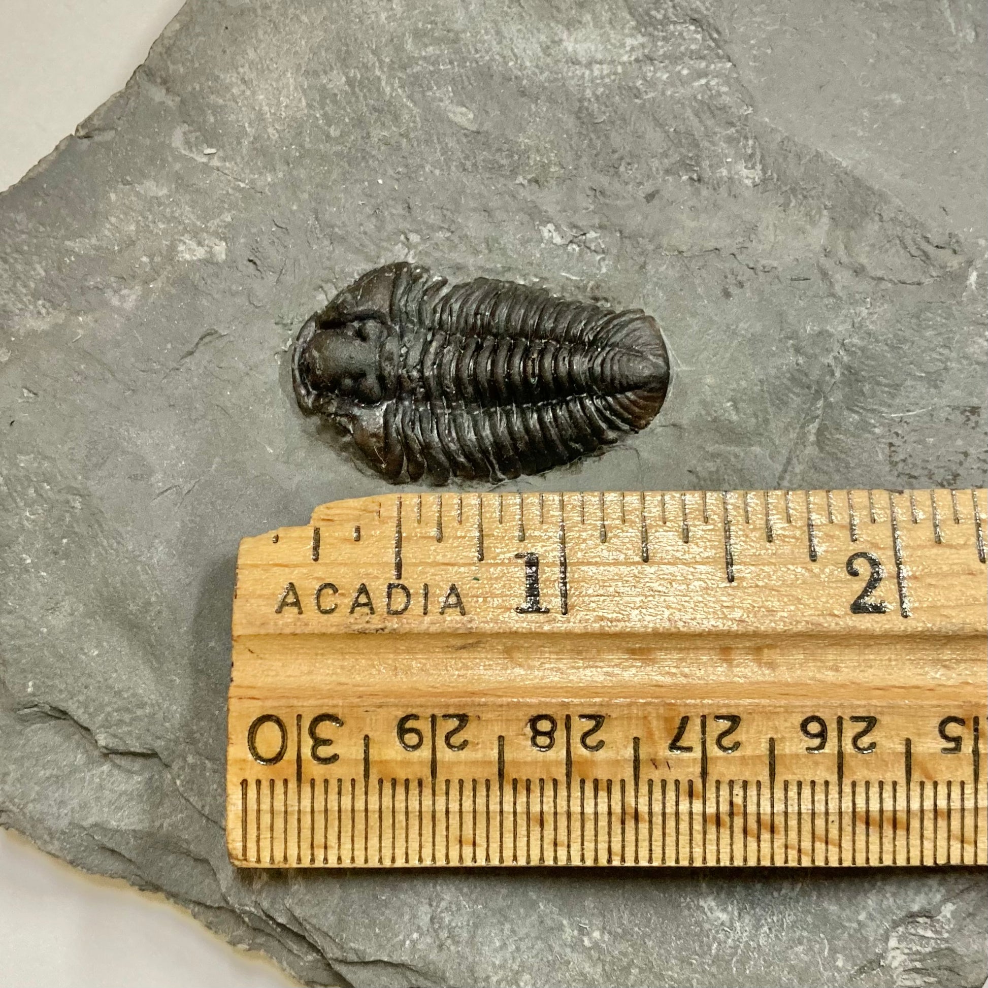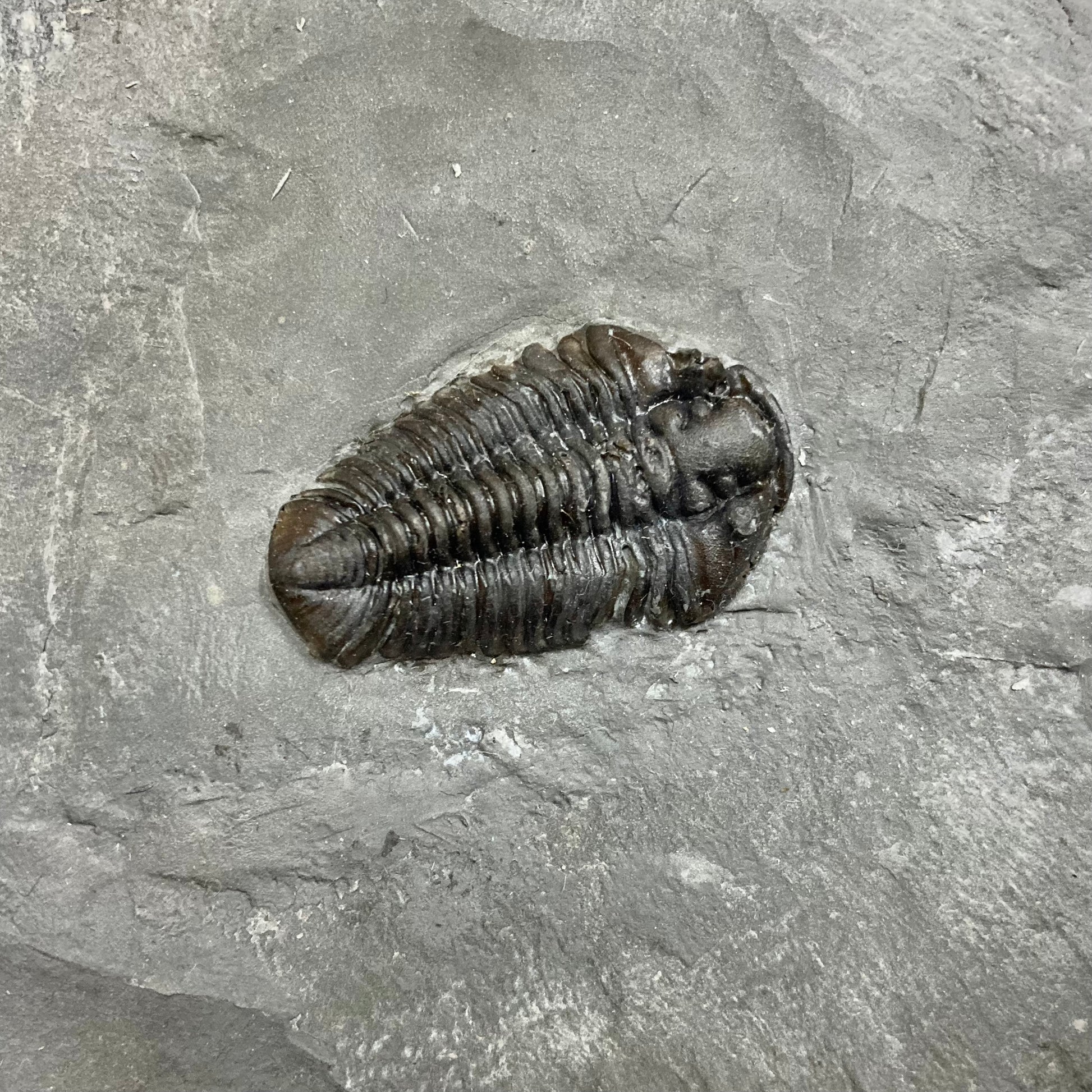 This Silurian-aged trilobite that fed off the bottom of shallow seas. It was relatively small, only reaching lengths of about 1 inch.